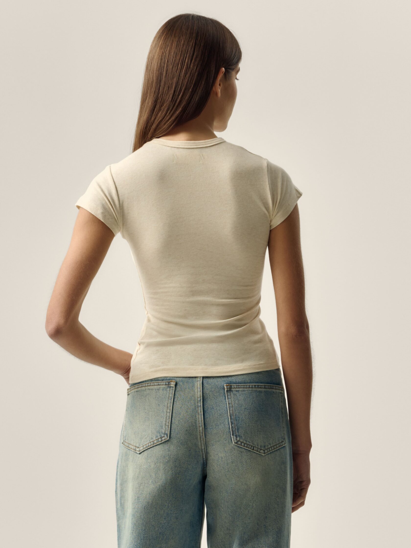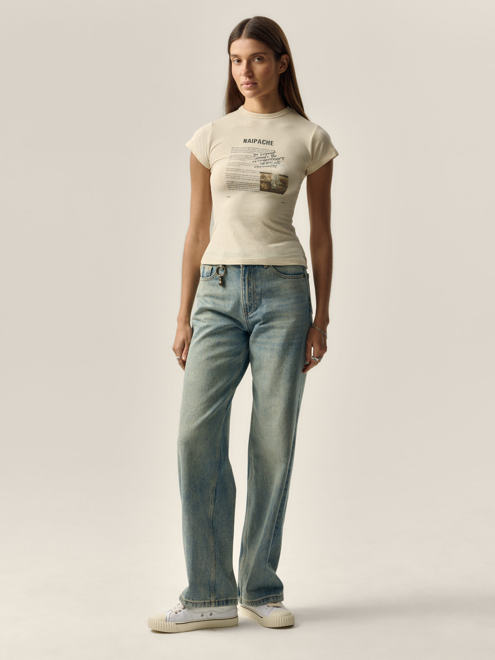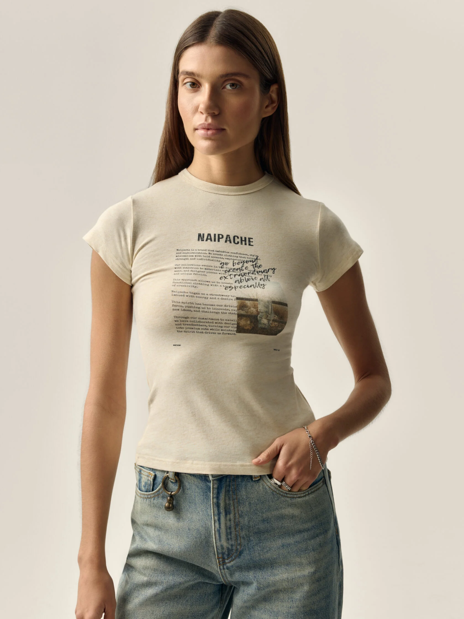 Приталенная футболка универсального размера (one-size). Классический трикотаж с гладкой поверхностью внутри и снаружи. Обладает высокой воздухопроницаемостью для комфорта и отлично держит форму. Облегающий крой подчеркивает силуэт без стеснения движений. Лаконичный базовый элемент с принтом. Легко комбинируется: джинсы или свободные брюки — ваш выбор. Плотность ткани - 175 г/м².