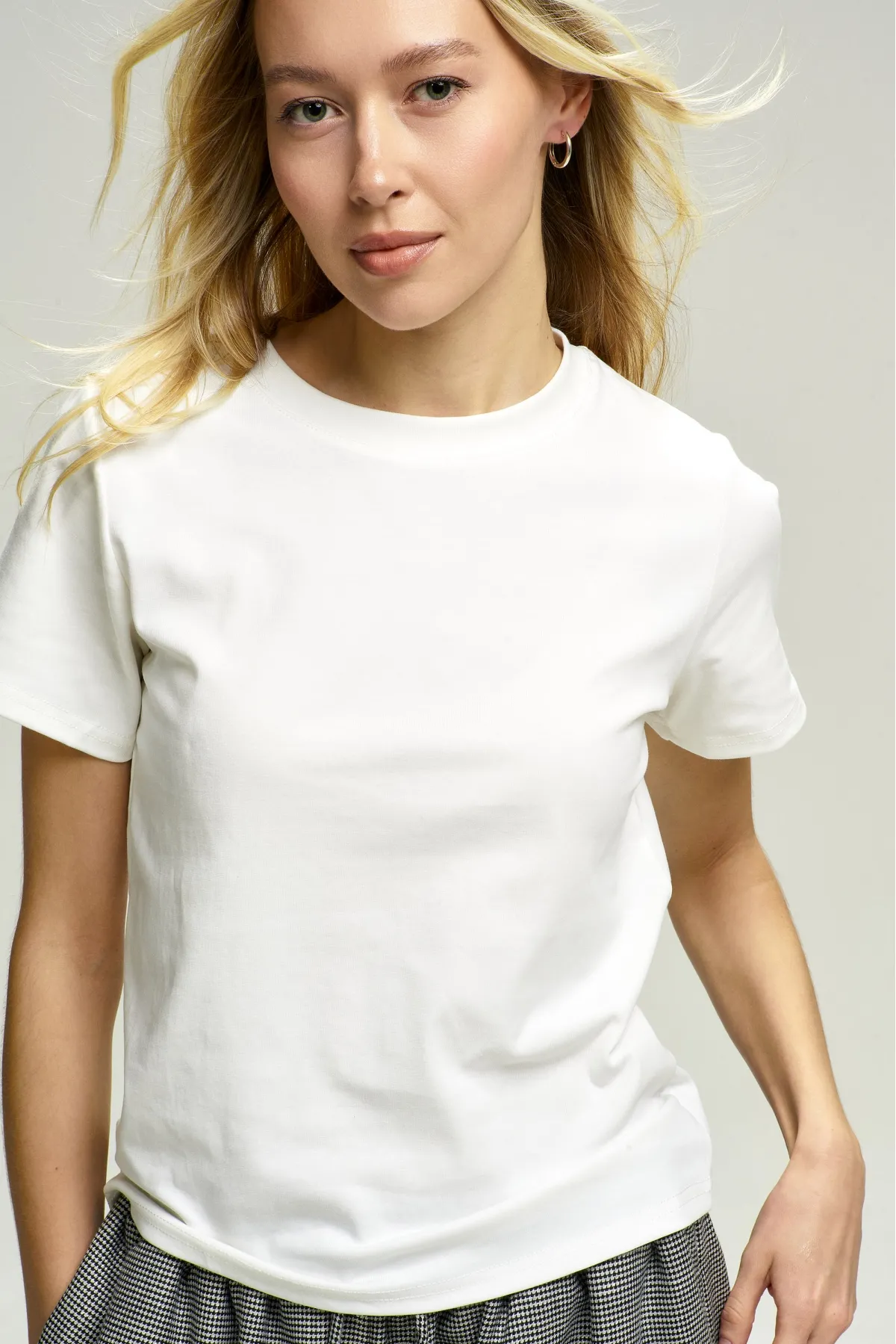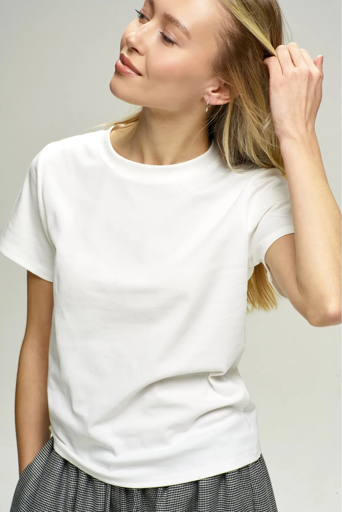 Футболка выполнена из мягкой и эластичной ткани, благодаря чему она идеально садится по фигуре, создавая комфортный и стильный образ. Простой, но элегантный крой позволяет комбинировать ее с различными элементами гардероба, создавая множество комплектов.