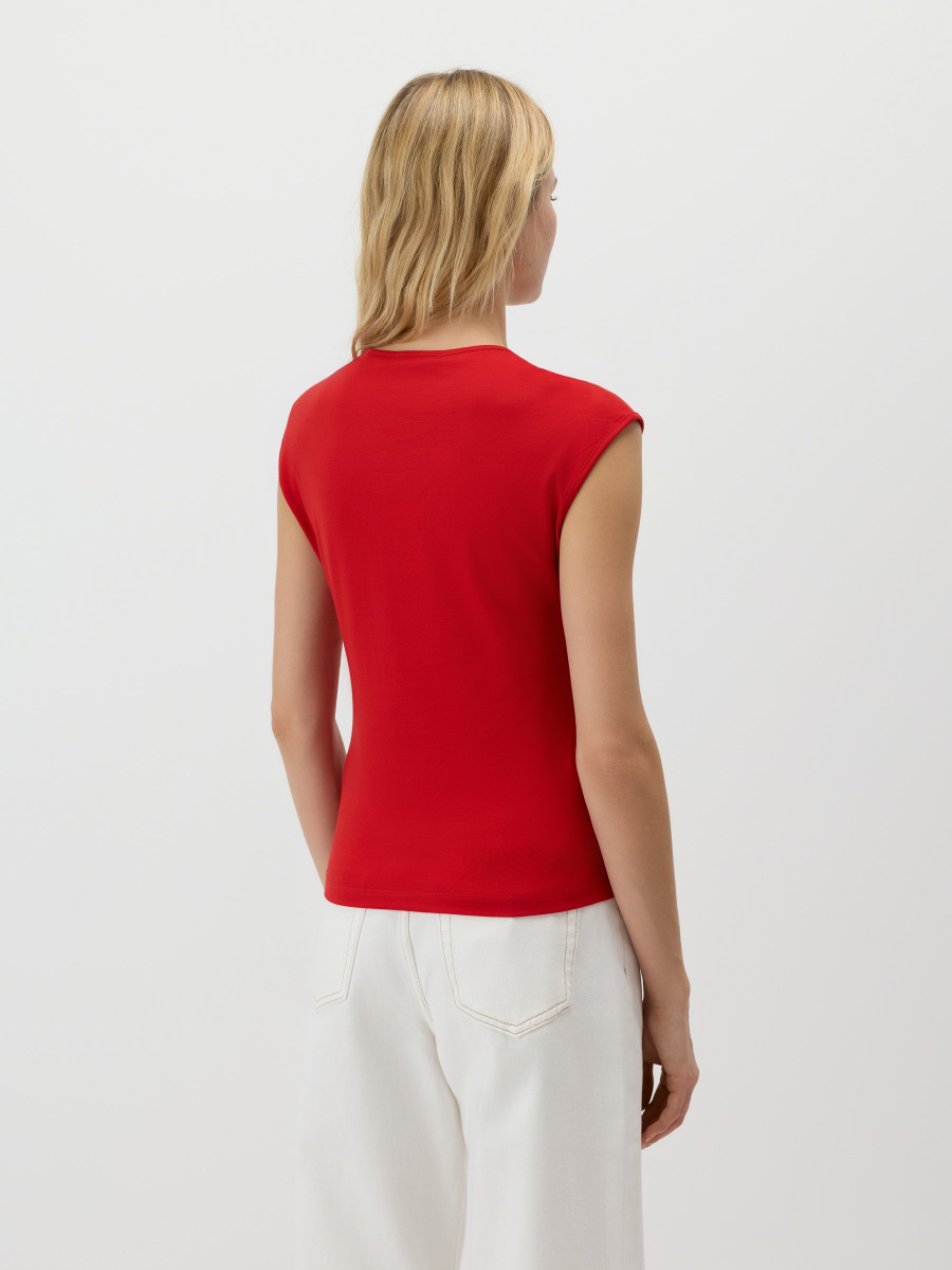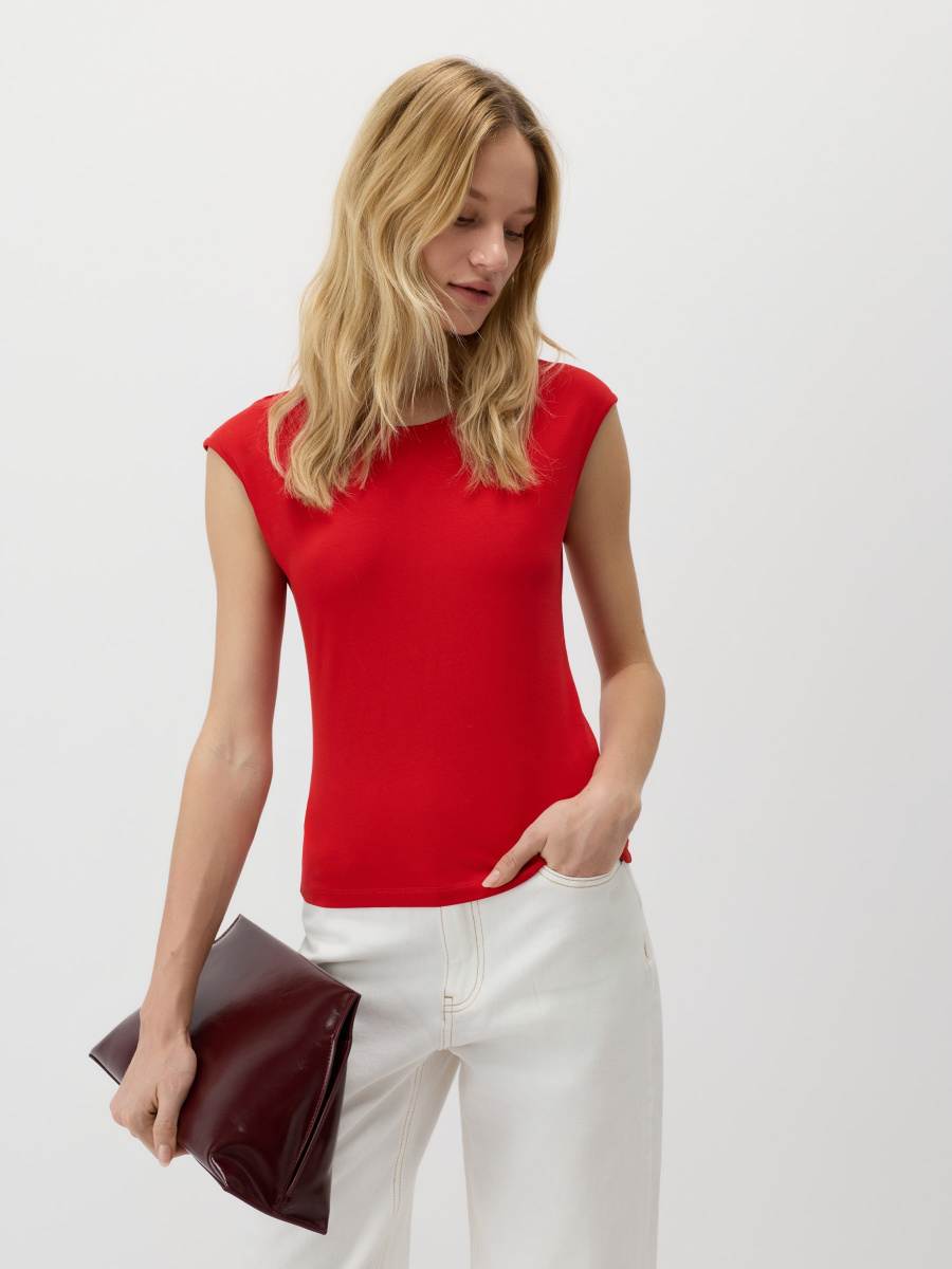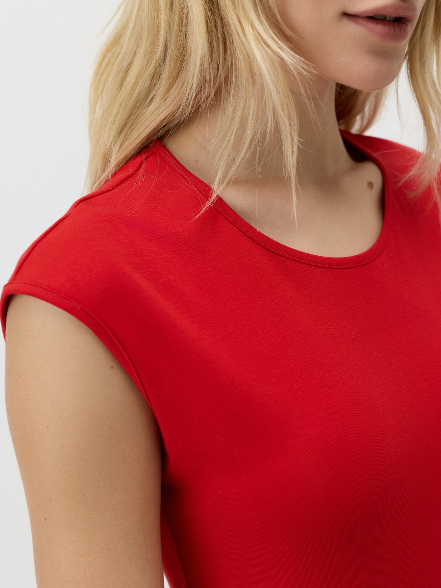 Базовая футболка прилегающего силуэта, которую можно вписать в любой комплект, а также носить отдельно. Углубленный круглый вырез и удлиненная линия плеча, формирующая аккуратный контур. Материал: мягкий хлопок с добавлением небольшого количества спандекса для прочности и эластичности.