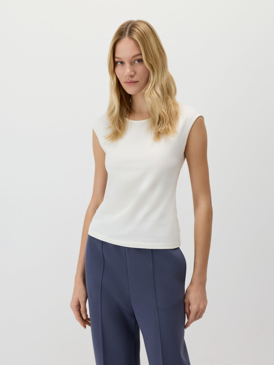 Базовая футболка прилегающего силуэта, которую можно вписать в любой комплект, а также носить отдельно. Углубленный круглый вырез и удлиненная линия плеча, формирующая аккуратный контур. Материал: мягкий хлопок с добавлением небольшого количества спандекса для прочности и эластичности.