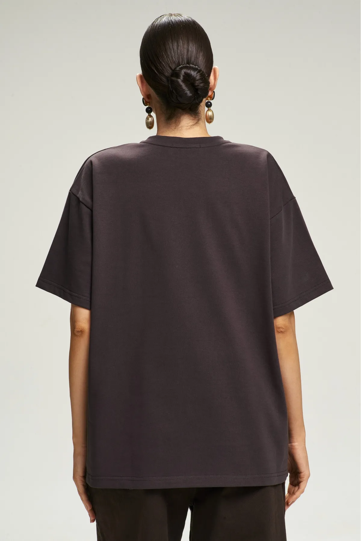 Материал не просвечивает и прекрасно дышит, обеспечивая комфорт в течение всего дня. Свободный силуэт OS легко вписать в повседневные образы. Принт выполнен с помощью высокотехнологичной печати, а значит, изделие надолго сохранит свой безупречный вид.