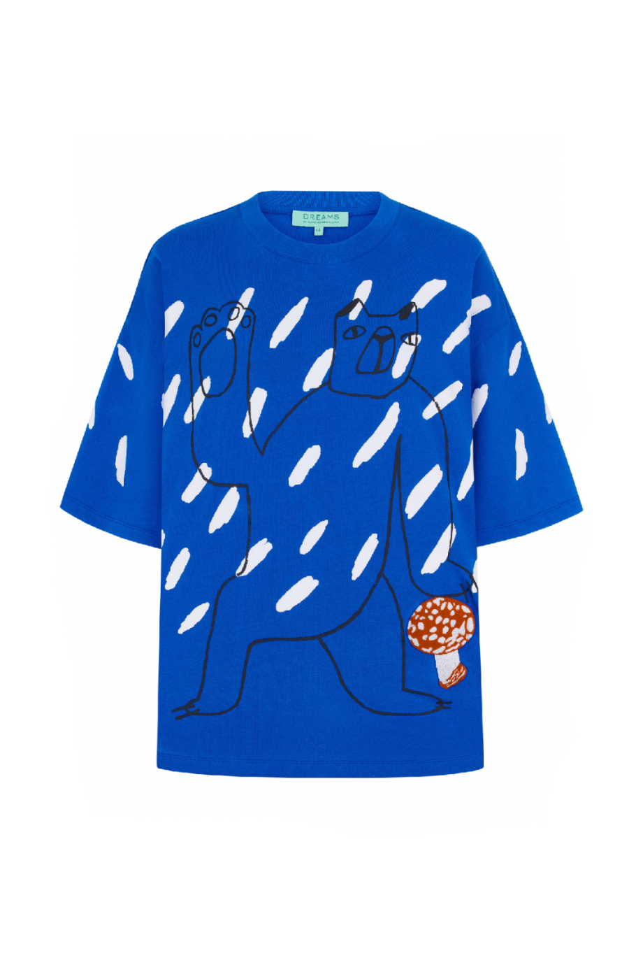 Футболка в насыщенном синем оттенке с уникальным авторским принтом станет ярким и выразительным акцентом в вашем гардеробе, поднимая настроение и придавая образу свежести. Изготовленная из 100% хлопка, модель идеально сочетается с повседневными луками.