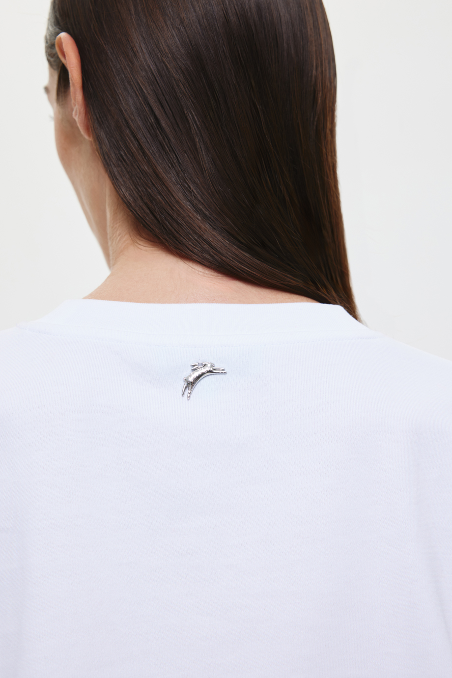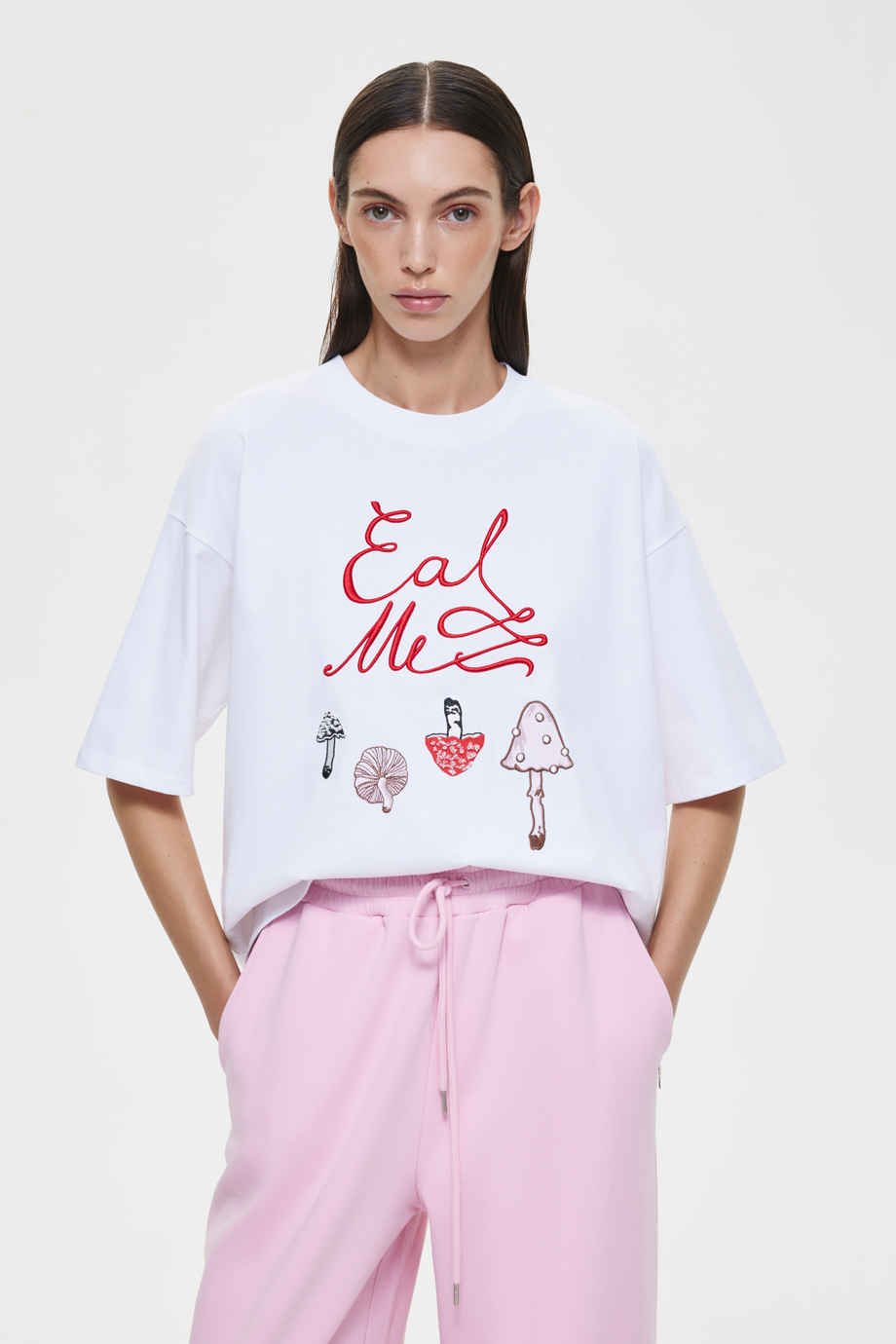 Хлопковая футболка в белом оттенке с уникальным дизайном, вдохновленным сказочным миром Алисы в Стране чудес. Изготовленная из 100% хлопка, она приятно ощущается на теле. Яркий и стильный элемент станет отличным дополнением вашего гардероба, придаст образу свежести и индивидуальности. Универсальная модель идеально подойдет для создания ярких и выразительных луков.
