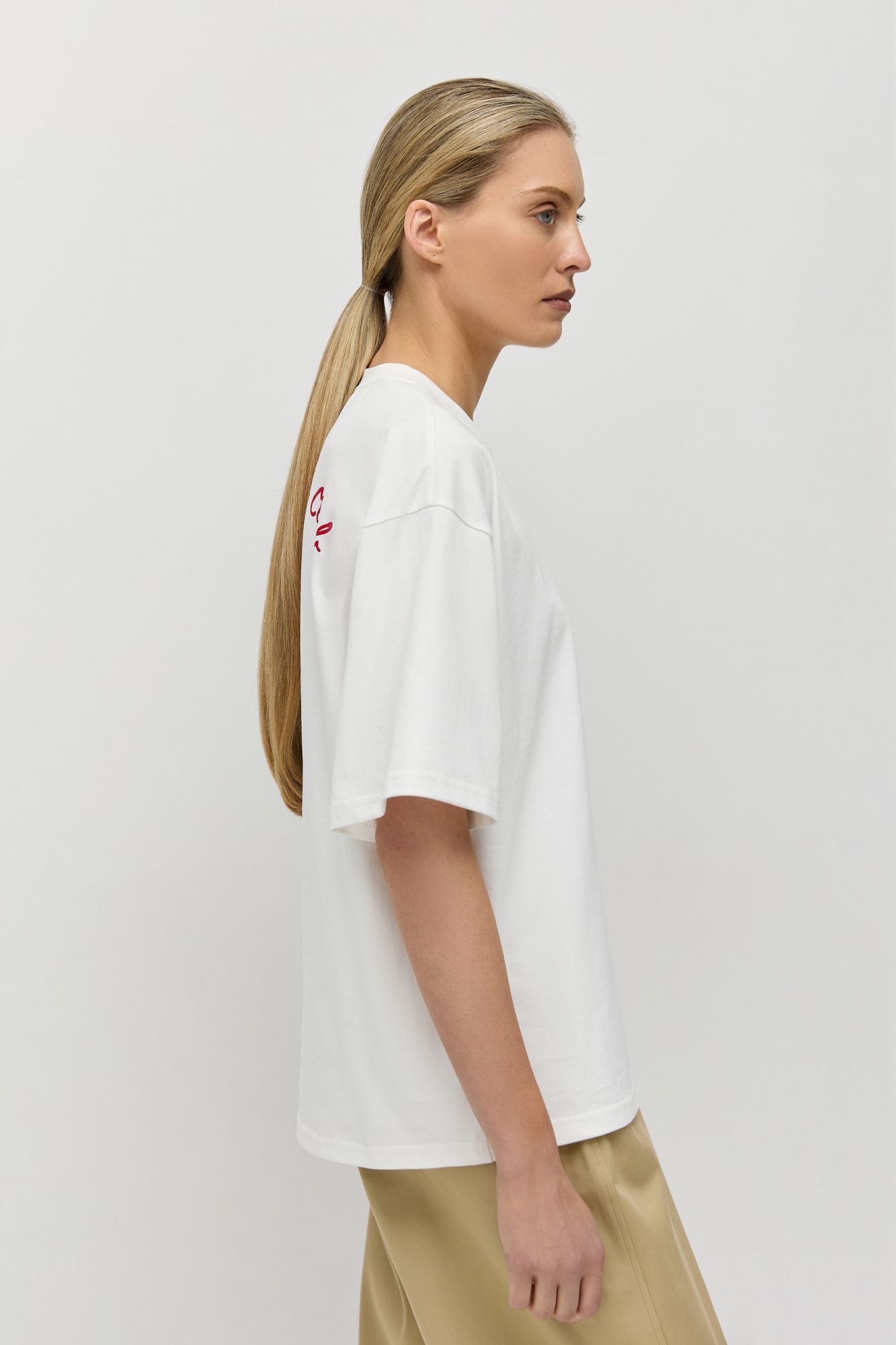 Футболка бойфренда свободного кроя сшита из натурального хлопка.