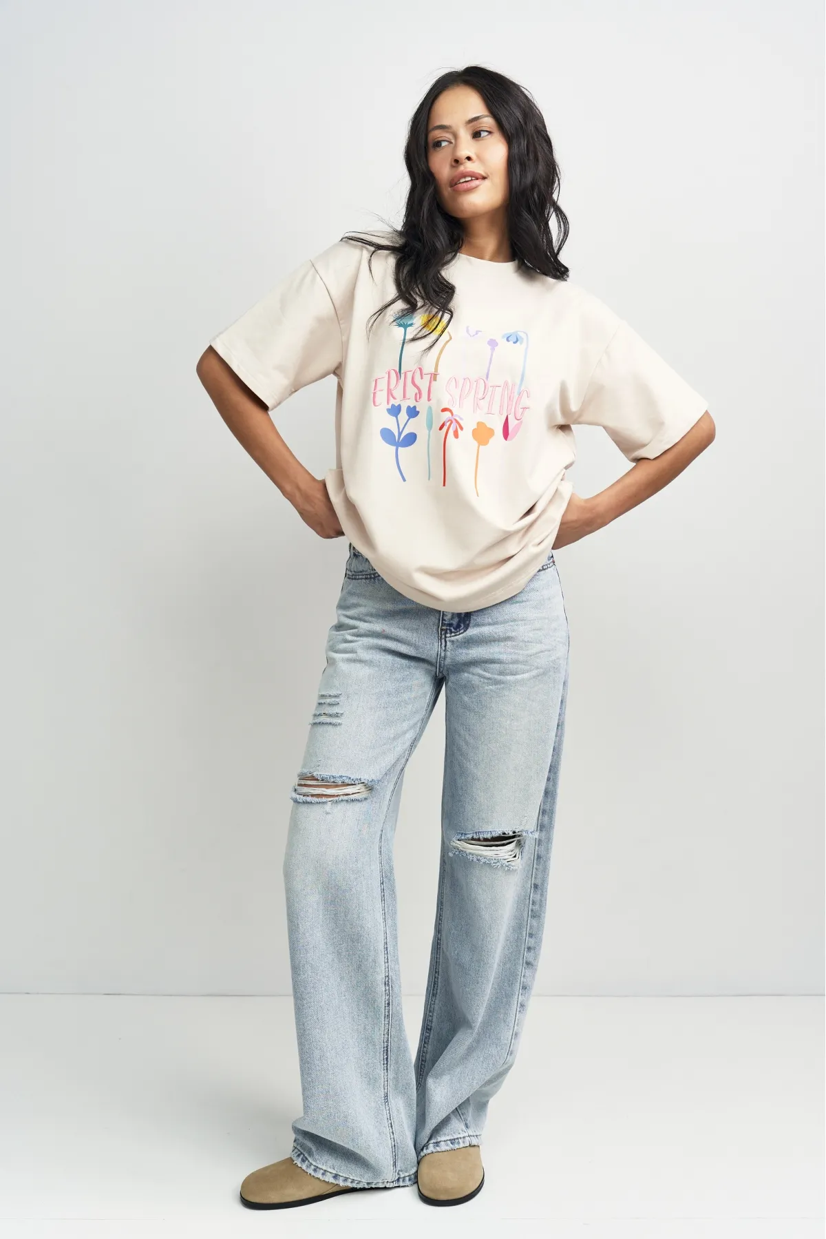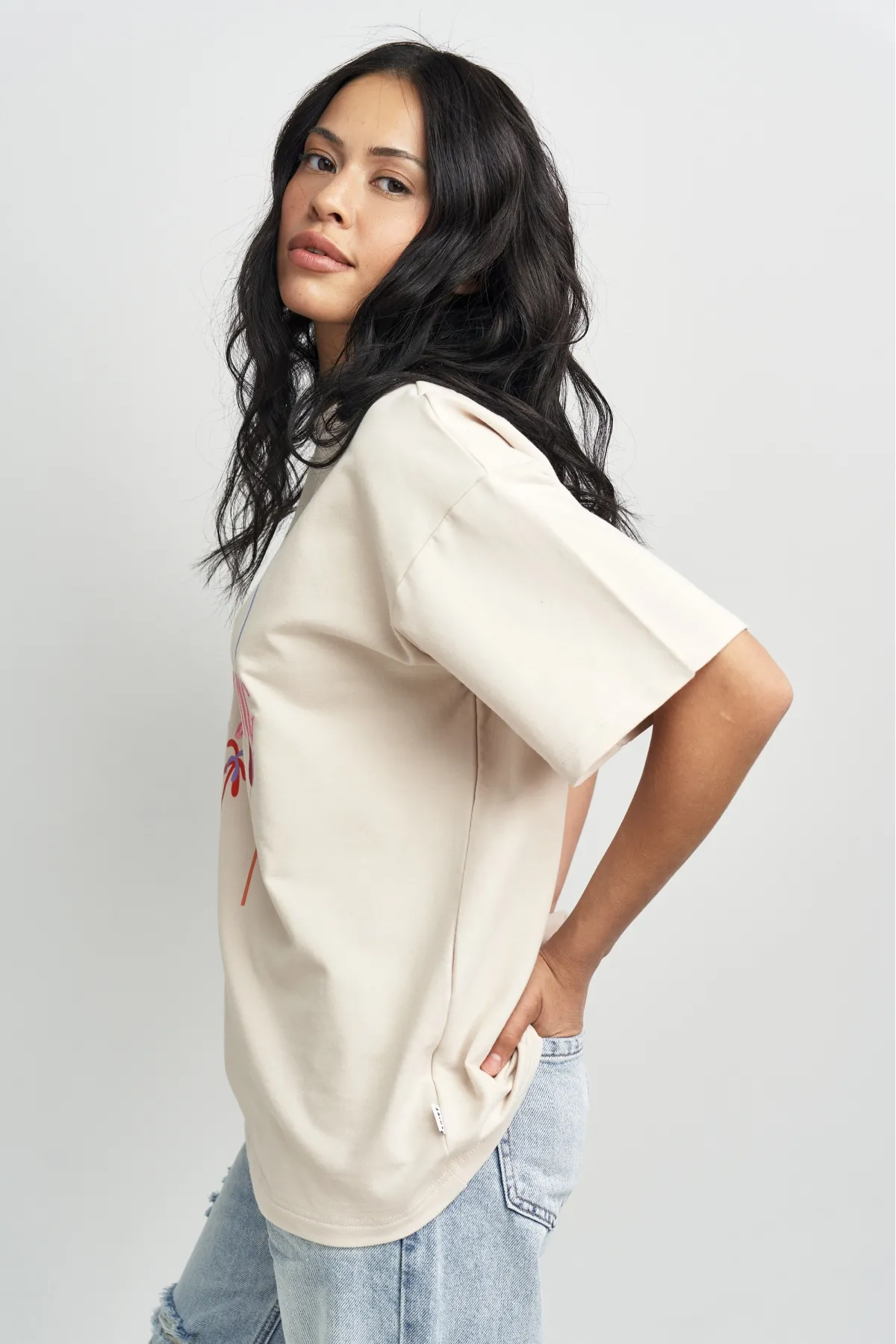 Материал не просвечивает и прекрасно дышит, обеспечивая комфорт в течение всего дня. Свободный силуэт оверсайз легко вписать в повседневные образы. Принт выполнен с помощью высокотехнологичной печати, а значит, изделие надолго сохранит свой безупречный вид. Фирменная вышивка идеально дополняет принт.