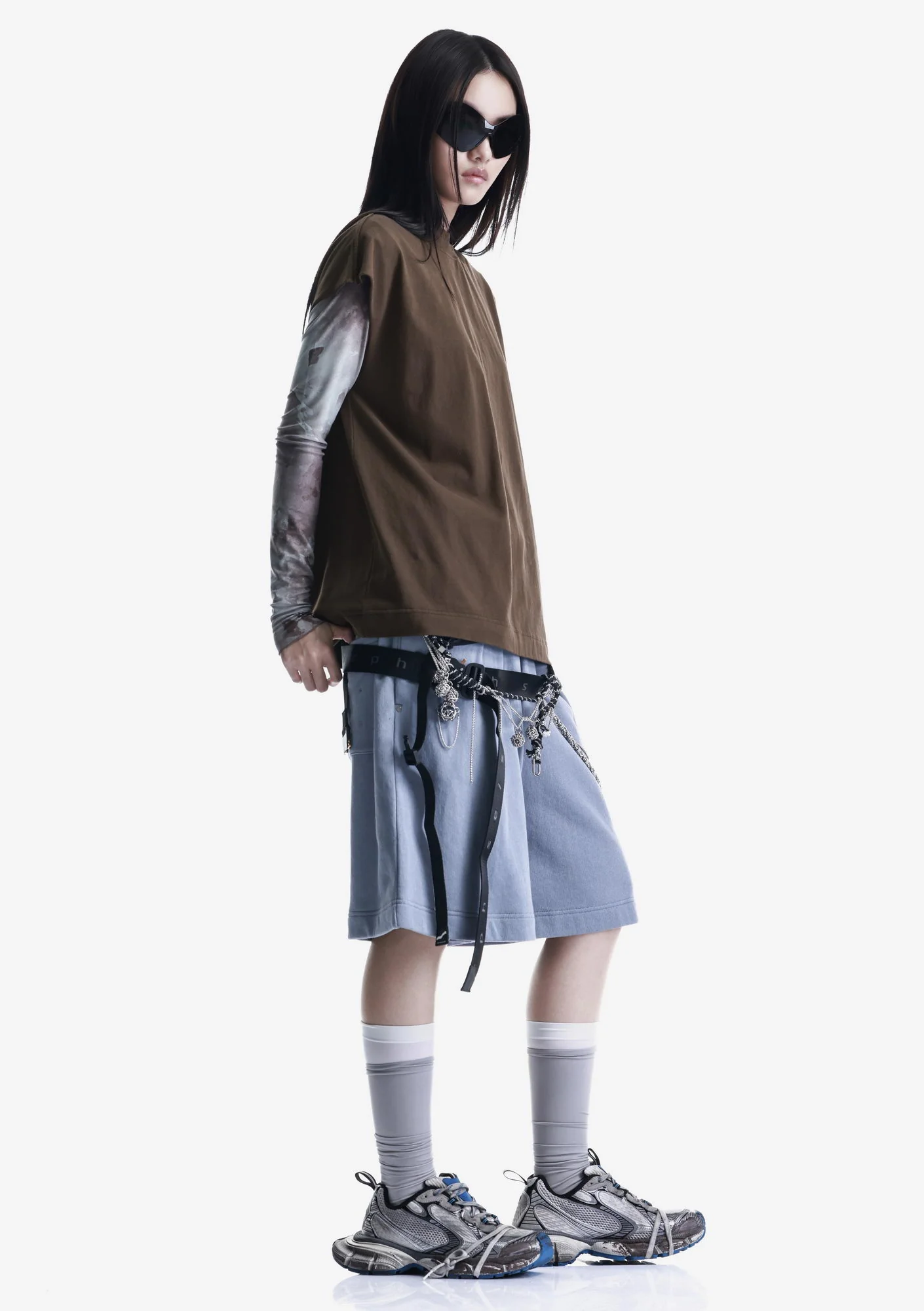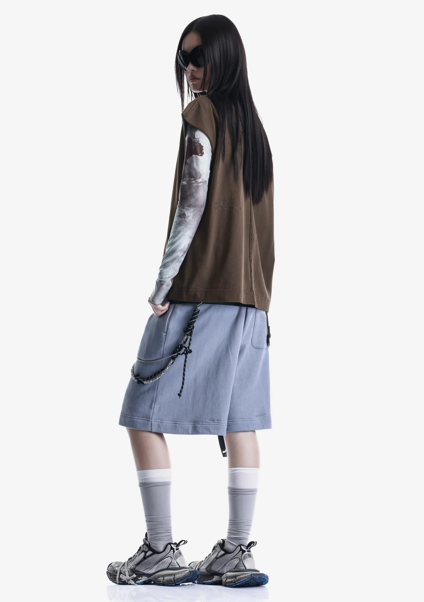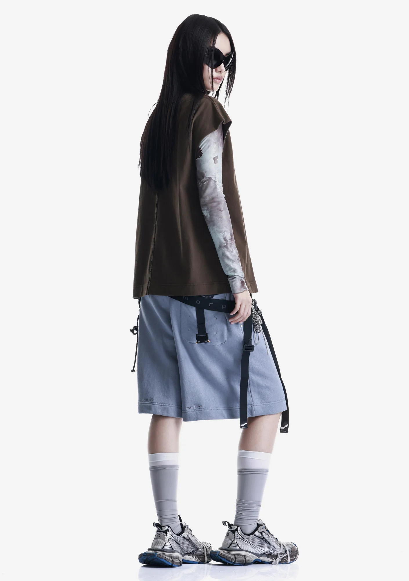 Футболка-безрукавка из мягкого хлопкового джерси с начёсом. Вышивка и открытый шов по центру спинки создают графичный акцент, необработанные проймы поддерживают свободный характер модели.