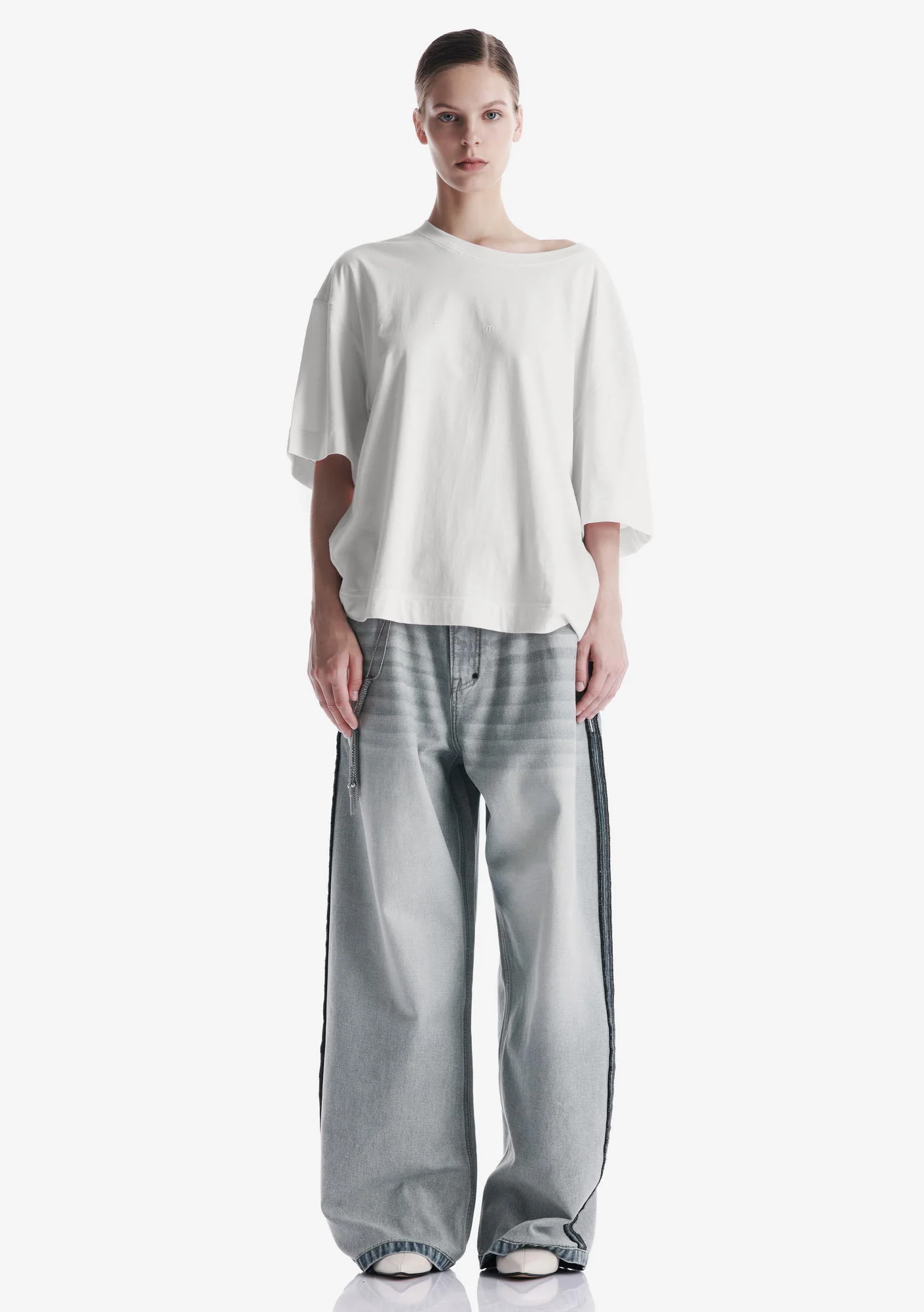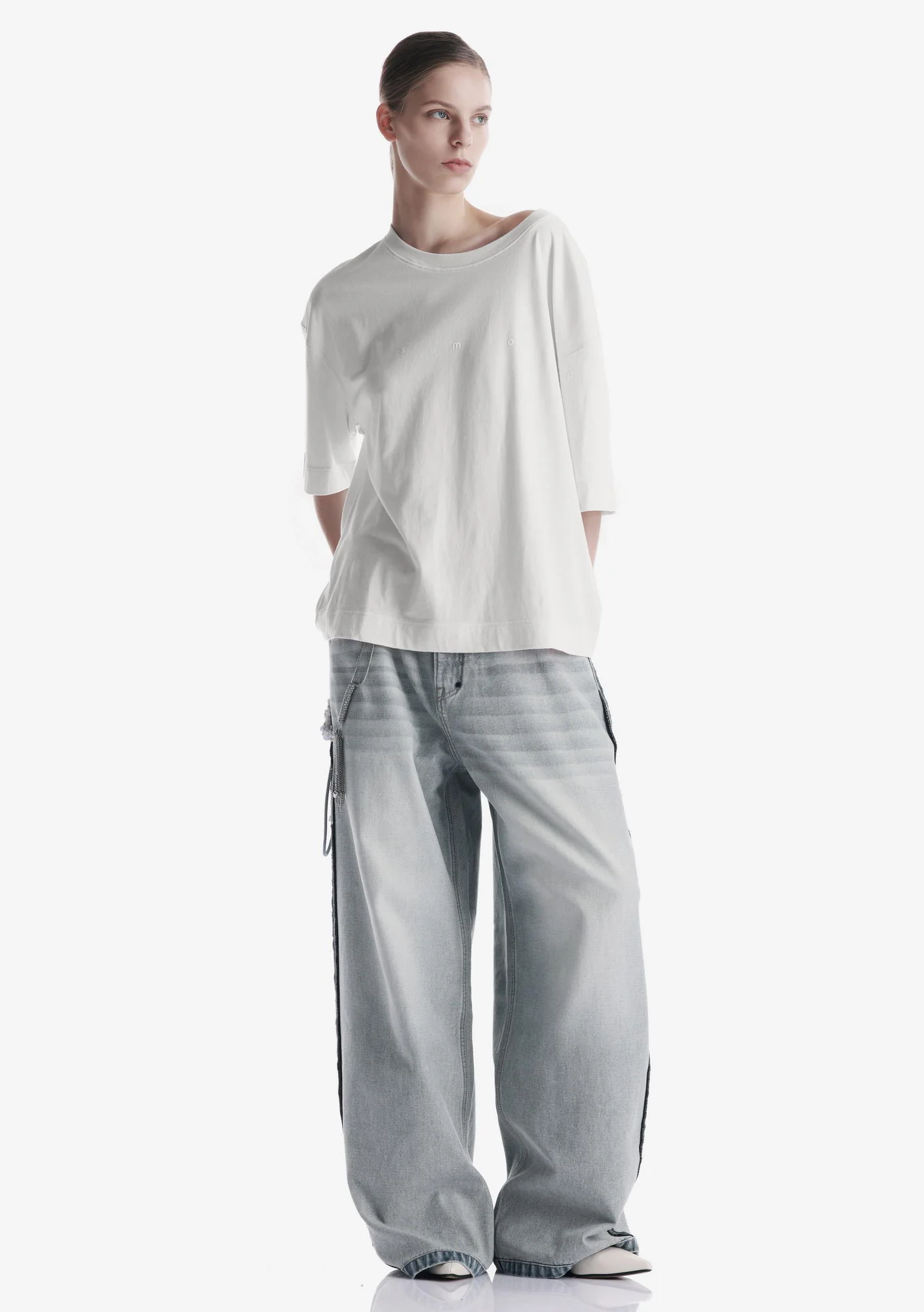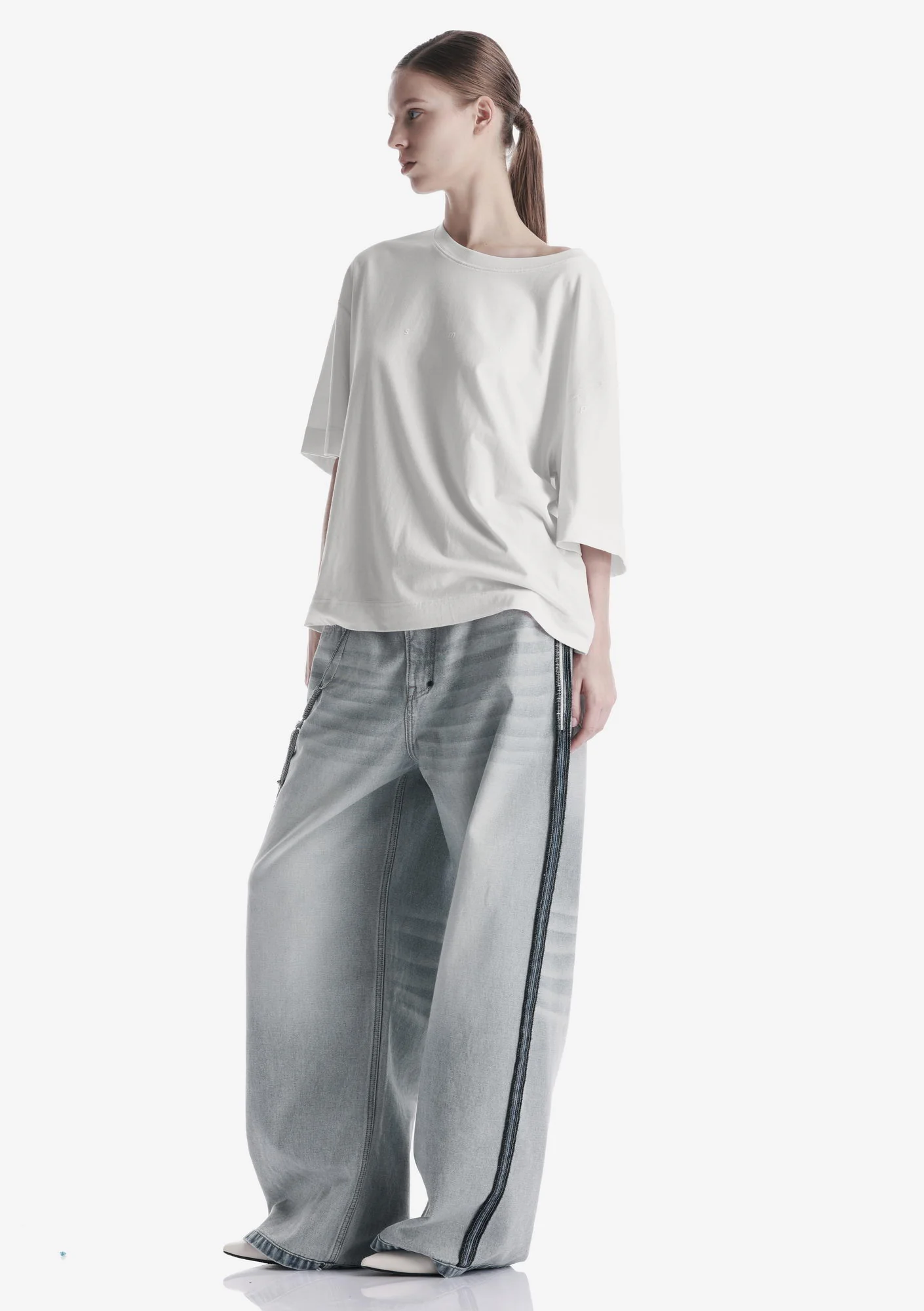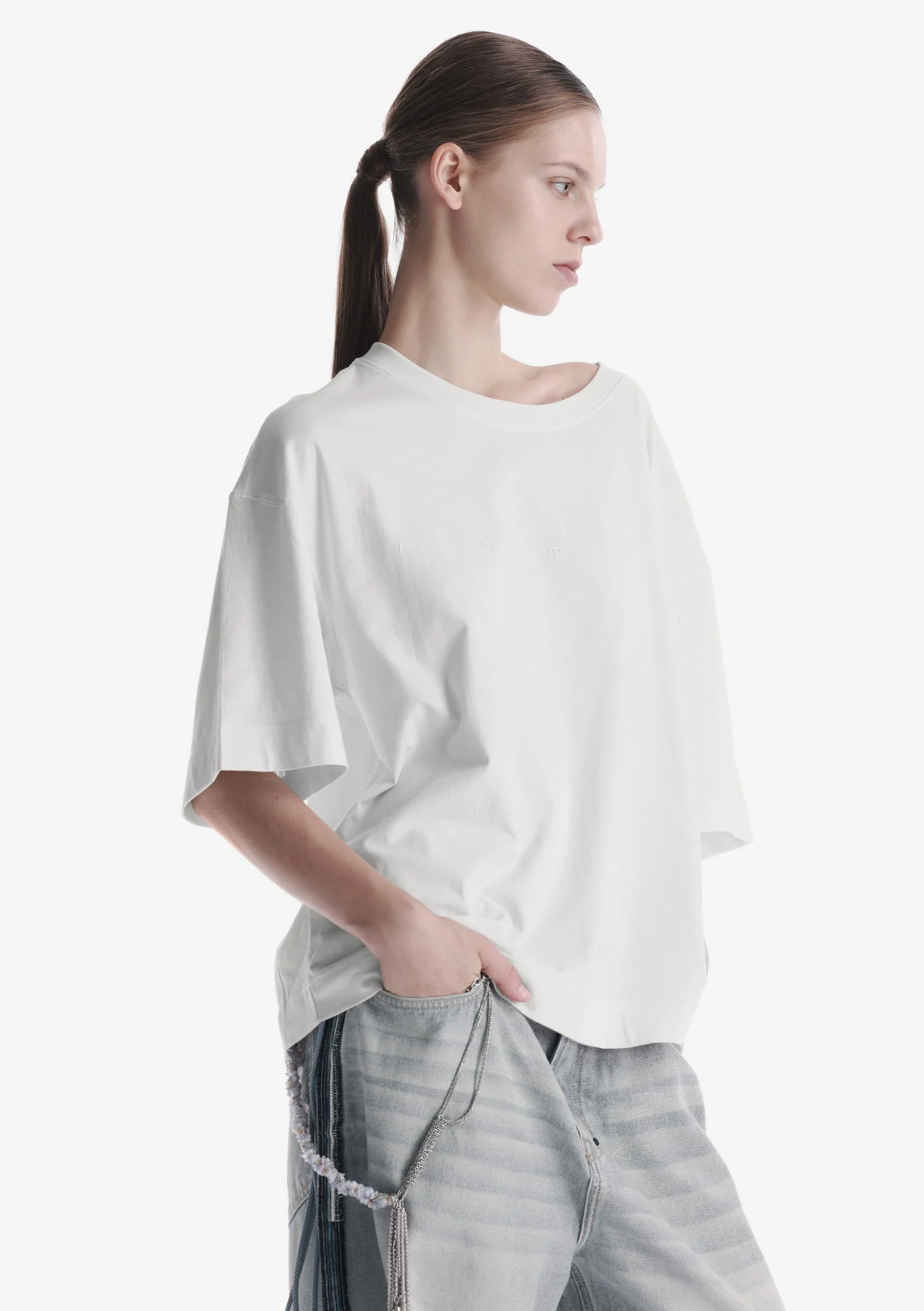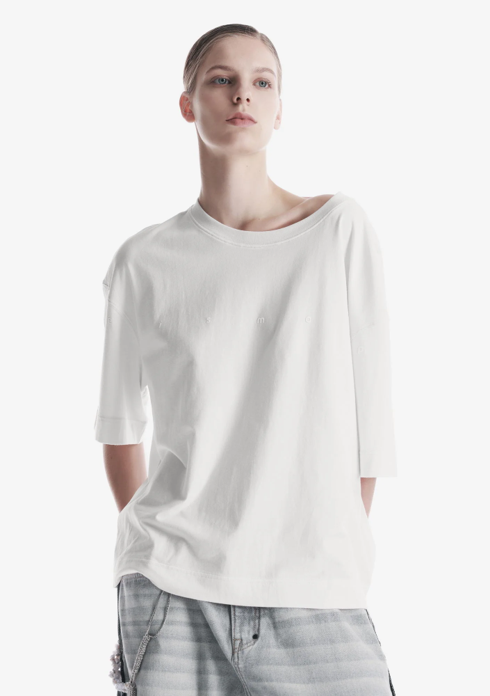 Свободная футболка из мягкого хлопкового джерси с лёгким ворсом и однородной структурой. Трикотажная горловина поддерживает форму, принт спереди и сзади создаёт графичный акцент, а центральная складка на спинке добавляет свободу движения.