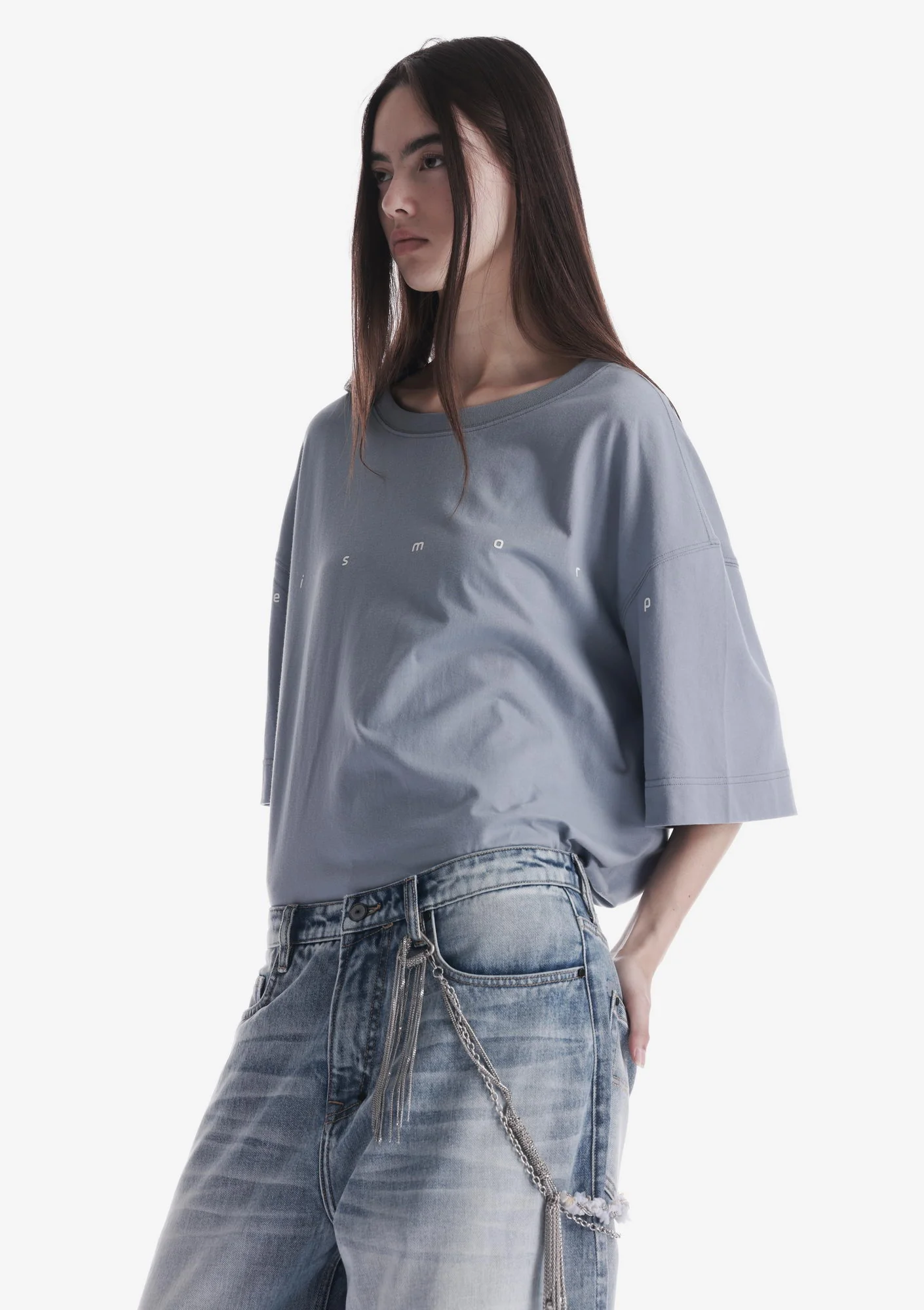 Свободная футболка из мягкого хлопкового джерси с лёгким ворсом и однородной структурой. Трикотажная горловина поддерживает форму, принт спереди и сзади создаёт графичный акцент, а центральная складка на спинке добавляет свободу движения.