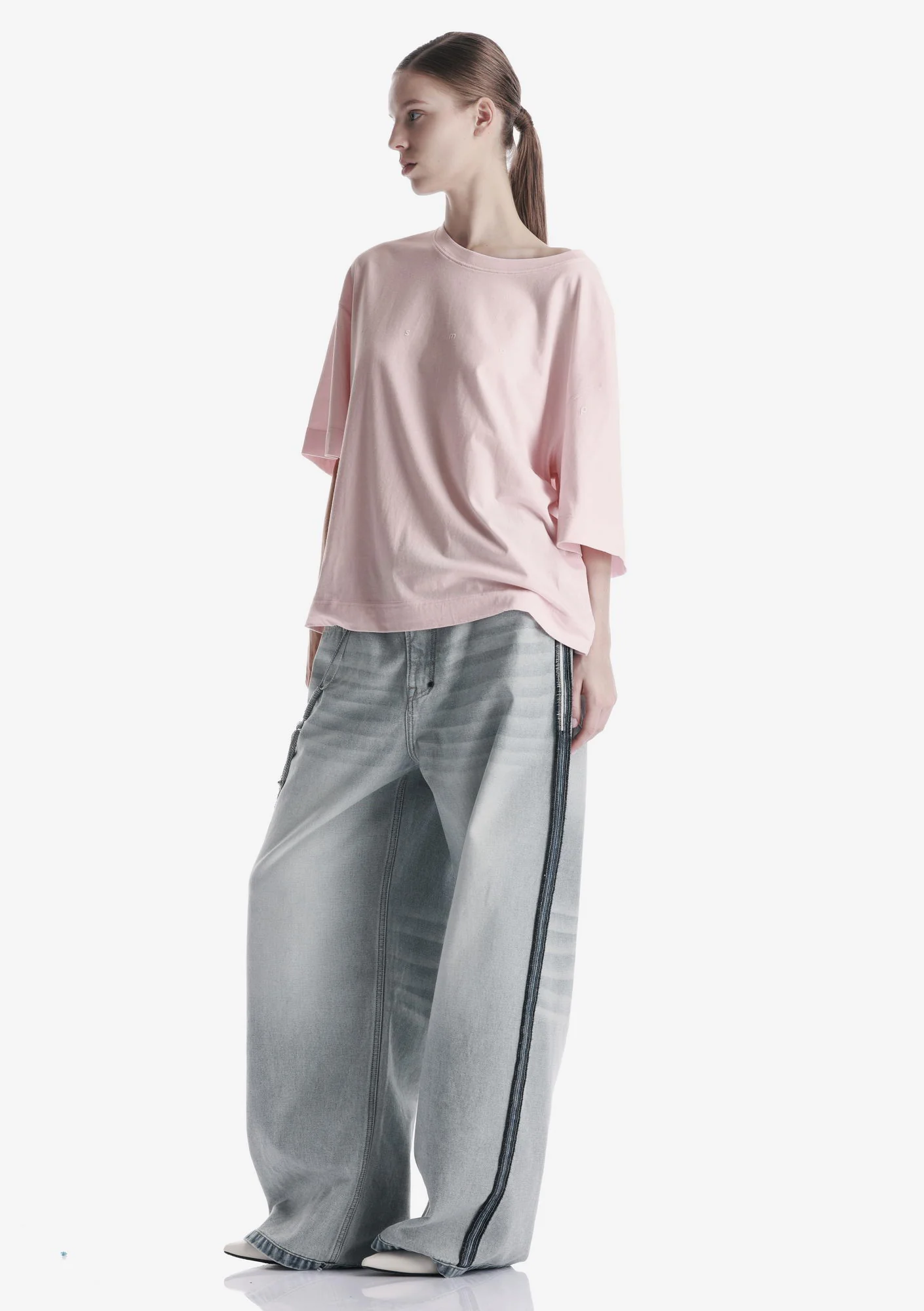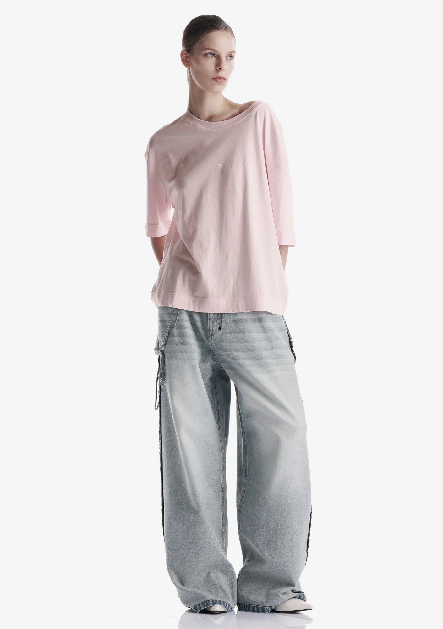 Свободная футболка из мягкого хлопкового джерси с лёгким ворсом и однородной структурой. Трикотажная горловина поддерживает форму, принт спереди и сзади создаёт графичный акцент, а центральная складка на спинке добавляет свободу движения.