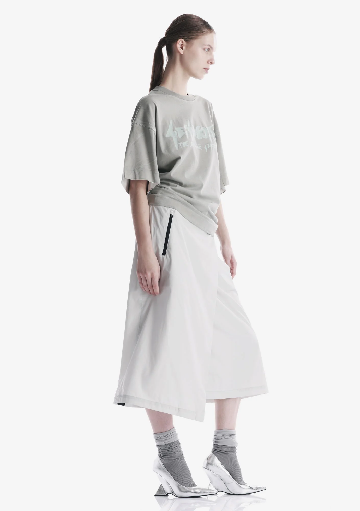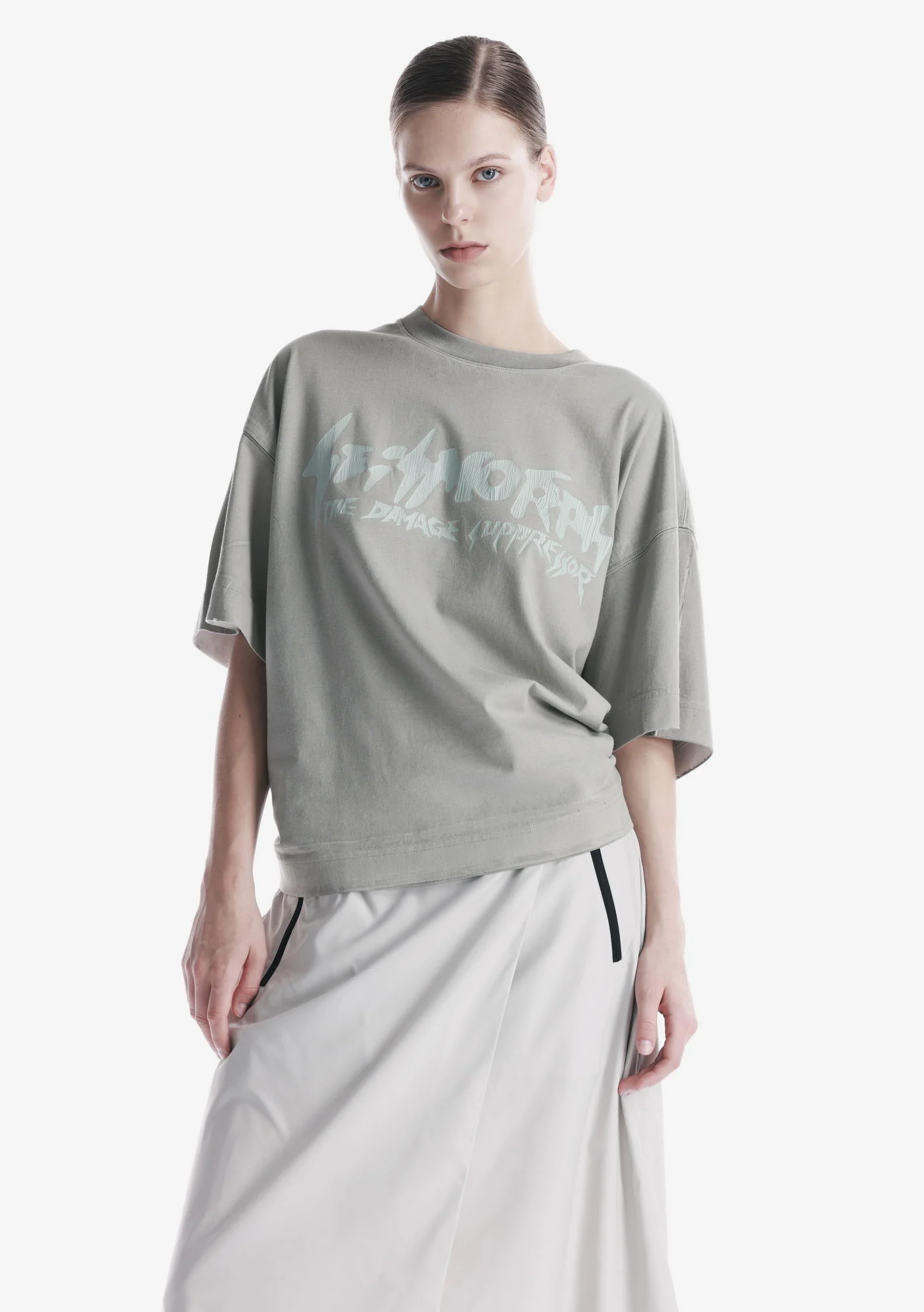 Футболка с окрашиванием методом распыления выполнена из гребенного компакт-прядёного хлопкового джерси с ровной структурой. Эластичная горловина поддерживает форму, а принты с эффектом растрескавшегося логотипа создают выразительный графичный акцент.