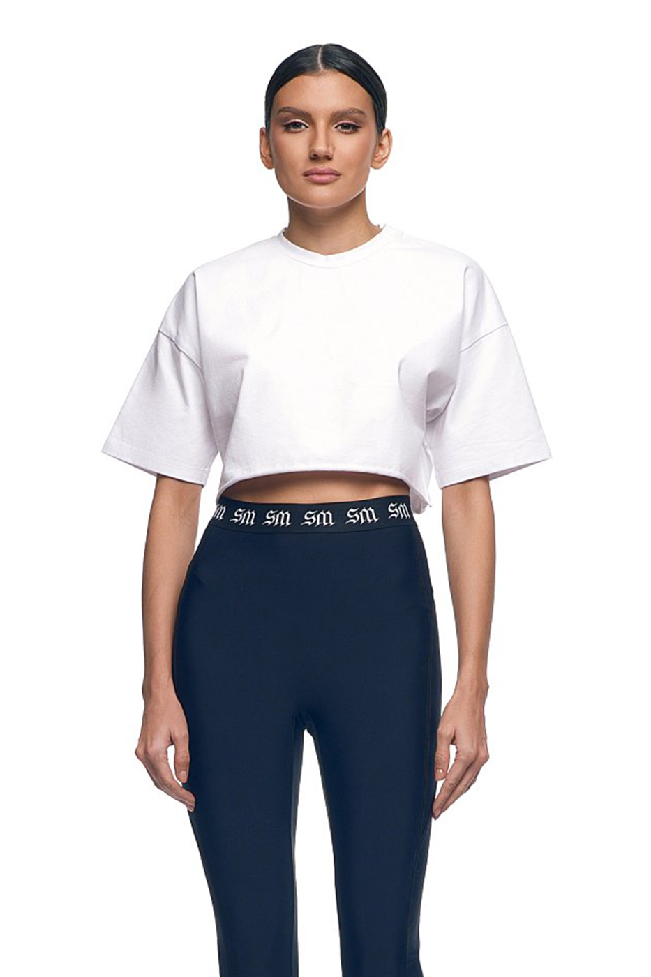 Стильный и удобный элемент гардероба, который подойдёт для создания расслабленных образов. Футболка имеет свободный крой, который не сковывает движений и позволяет чувствовать себя комфортно. Короткий рукав и приподнятый силуэт кропа придают футболке современный и модный вид.