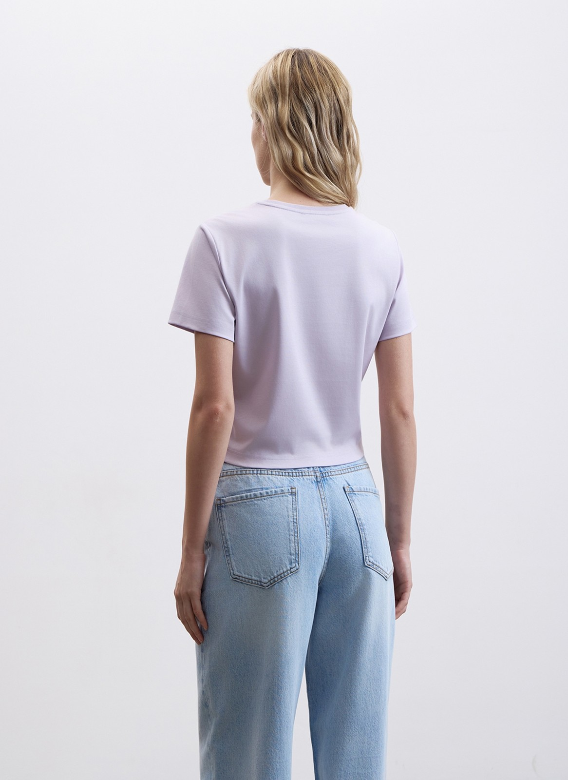 Модель имеет укороченный крой, который эффектно подчёркивает фигуру.