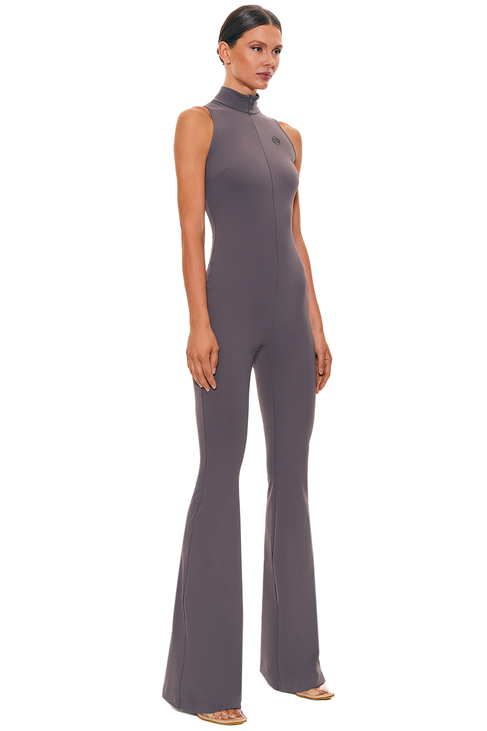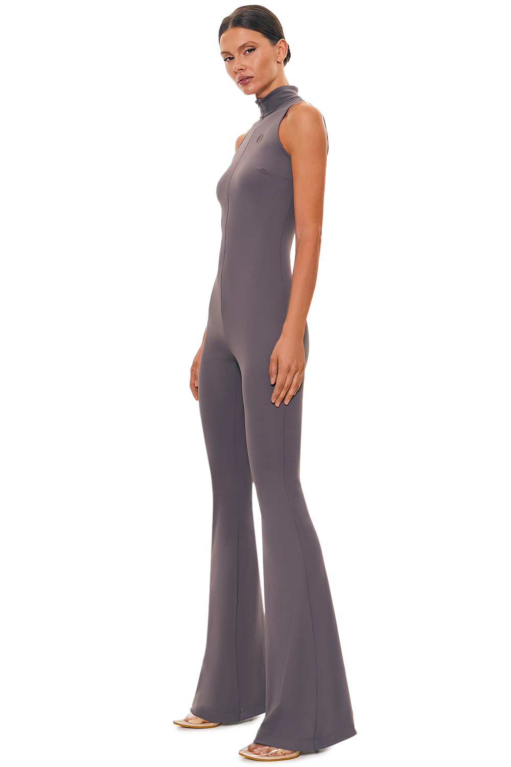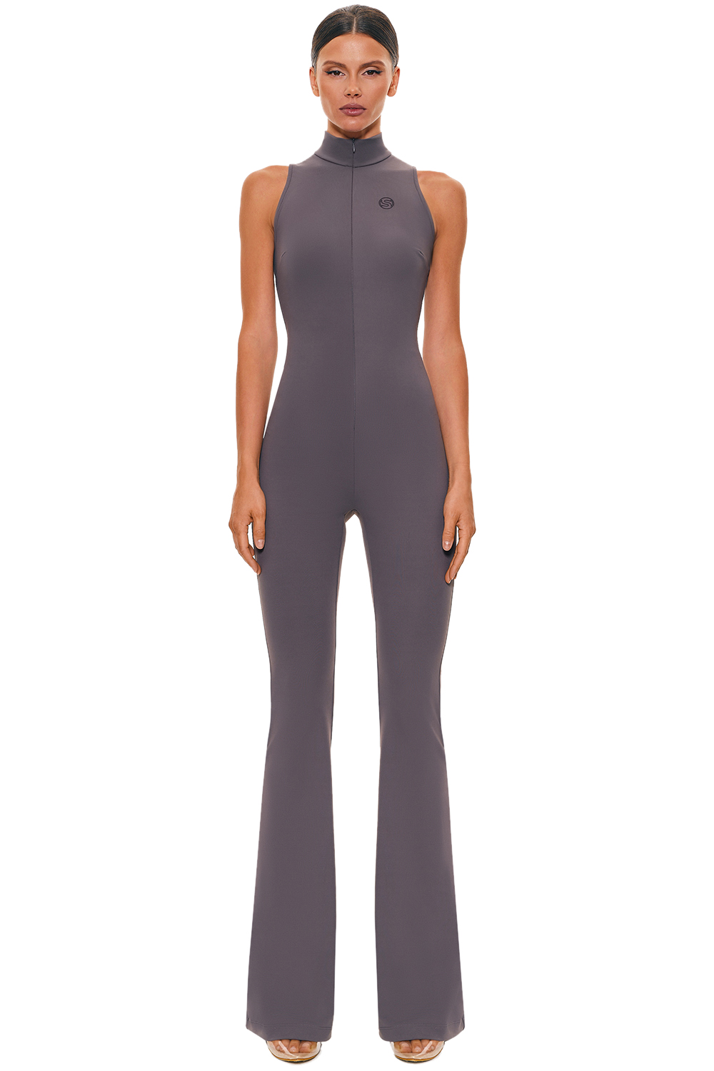 Комбинезон графитового цвета с молнией спереди — практичный и удобный вариант одежды. Подойдёт для различных повседневных и спортивных образов.