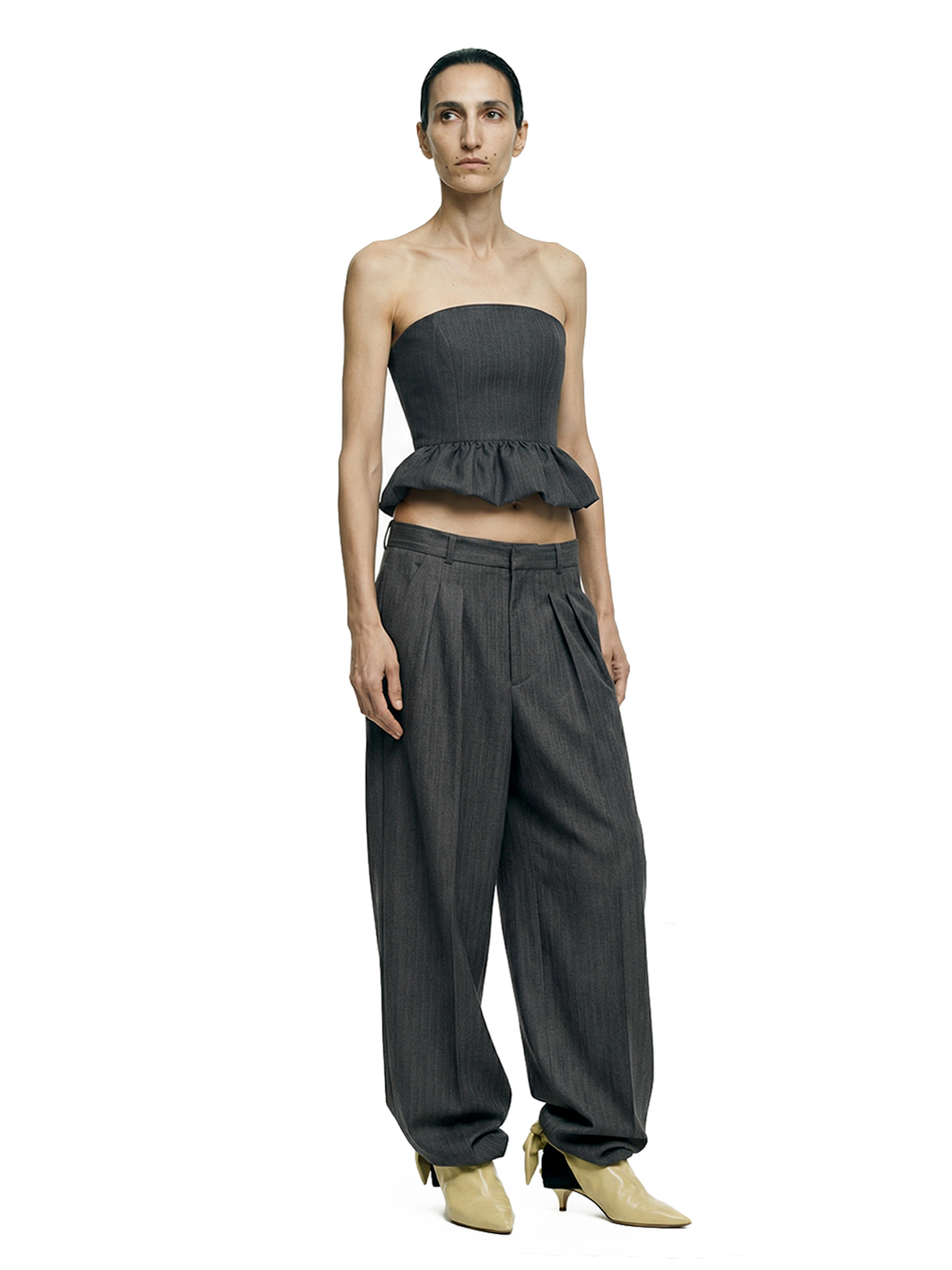 При этом имеет свою абсолютную пару — классические Будничные брюки с расслабленной посадкой.