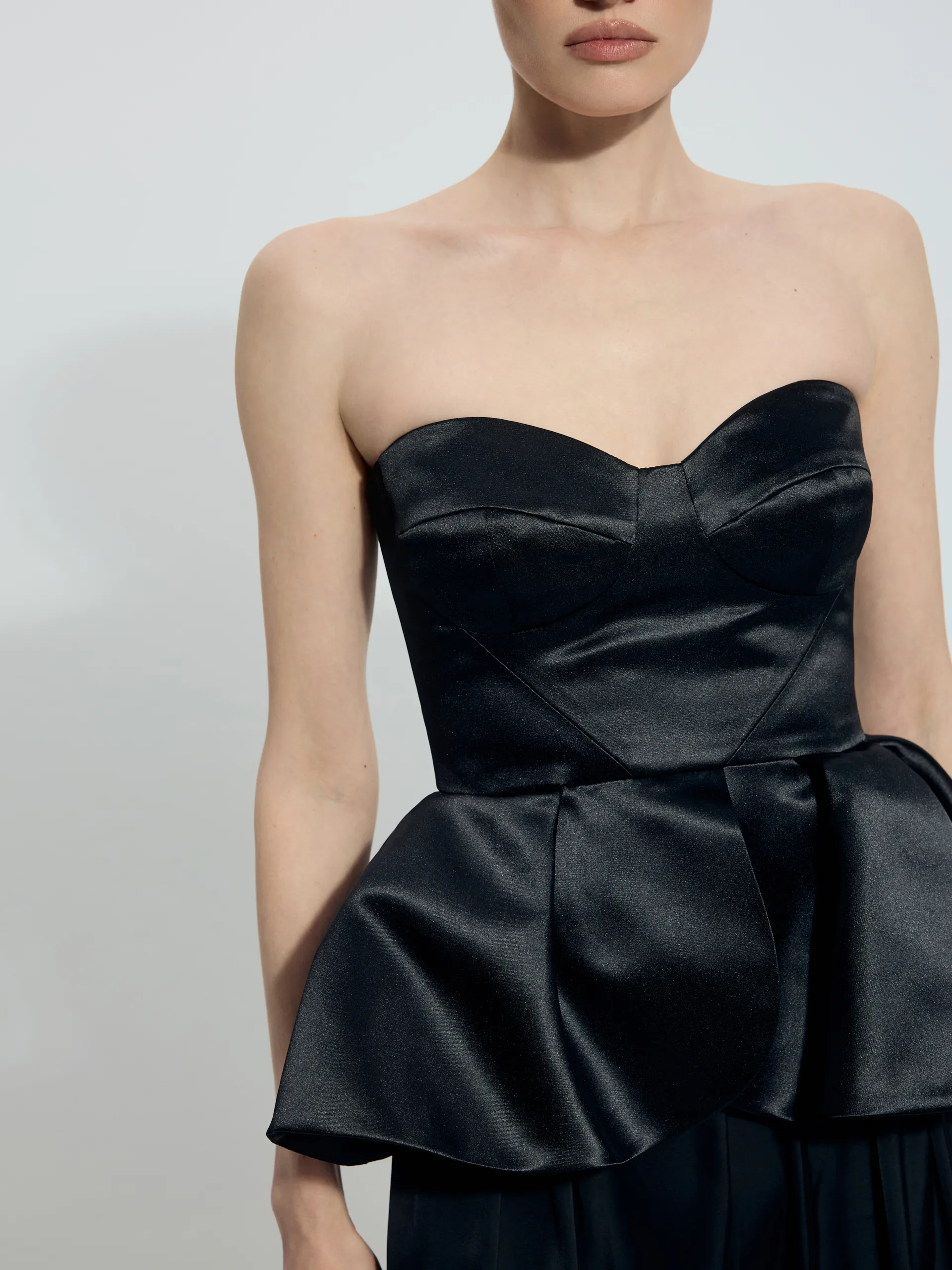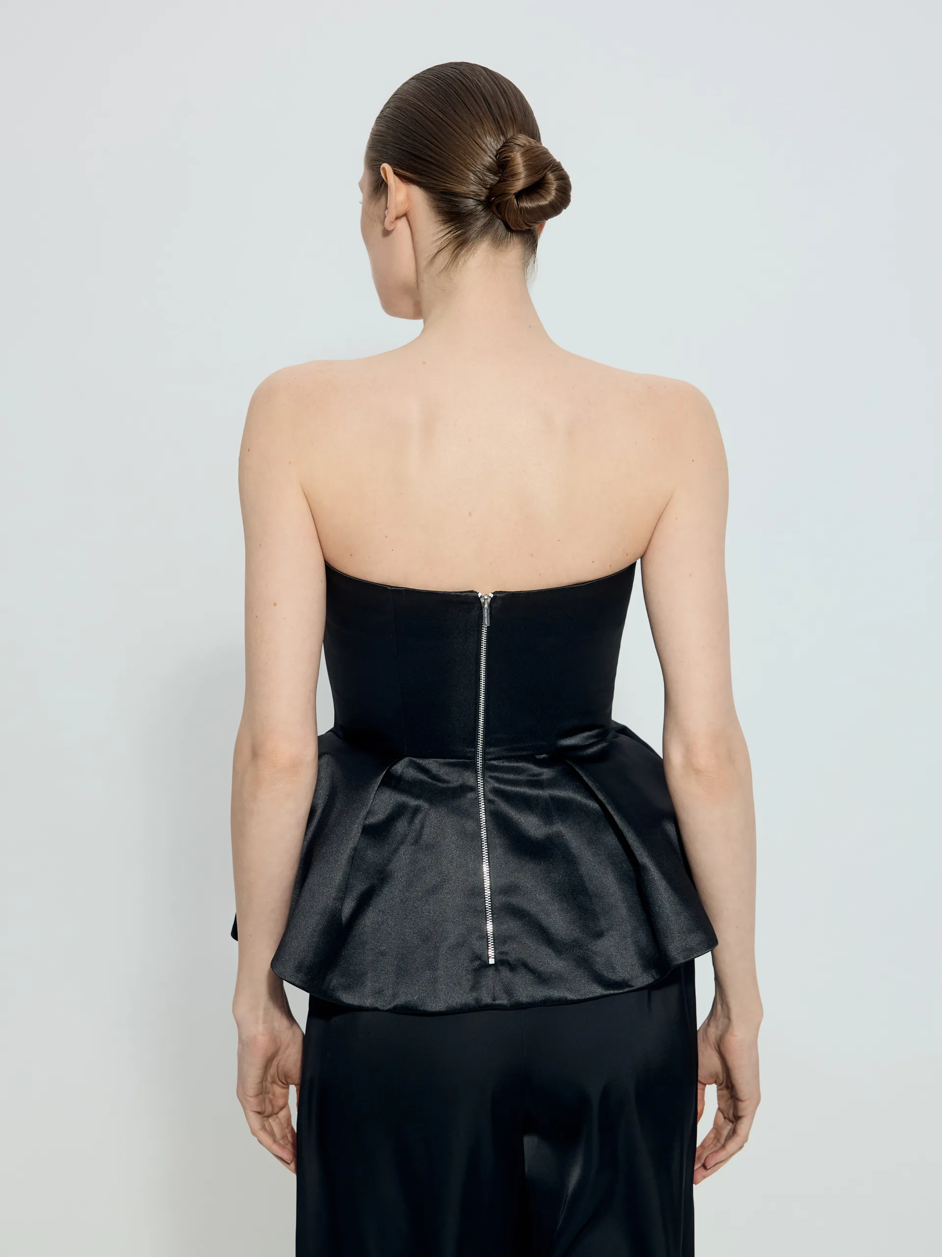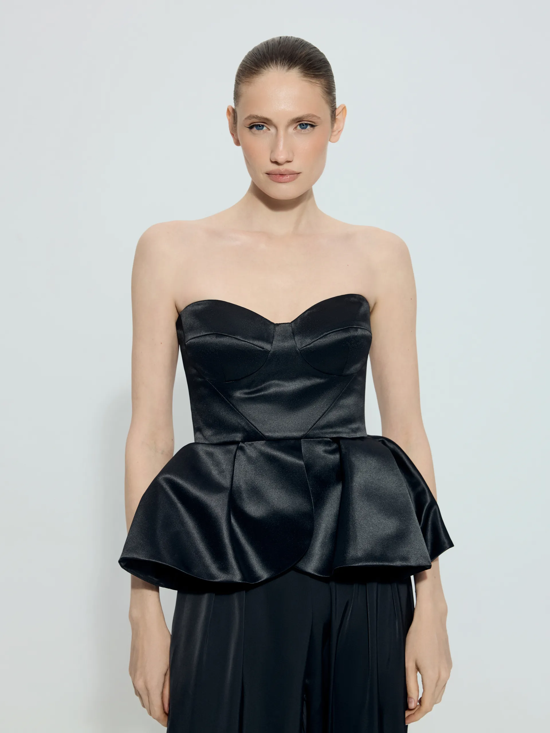 Топ Diante — корсетная модель из плотного атласа, которая создаёт чёткий графичный силуэт и подчёркивает талию. Акцентная баска выполнена из структурной ткани, благодаря чему держит форму, остаётся объёмной и аккуратной в течение всего дня. Плотный атлас придаёт образу глубину и благородный блеск, а качественная фурнитура обеспечивает идеальную посадку без деформации. Этот топ станет выразительной акцентной деталью в любом образе: комбинируйте его с костюмными брюками, прямыми юбками или жакетами из нашей коллекции для создании продуманного и сильного образа.