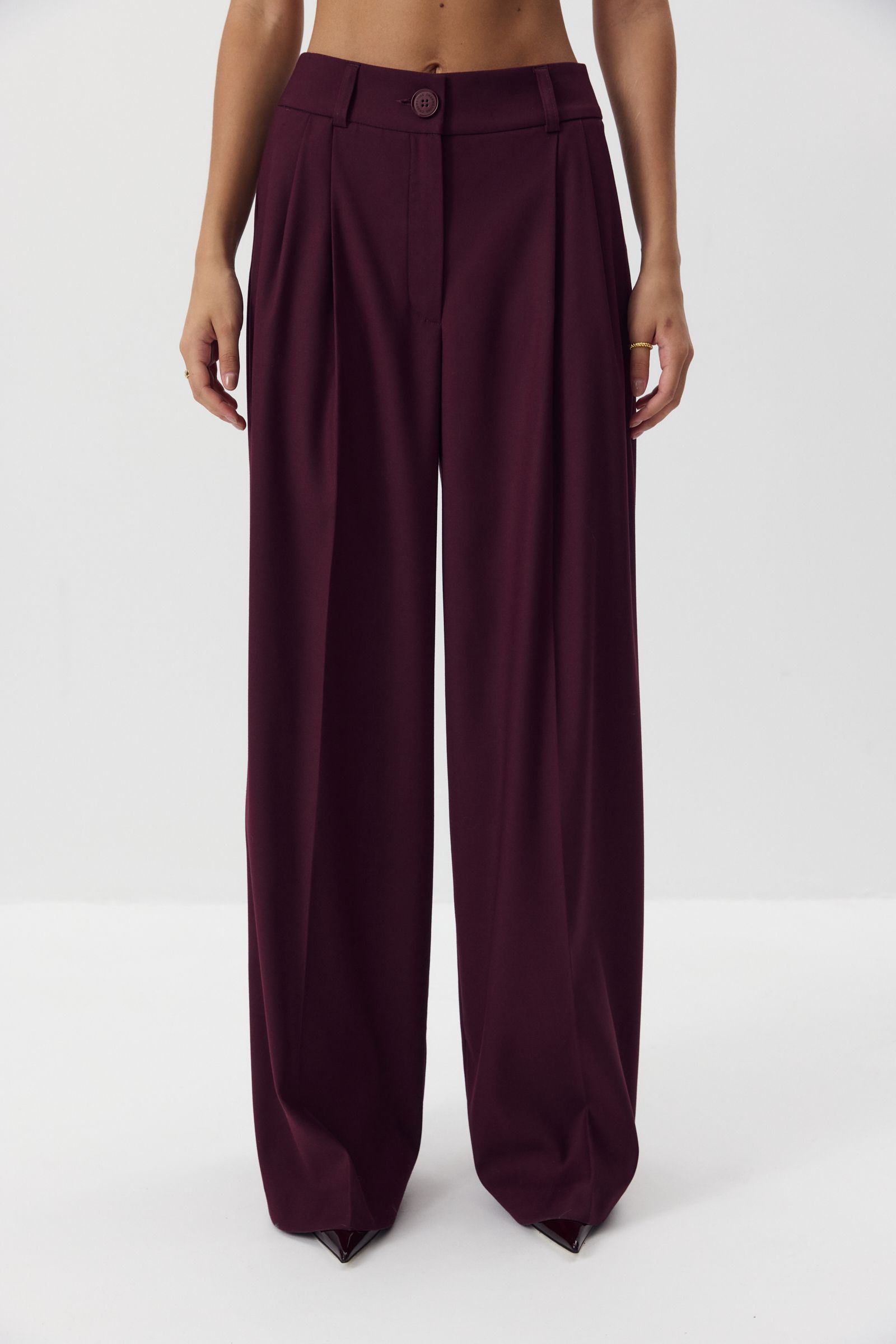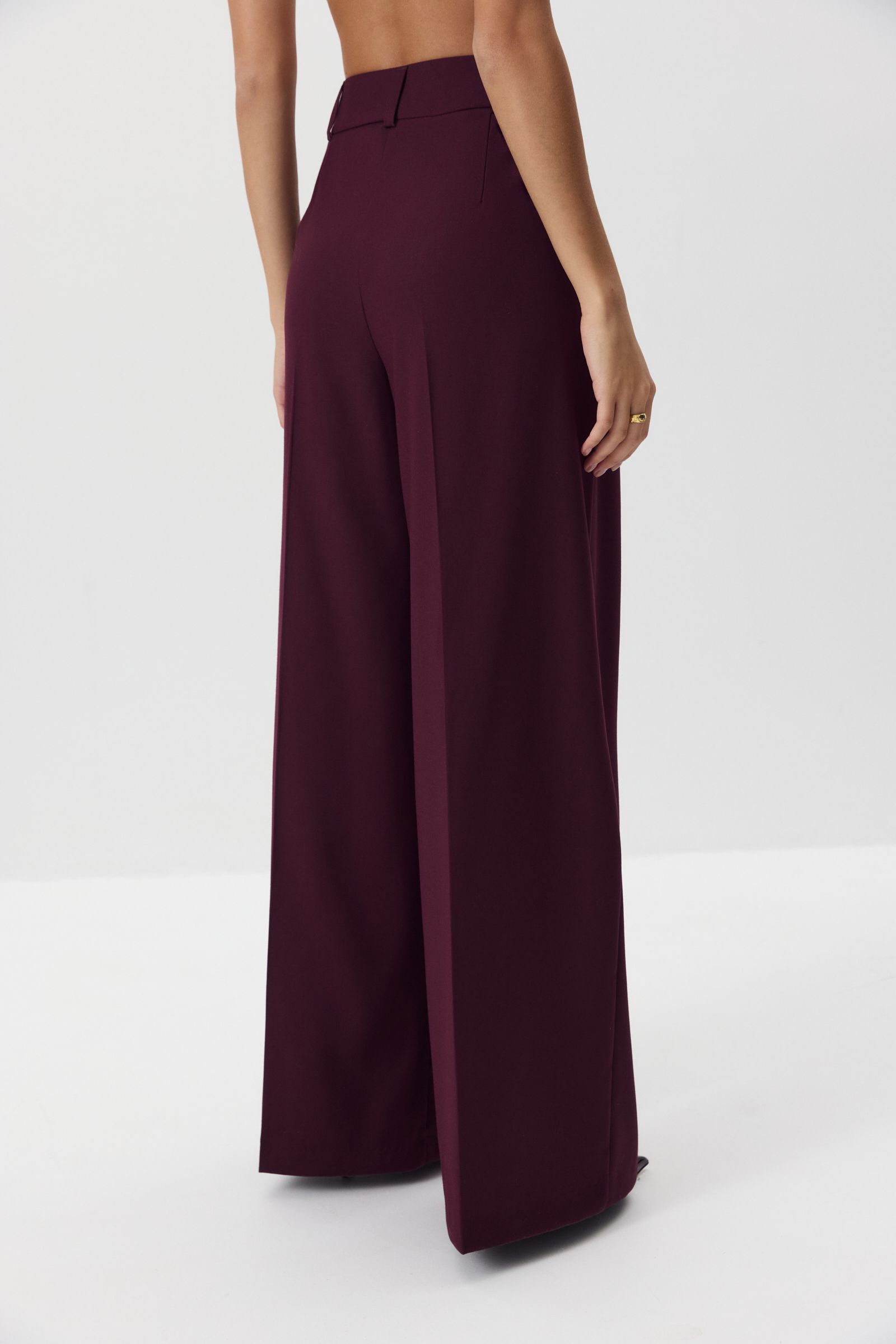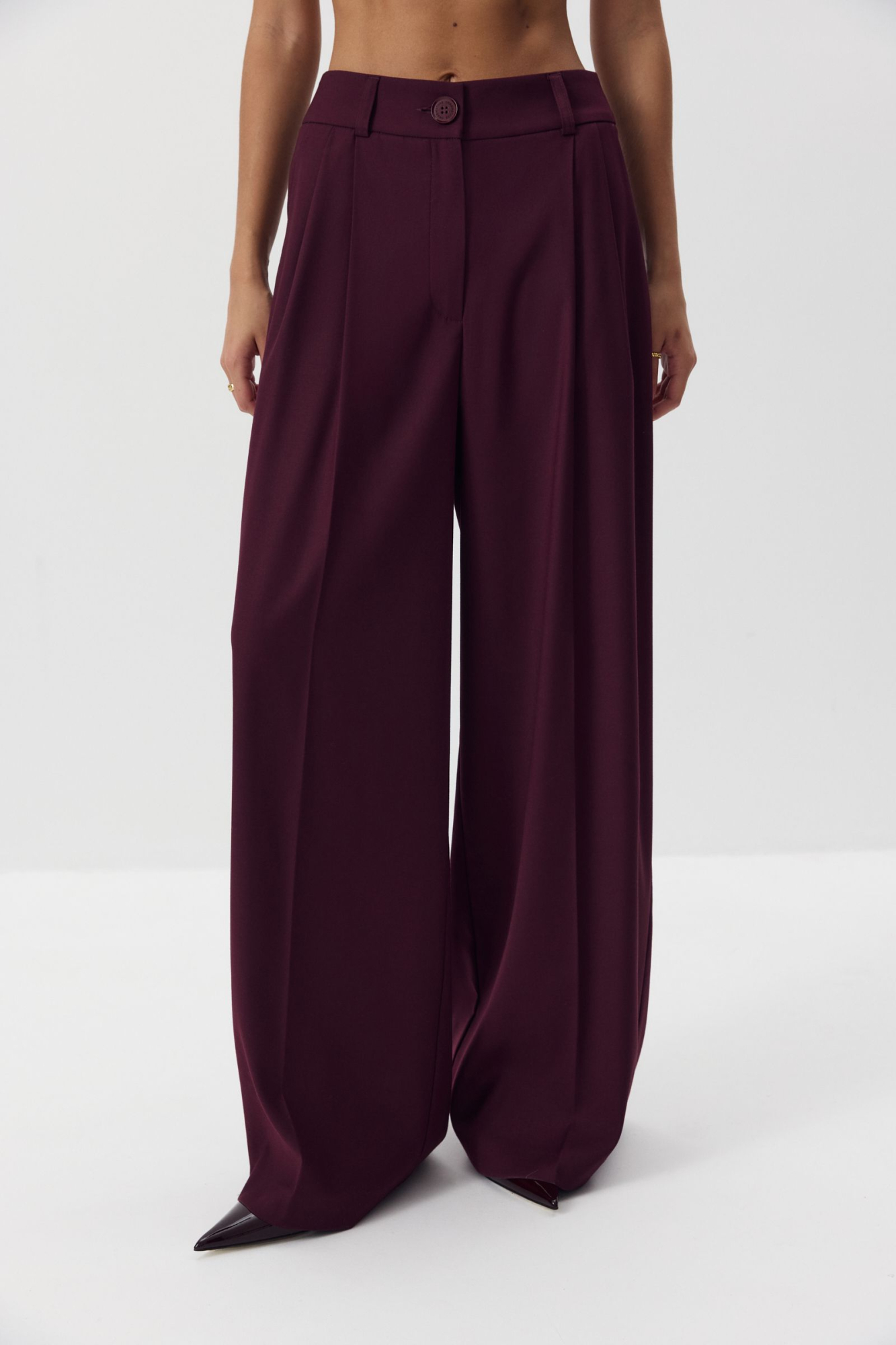 Широкие брюки палаццо- это воплощение элегантности. Свободный силуэт струится при движении. визуально вытягивая силуэт и придавая образу утонченность. Защипы на поясе создают мягкий объем и подчеркивают талию, а лаконичный крой делает модель универсальной: такие брюки легко вписываются и в деловой стиль, и в расслабленные повседневные сочетания.