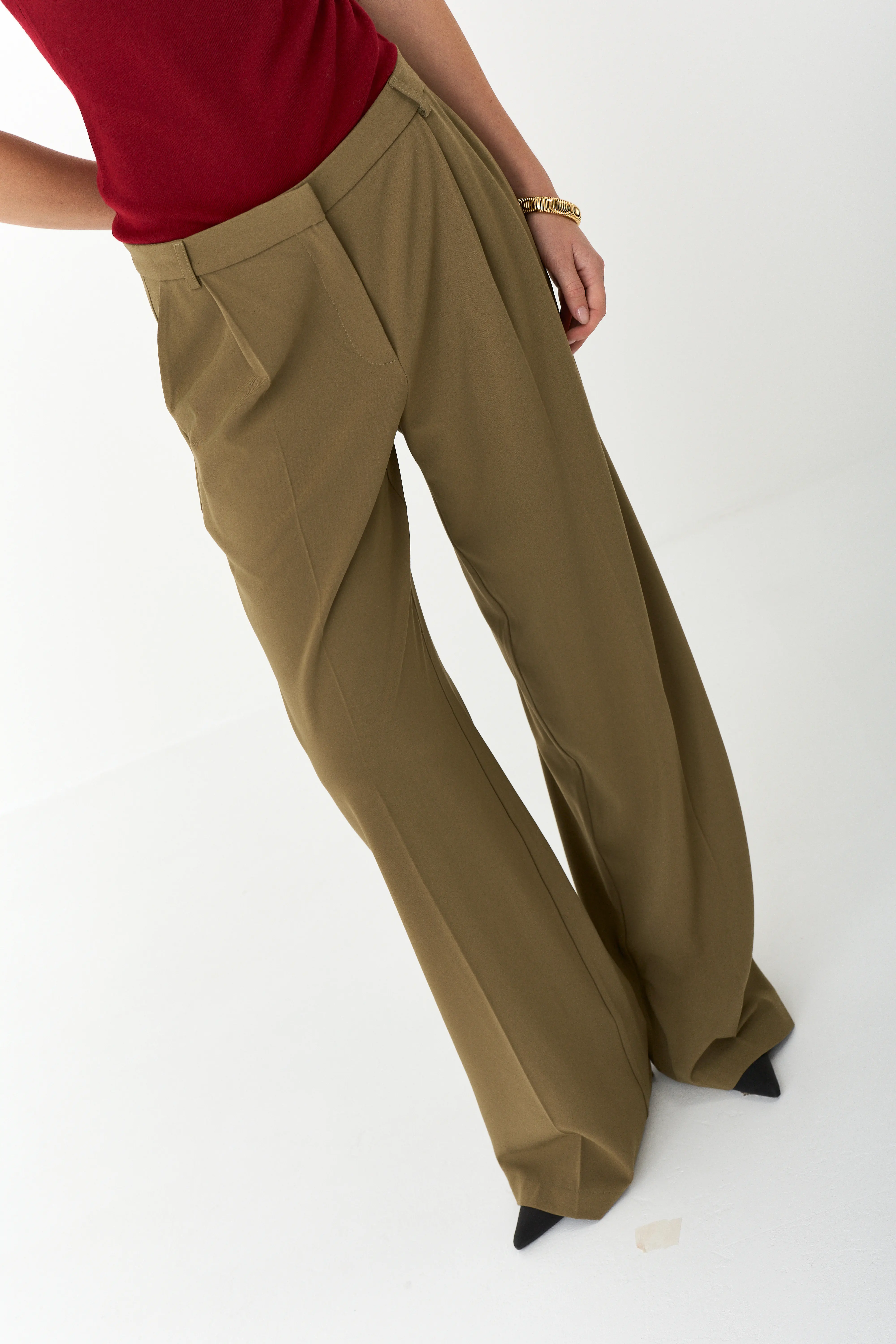Брюки палаццо в расслабленном стиле – лёгкая и комфортная модель с широкими штанинами, создающая эффектный и свободный силуэт. Свободный крой обеспечивает максимальное удобство и лёгкость движений, делая образ непринуждённым и элегантным одновременно.