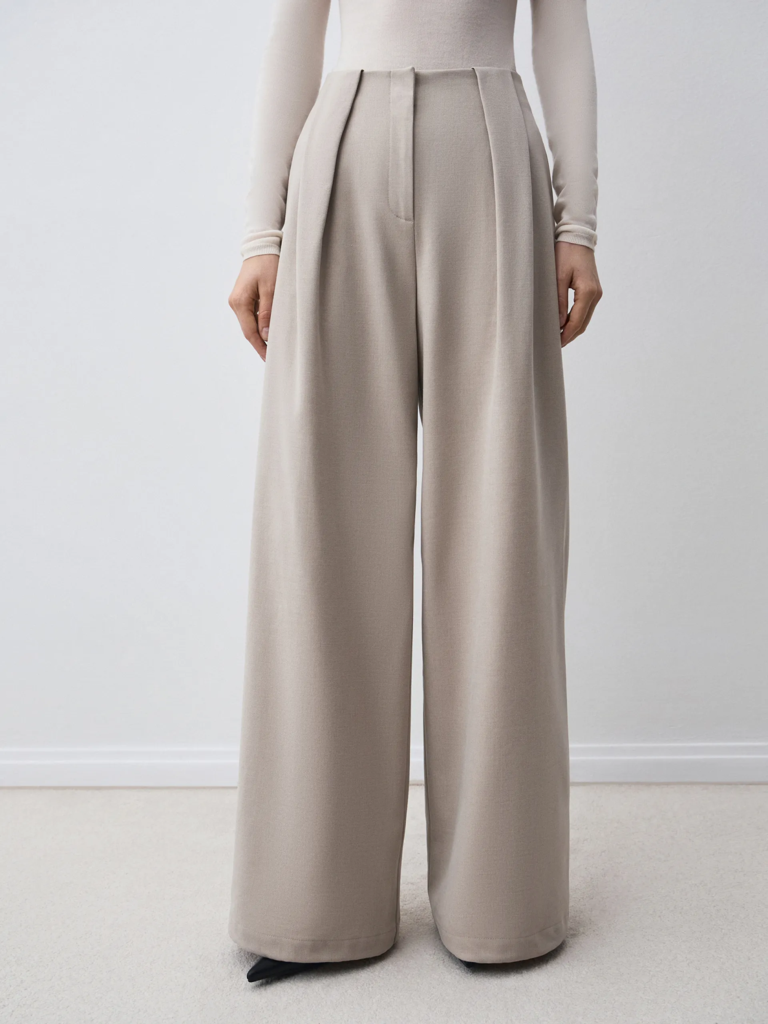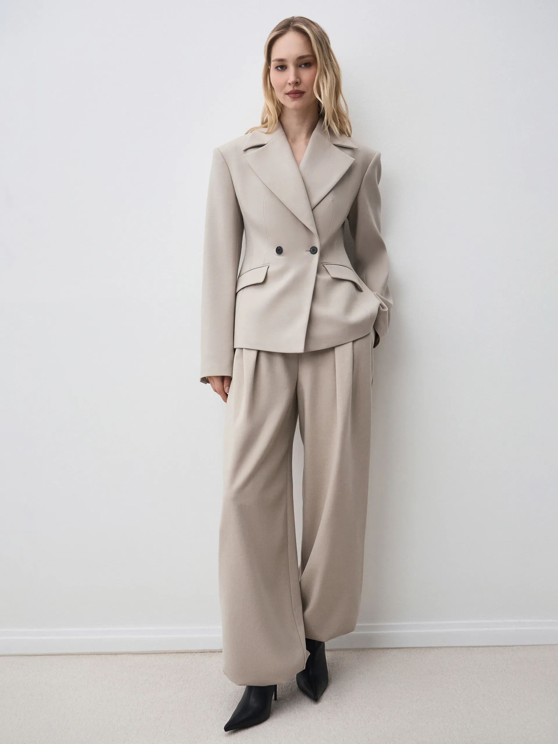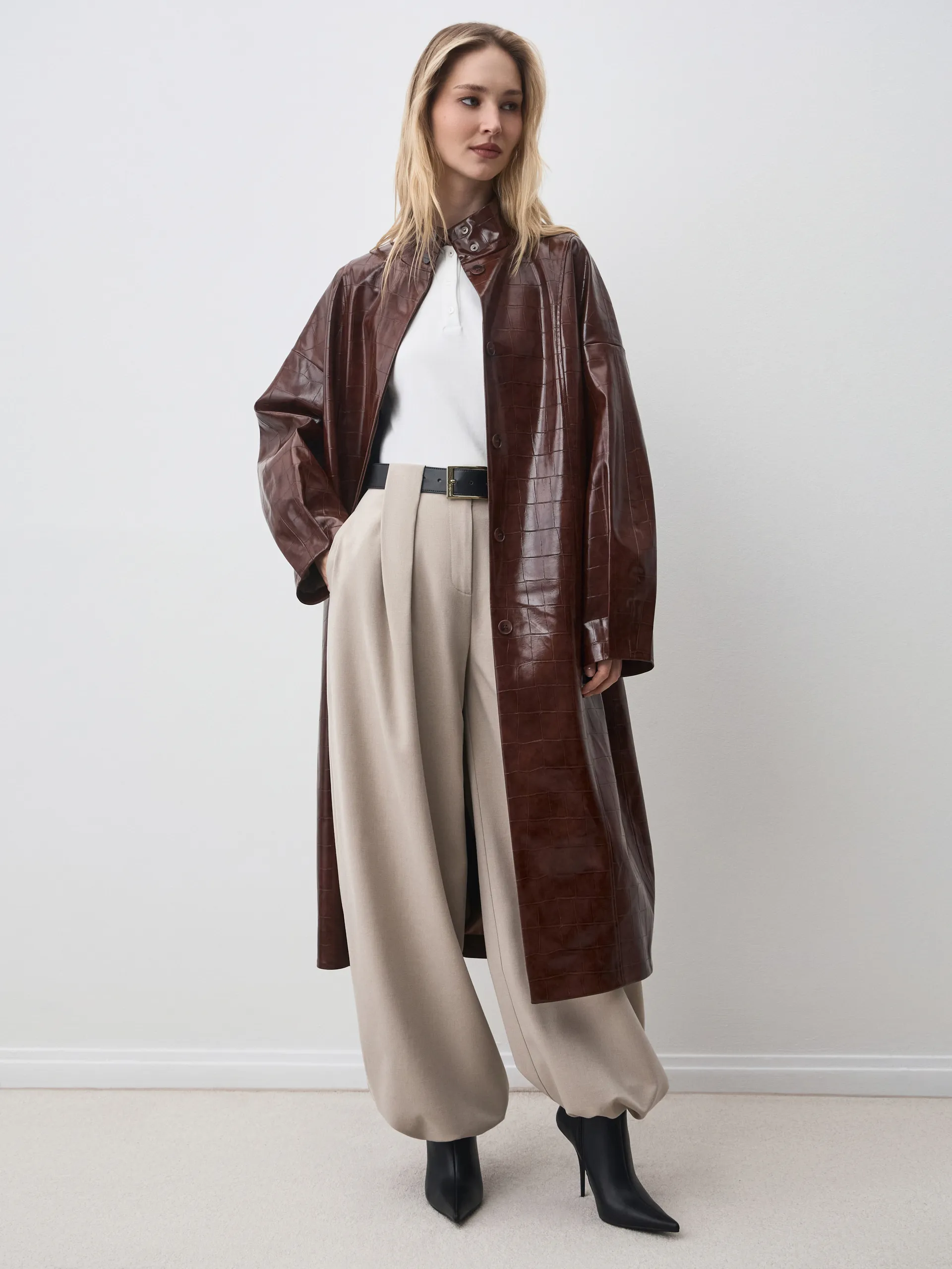 Акцентная модель из костюмной ткани с содержанием шерсти. Свободный силуэт палаццо и высокая посадка визуально удлиняют ноги и делают силуэт более изящным. Благодаря кулиске внизу брюки легко трансформируются: их можно носить как элегантные палаццо или создать трендовый вариант в стиле «Жасмин». Универсальная модель, которая подстраивается под настроение и повод. Для завершённого образа сочетайте с приталенным жакетом Diego в том же оттенке или добавляйте лёгкие топы и рубашки. Подойдут как к обуви на каблуке, так и к плоскому ходу, создавая разные акценты — от делового и повседневного до стильного вечернего.