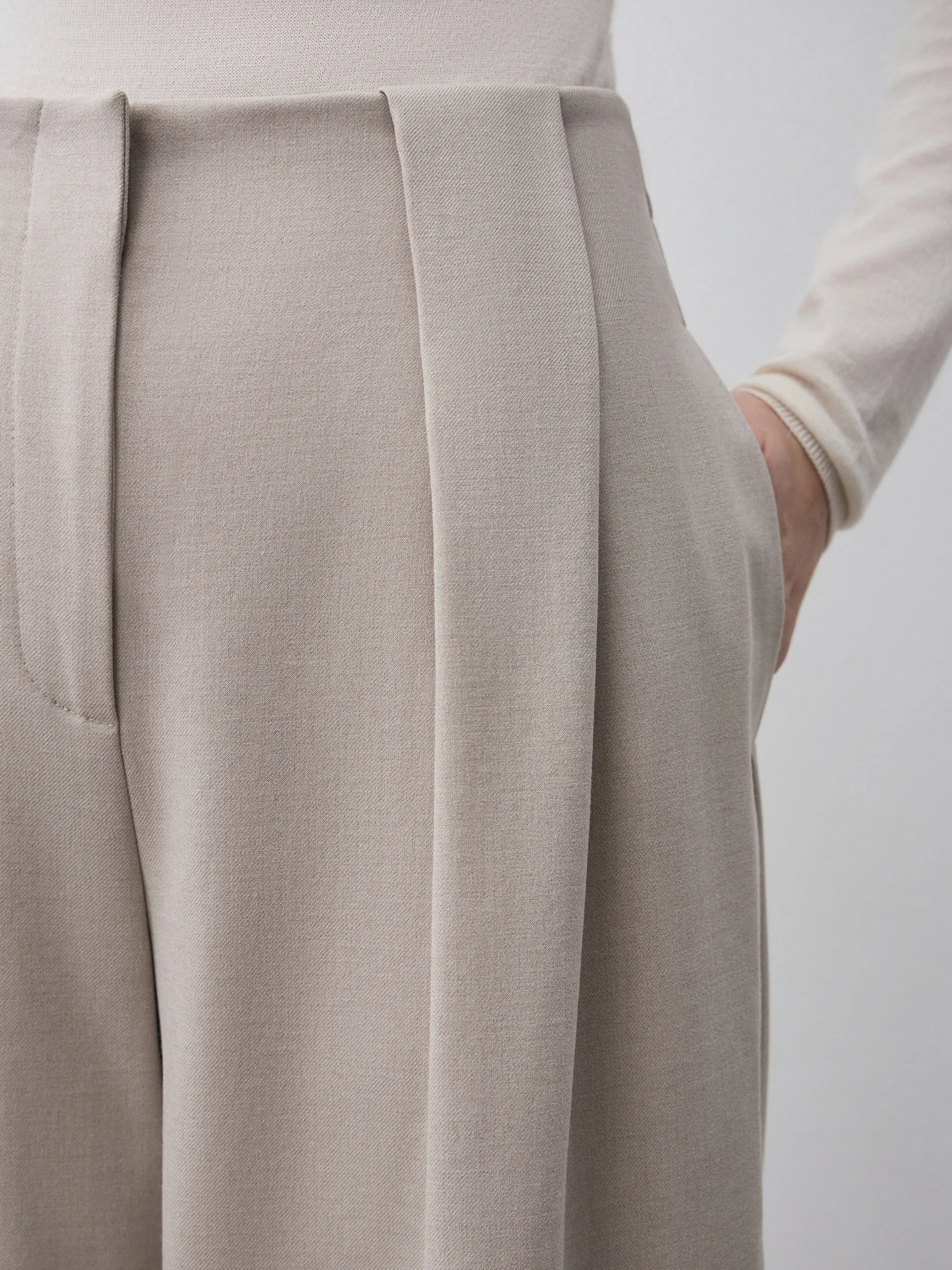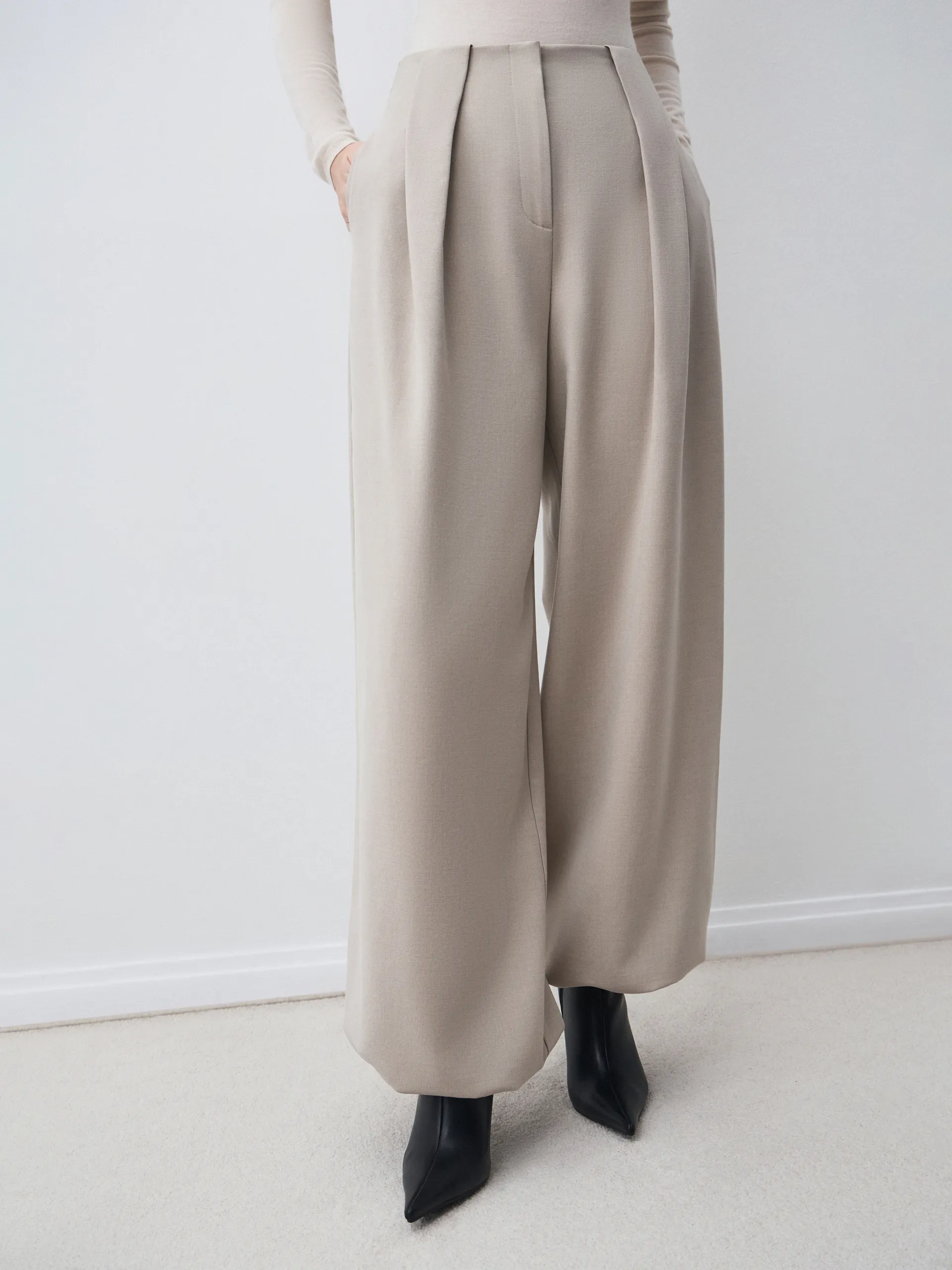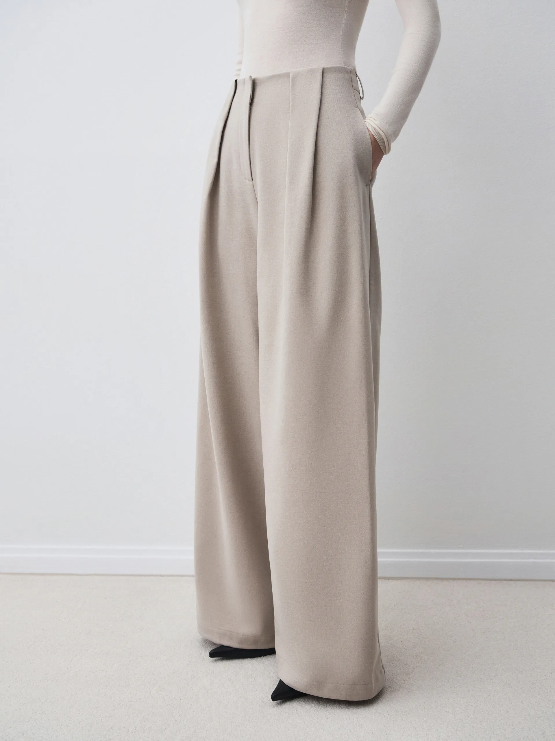 Акцентная модель из костюмной ткани с содержанием шерсти. Свободный силуэт палаццо и высокая посадка визуально удлиняют ноги и делают силуэт более изящным. Благодаря кулиске внизу брюки легко трансформируются: их можно носить как элегантные палаццо или создать трендовый вариант в стиле «Жасмин». Универсальная модель, которая подстраивается под настроение и повод. Для завершённого образа сочетайте с приталенным жакетом Diego в том же оттенке или добавляйте лёгкие топы и рубашки. Подойдут как к обуви на каблуке, так и к плоскому ходу, создавая разные акценты — от делового и повседневного до стильного вечернего.