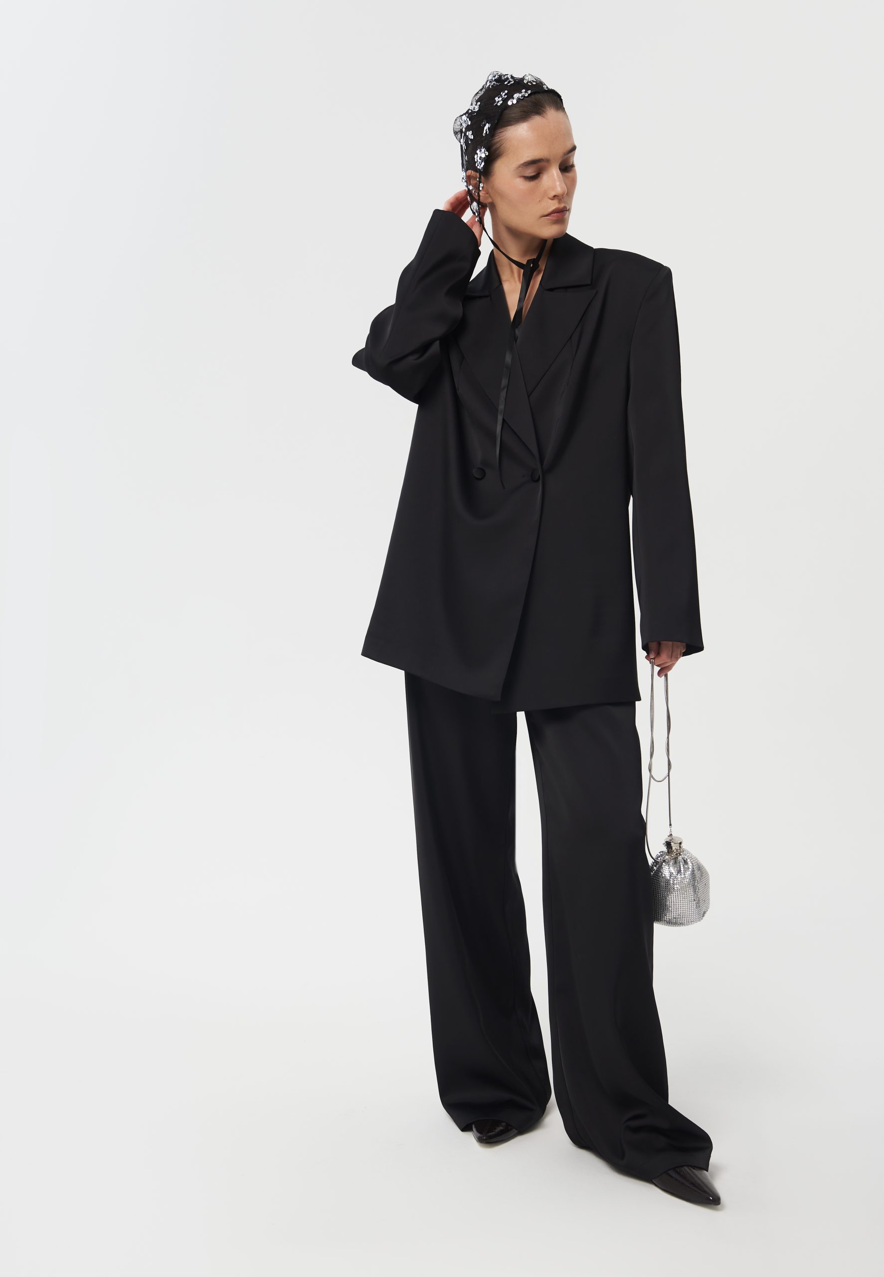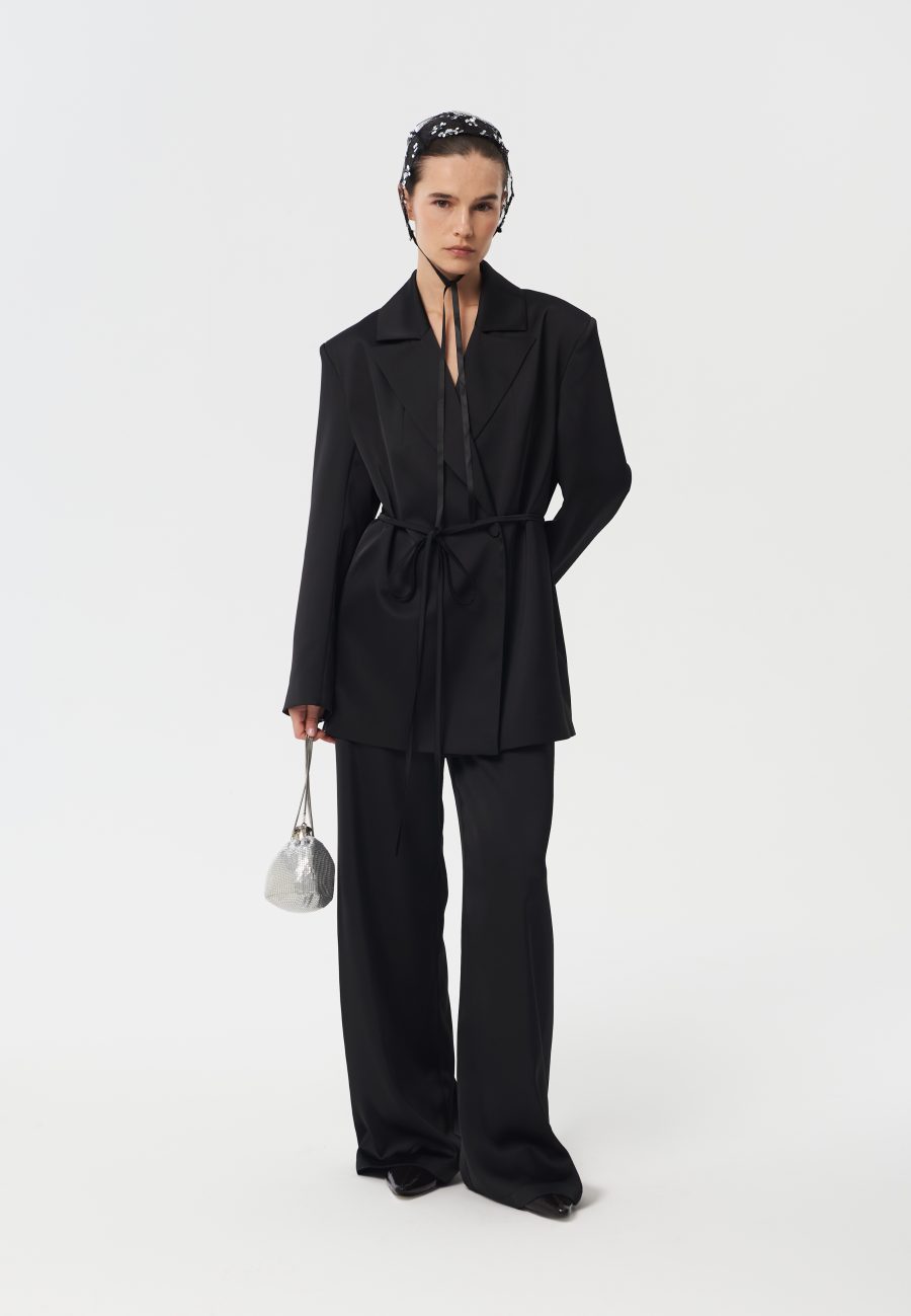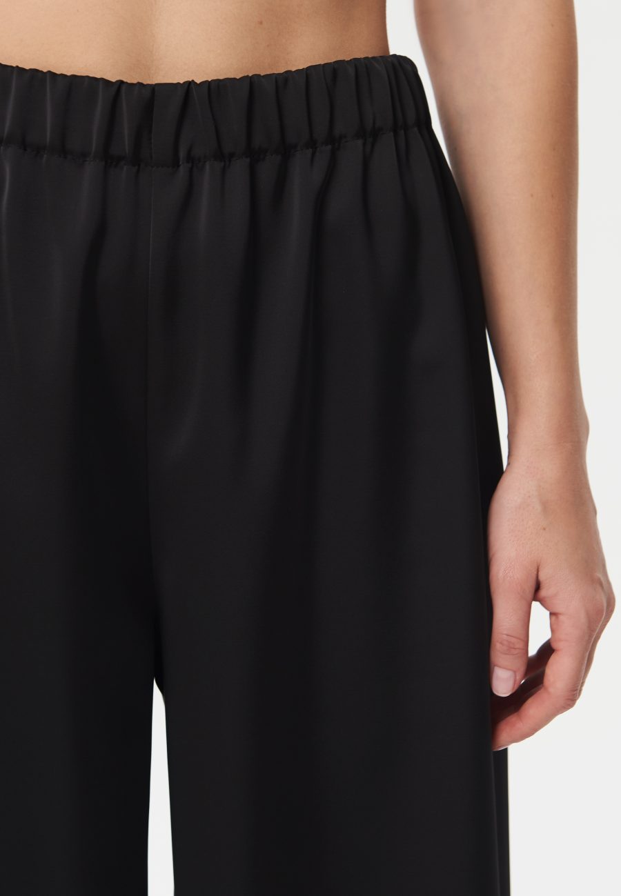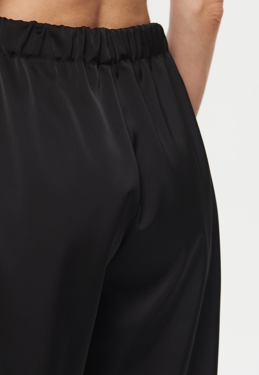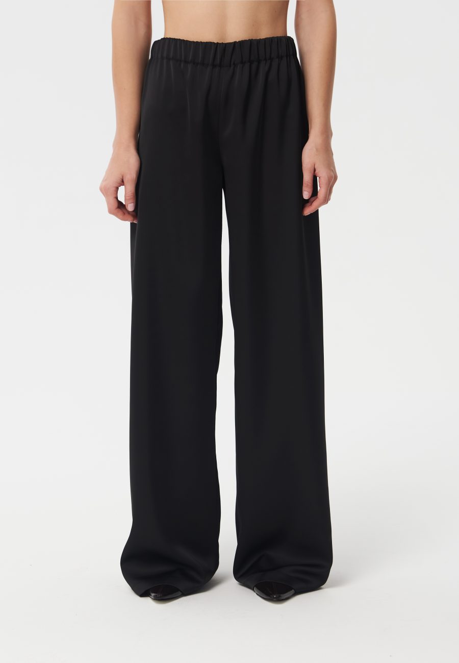 Брюки Pearl прямого кроя, умеренного объема, на эластичном поясе. Изюминкой изделия является материал, из которой сделан костюм – вискоза плательная с деликатным мерцанием, что придает классическому крою новое прочтение и праздничное настроение.