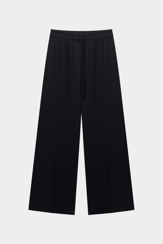 Мы соединили силуэт в стиле спортшик и материал в стиле office core, чтобы создать самые комфортные брюки для работы. Модель на кулиске с завязками отличается регулируемой посадкой. Образ можно дополнить кроп-жакетом или вязаным топом.