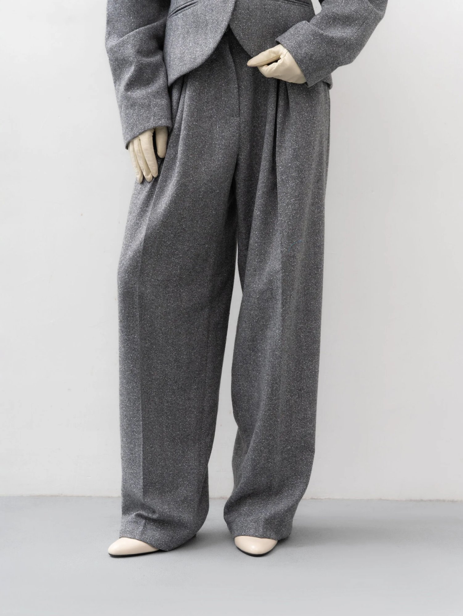 Серые брюки с защипами из мягкого микса шерсти, вискозы и полиэстера – элегантная база для холодного сезона. Благородный серый меланжевый оттенок и аккуратный крой делают их идеальным выбором для офиса в паре с пиджаком Madame Scientist, но они легко адаптируются и к более расслабленному стилю, если сочетать их с блузой или свитером.