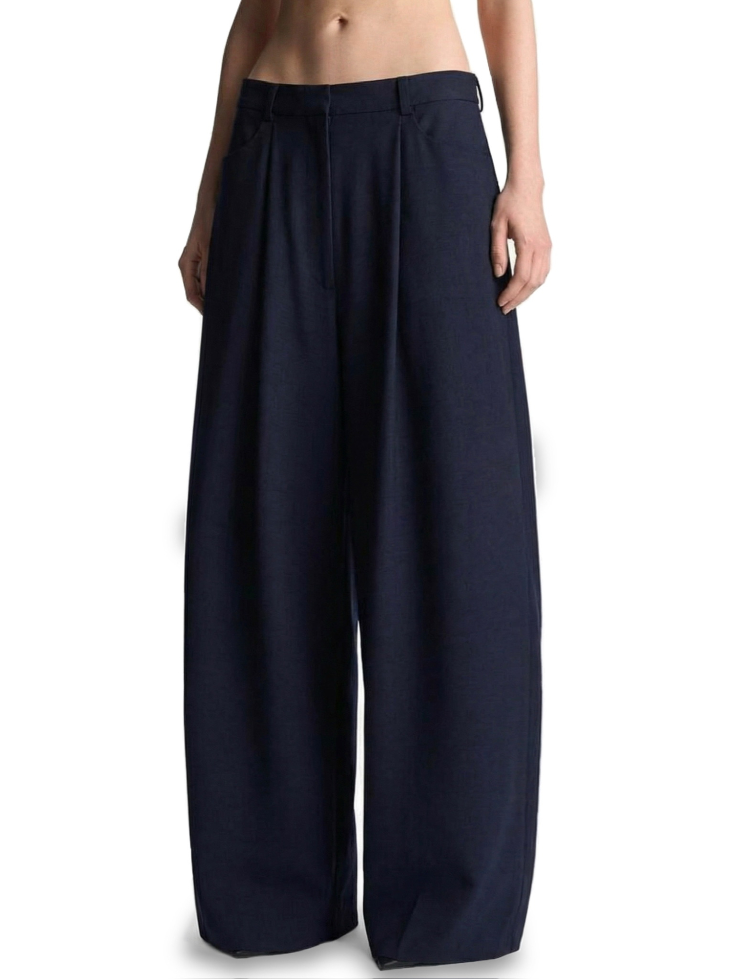 Mодель, конструкция которой сохраняет формальную эстетику классических брюк, при этом переводит их в зону современного кроя: ультраобъём в бедрах и экстра-длинный шаговый шов становятся уникальной особенностью в сегменте будничной и городской одежды.