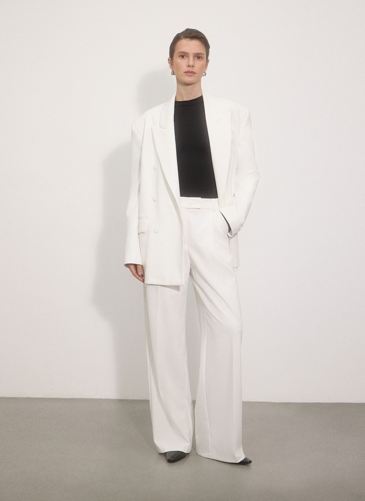 Модель выполнена из приятной на ощупь костюмной ткани, которая создаёт благородный вид.