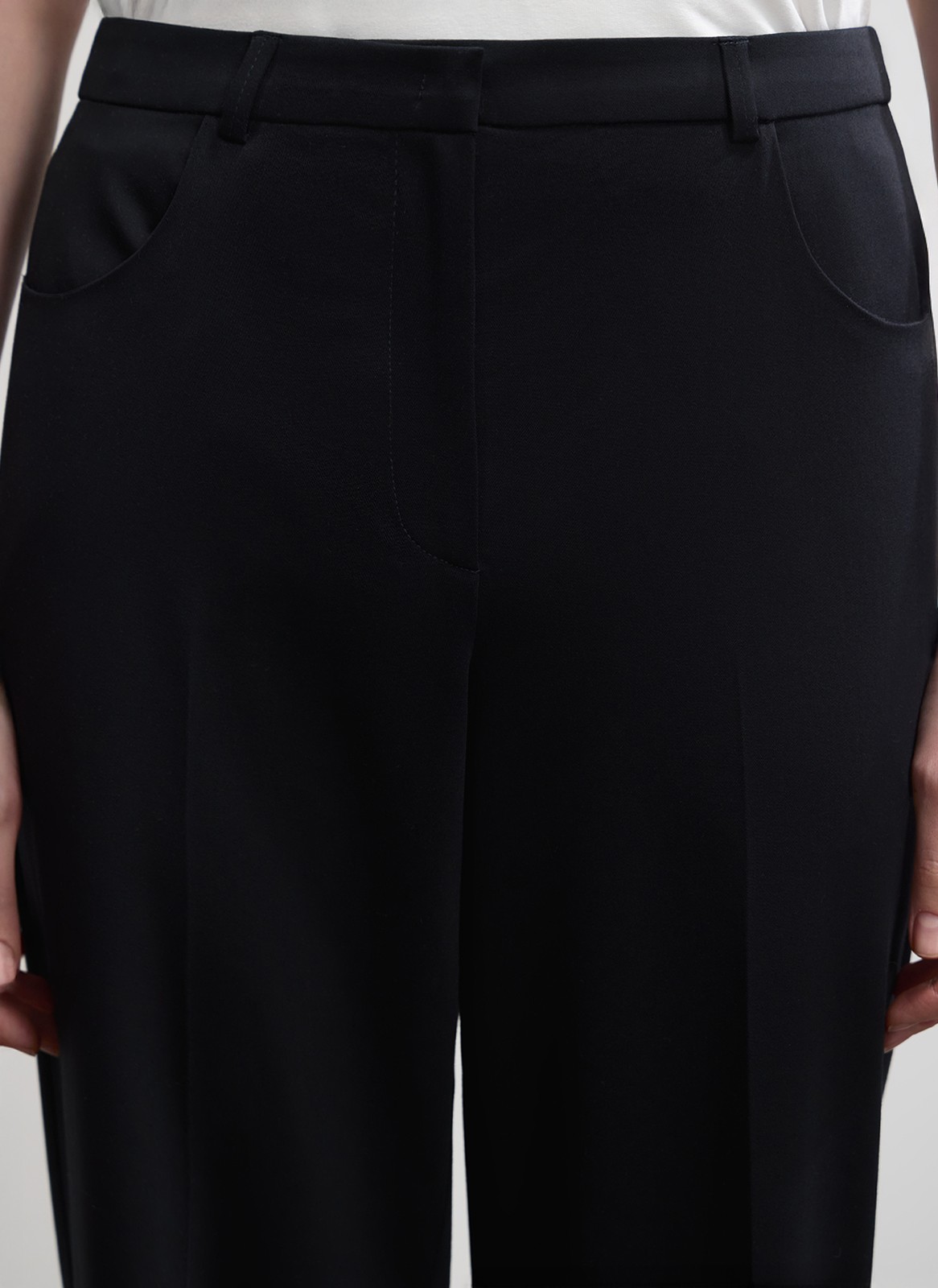 Изделие прямого кроя с чуть завышенной посадкой визуально стройнит фигуру и подчёркивает красоту ног, создавая идеальные пропорции.