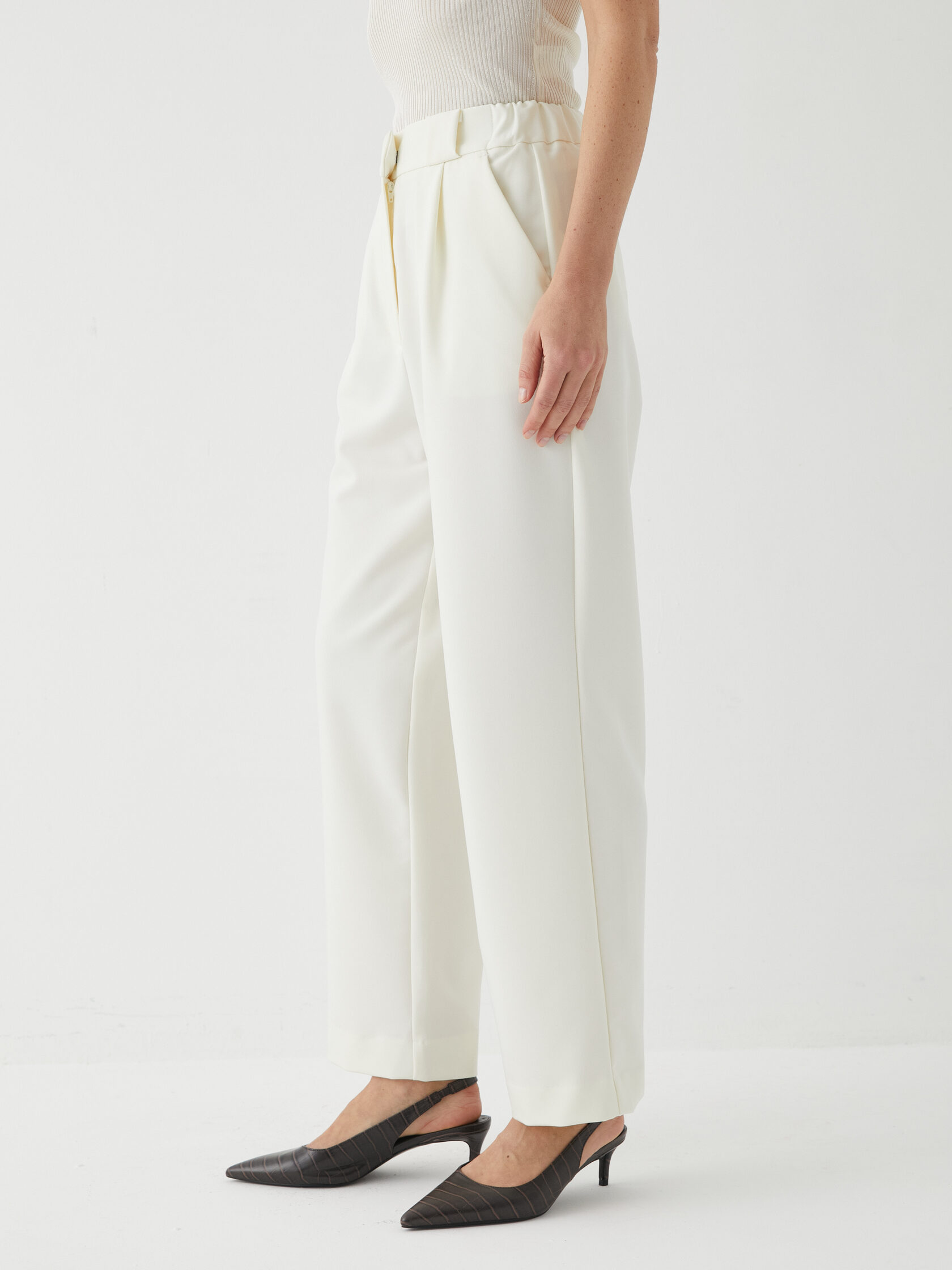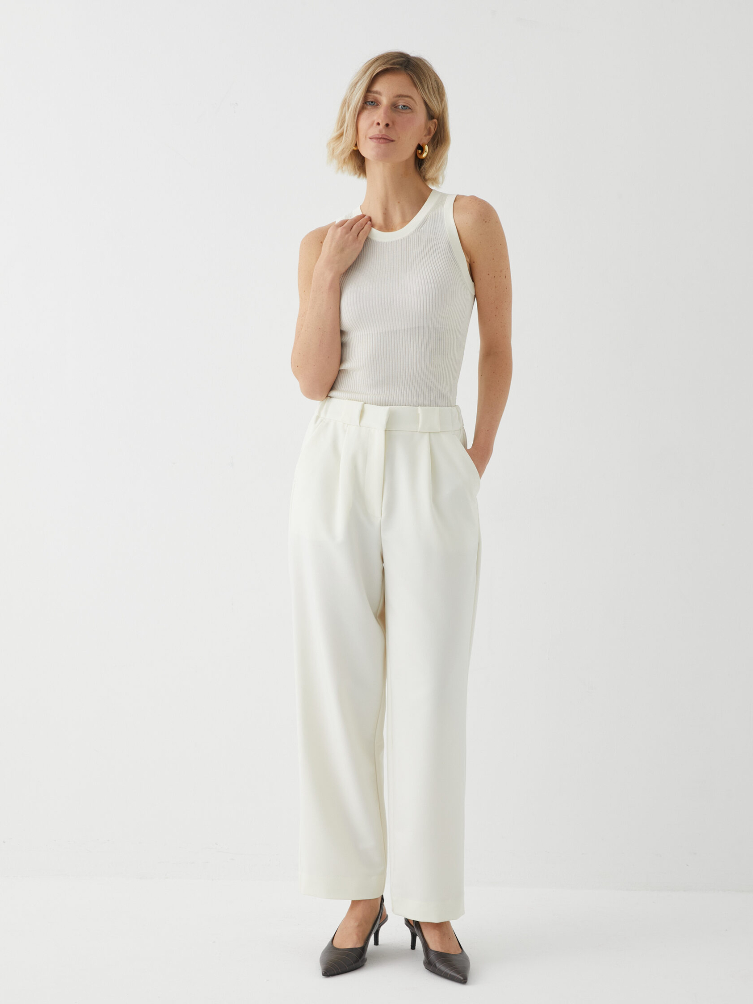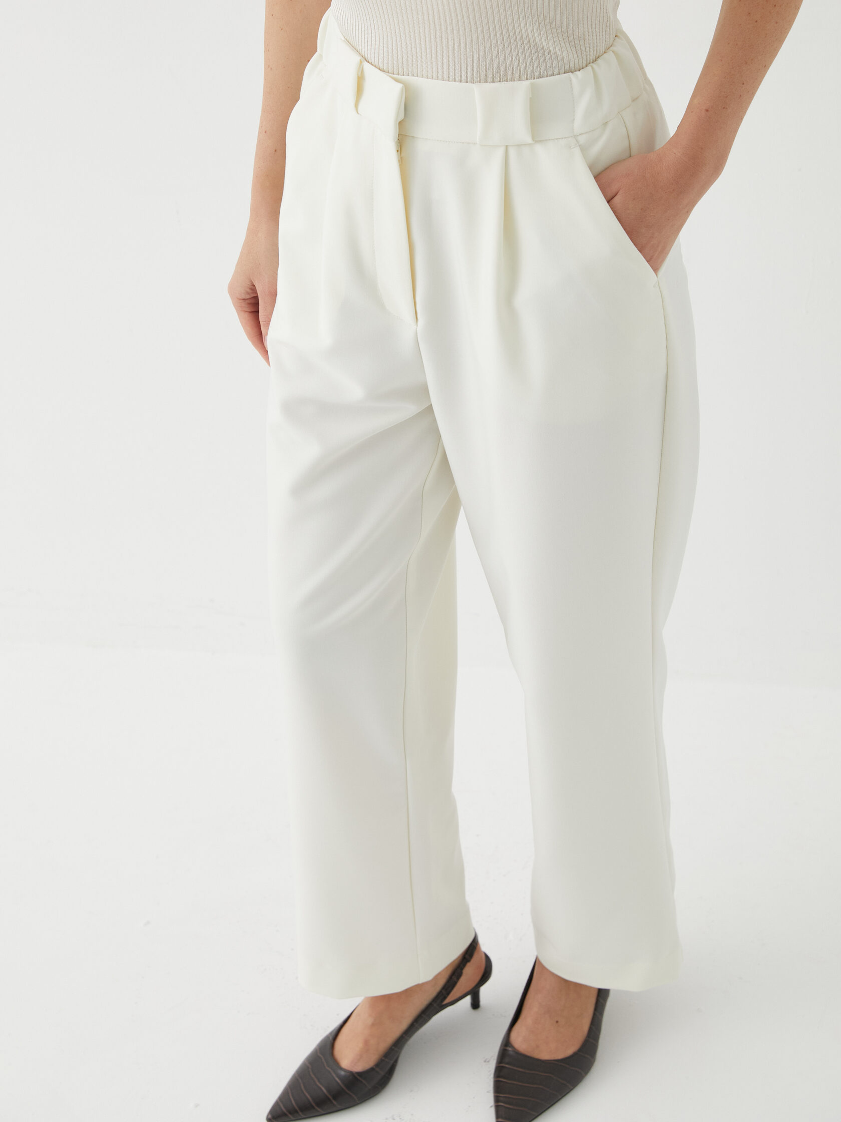 Стильный и удобный элемент гардероба, который подойдёт для создания деловых и повседневных образов. Они имеют прямой крой, который не сковывает движений и подходит для большинства типов фигур. Укороченная длина добавляет образу лёгкости и современности.