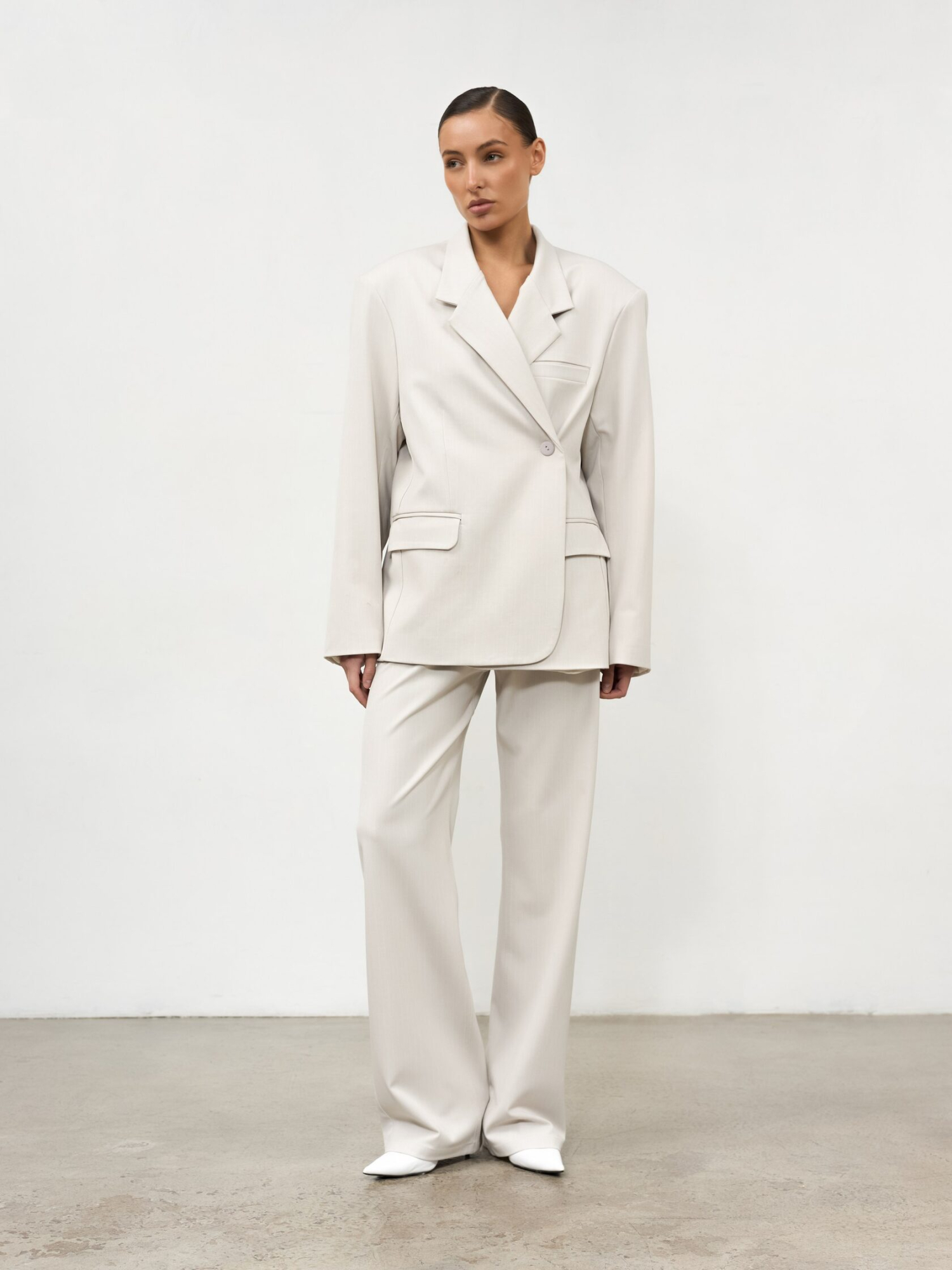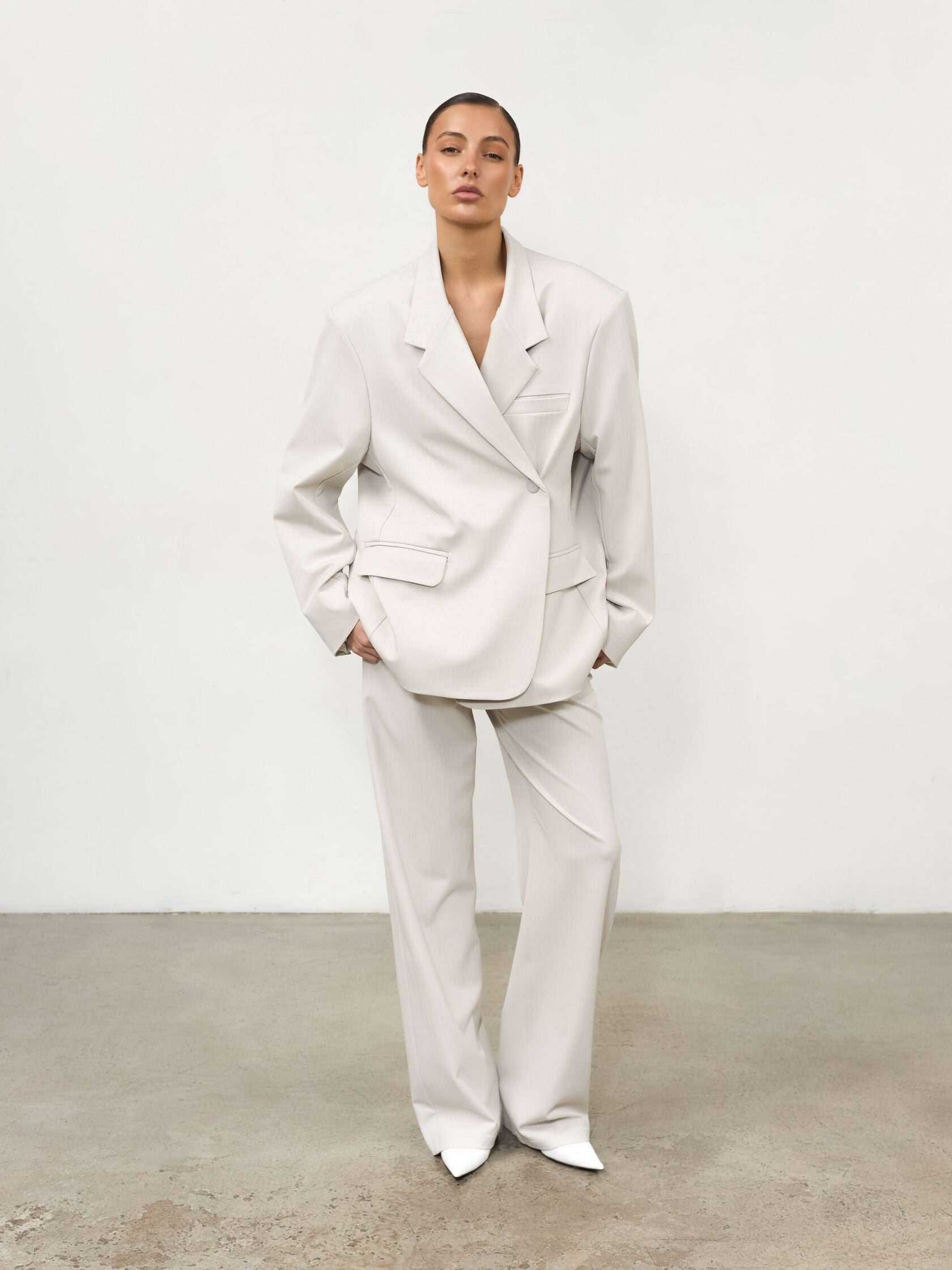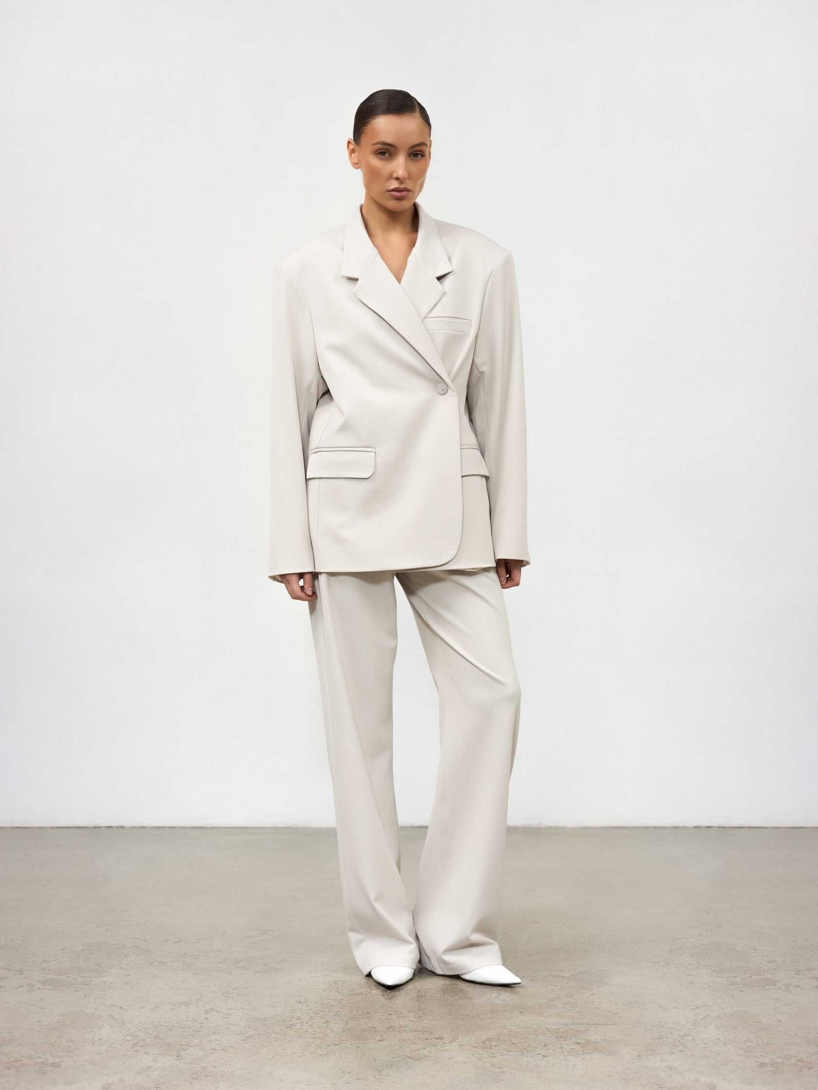 Классические брюки прямого кроя выгодно подчёркивают фигуру и выполнены в приятных спокойных тонах.