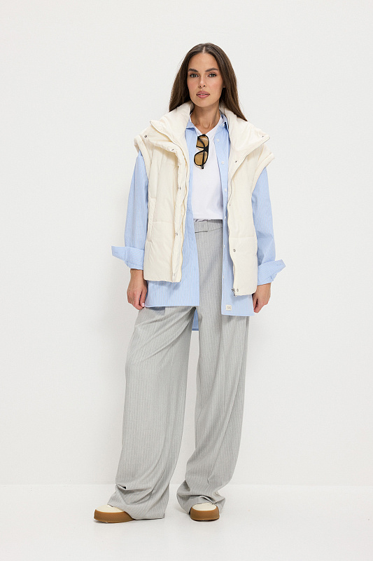 Брюки с защипами — элегантный и универсальный предмет гардероба, придающий образу особый шарм и индивидуальность. Зауженные линии и вертикальные складки-защипы создают иллюзию вытянутых ног и идеальной пропорции тела. Брюки изготовлены из высококачественных материалов, обеспечивающих комфорт и свободу движения, подчеркивая вашу уверенность и стиль. Это отличная инвестиция в гардероб, позволяющая создавать разнообразные образы.