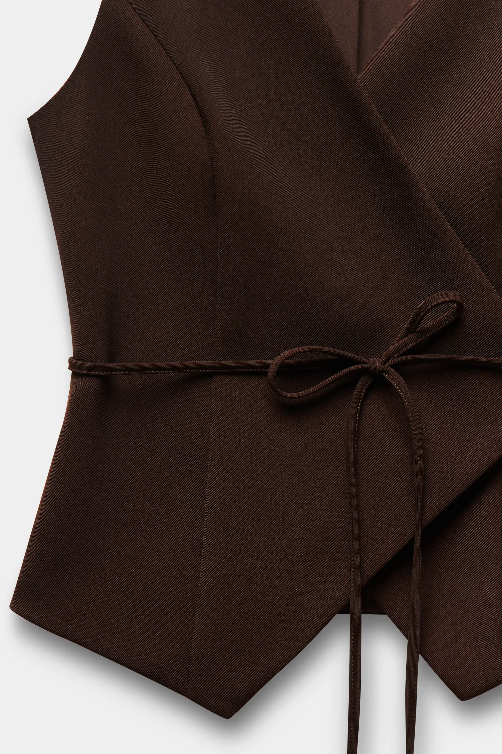 Жилет на запах из стильной костюмной ткани — идеальный акцент вашего образа! Подходит для работы, вечеринки или повседневной жизни.