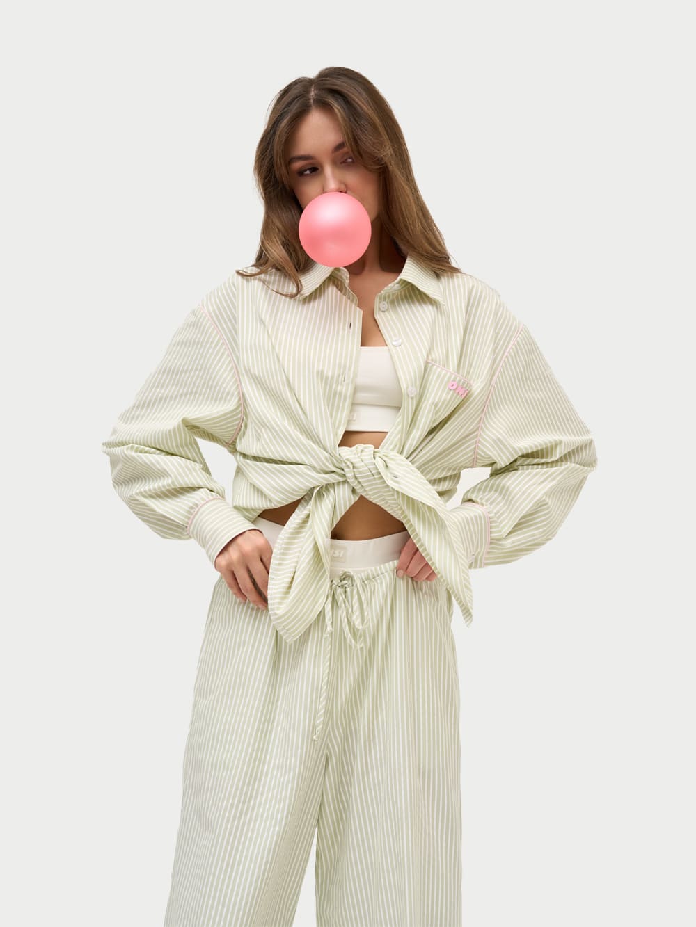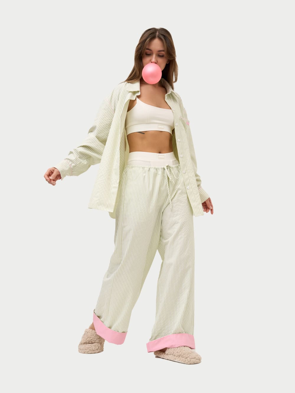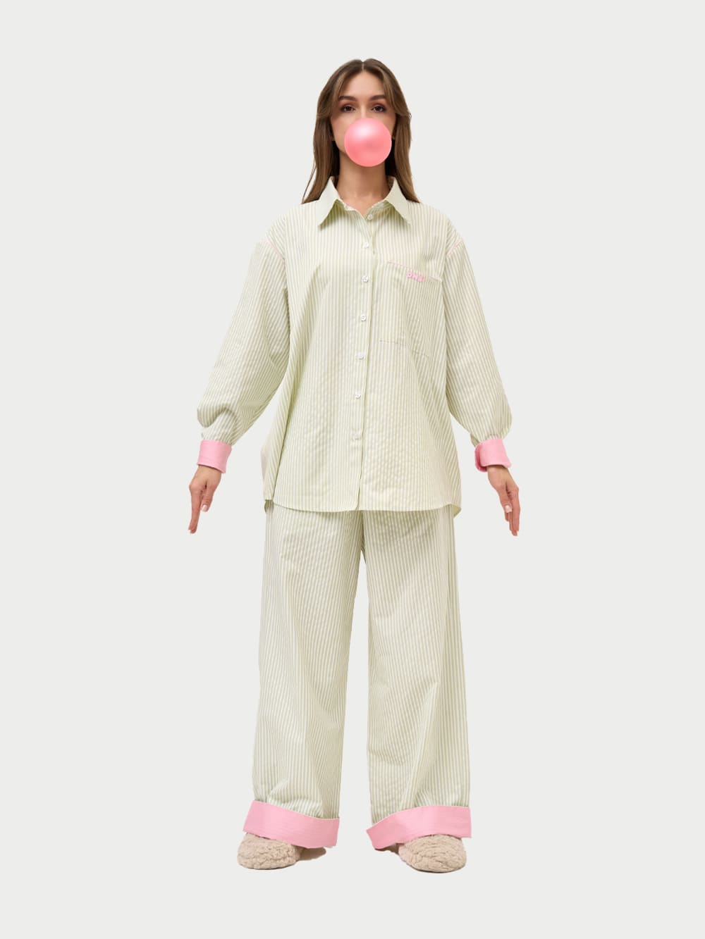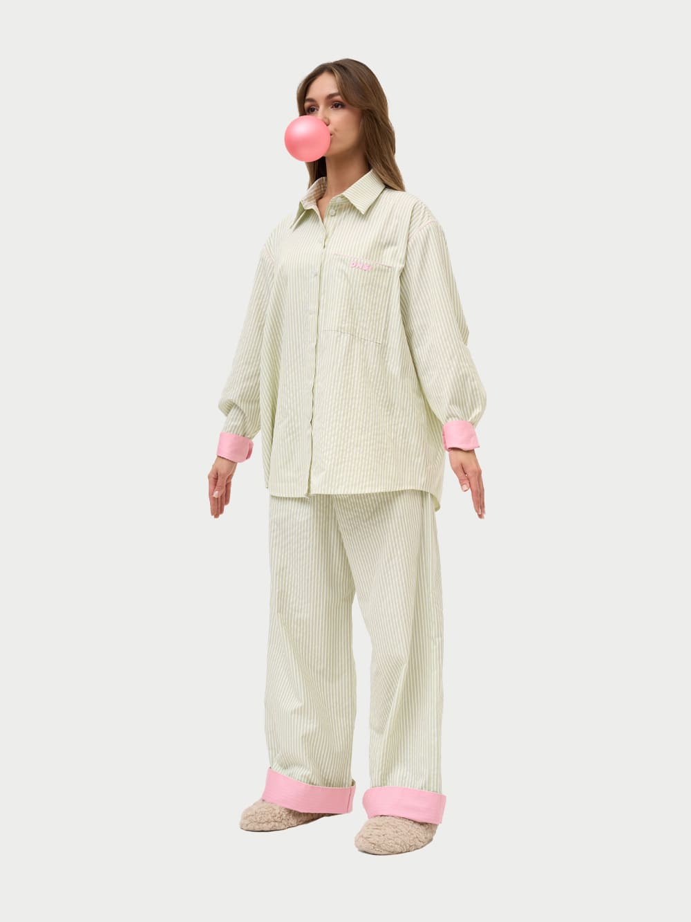 Создана для сладких снов и ленивых утр! Пижама с мягкими линиями и контрастной отделкой сочетает уют и изящество, а универсальный размер делает её идеальной для всех.