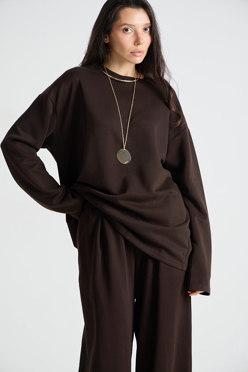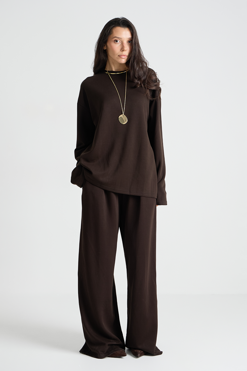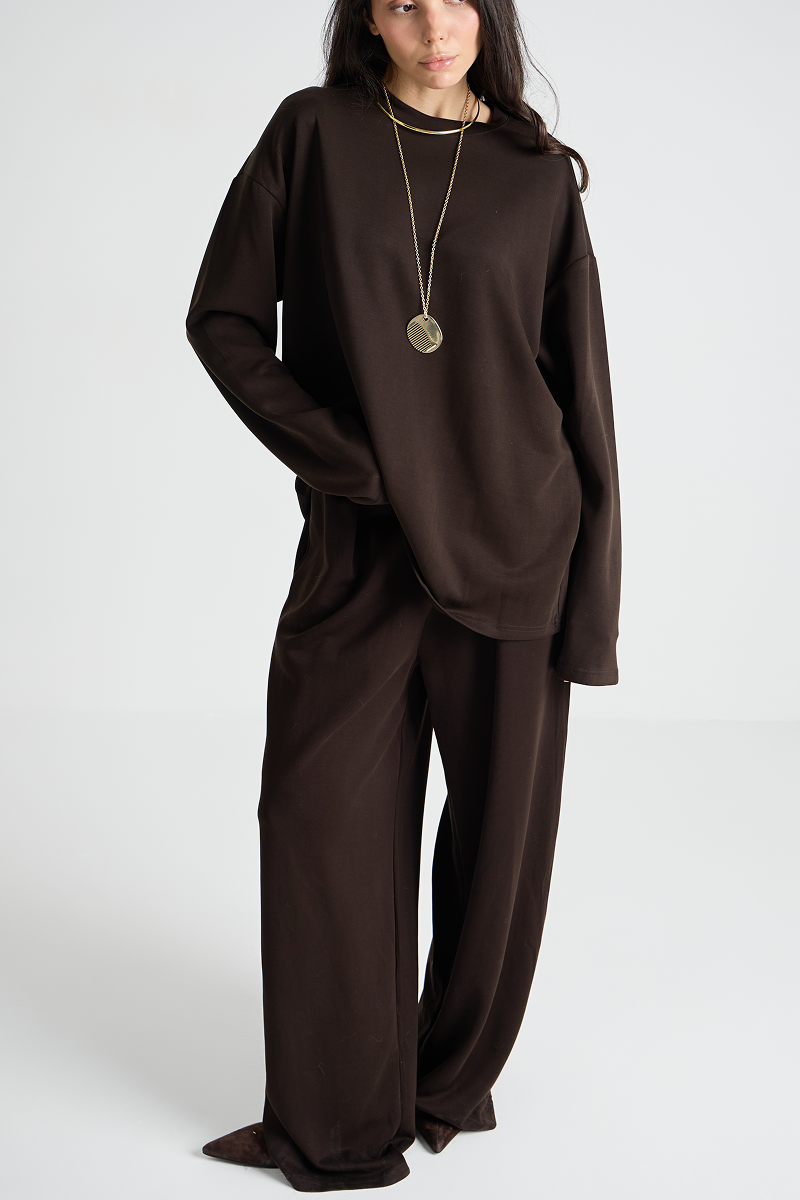 Уютный комплект одежды: лонгслив и брюки. Идеальный выбор для повседневного образа. Комфортный материал обеспечивает свободу движений и приятные ощущения при носке. Подчеркните свой стиль с этим универсальным костюмом!