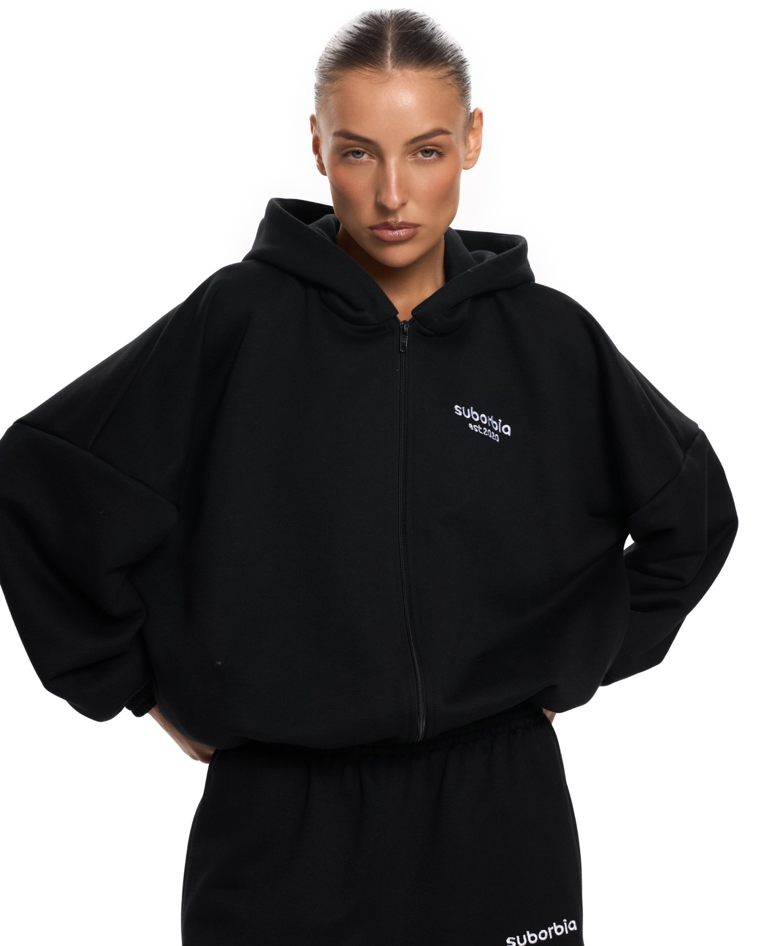 Базовый утепленный костюм оверсайз кроя с джоггерами и худи-zip из футера.