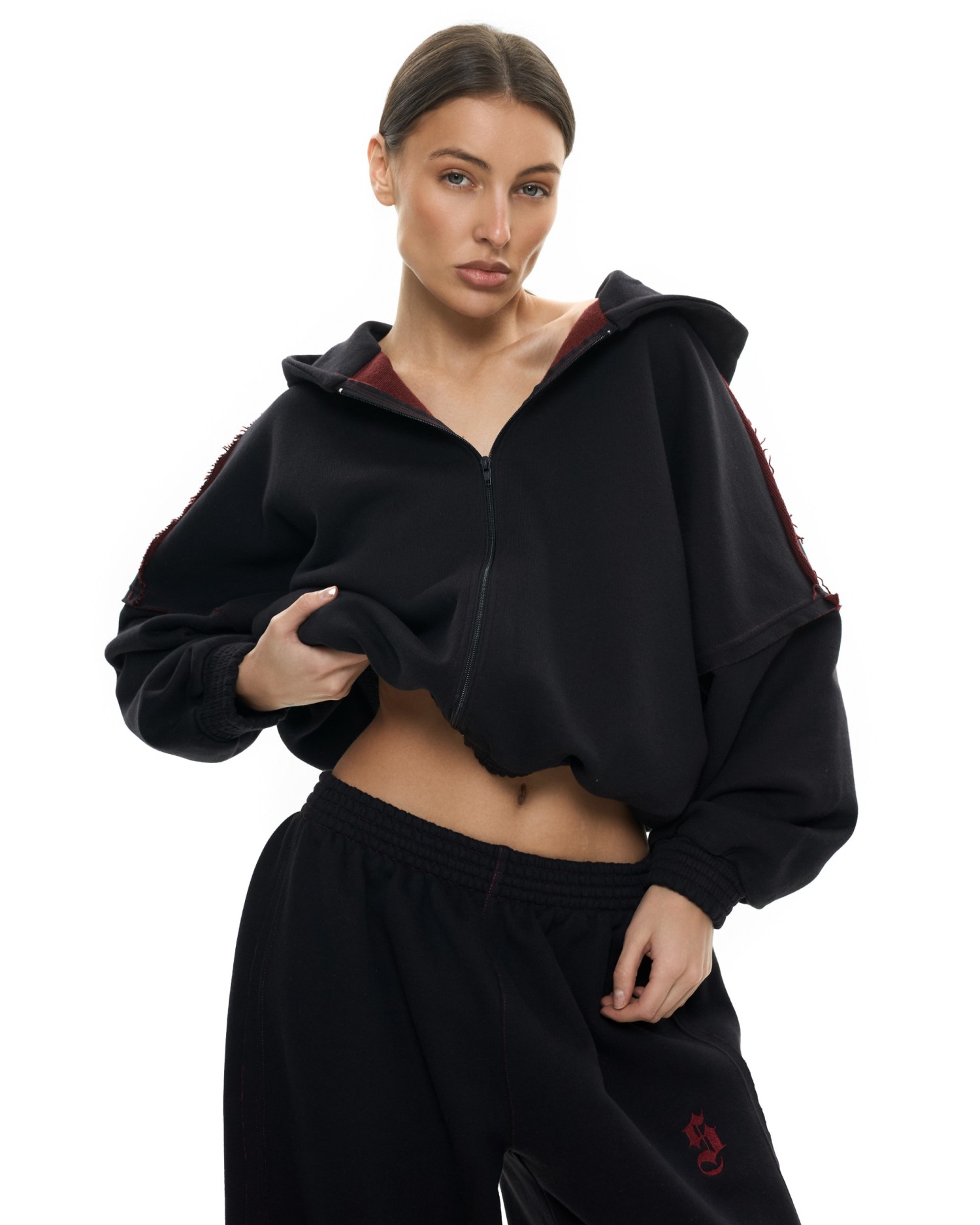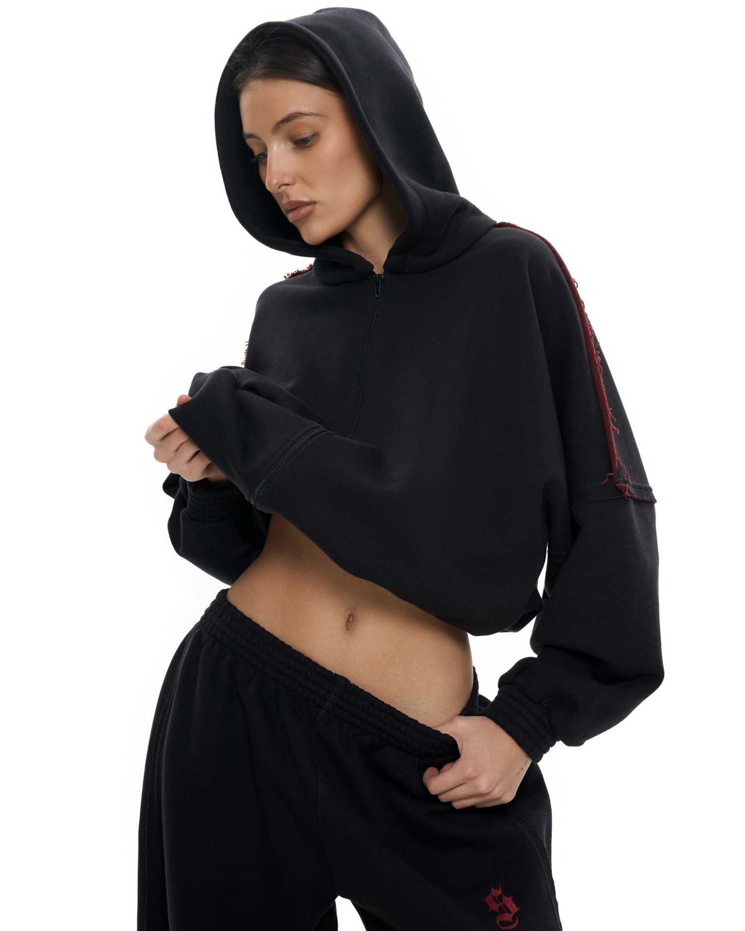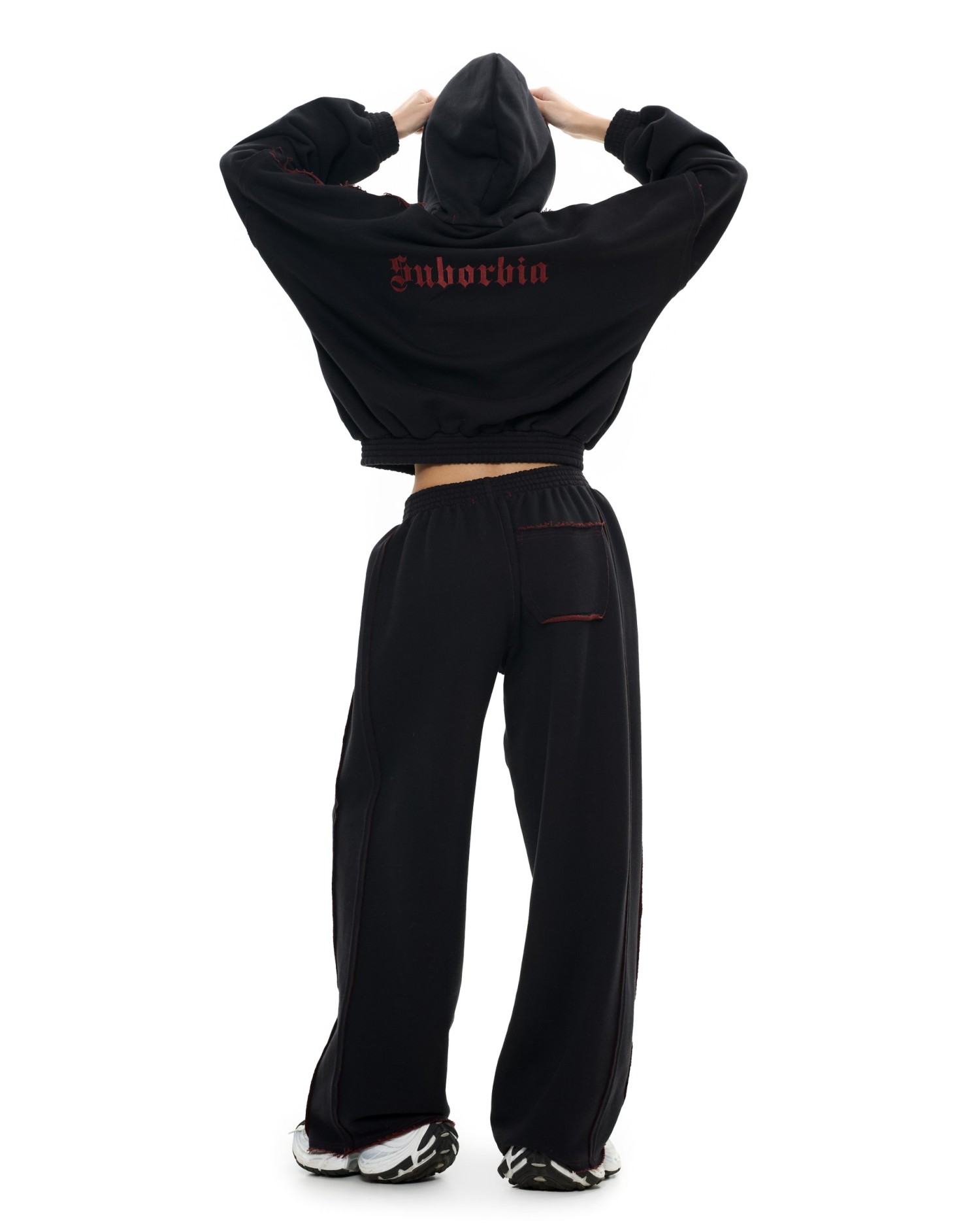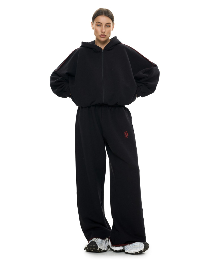 Костюм с худи на молнии и брюками палаццо свободного кроя в стиле сочетание крупных контрастных цветовых блоков.