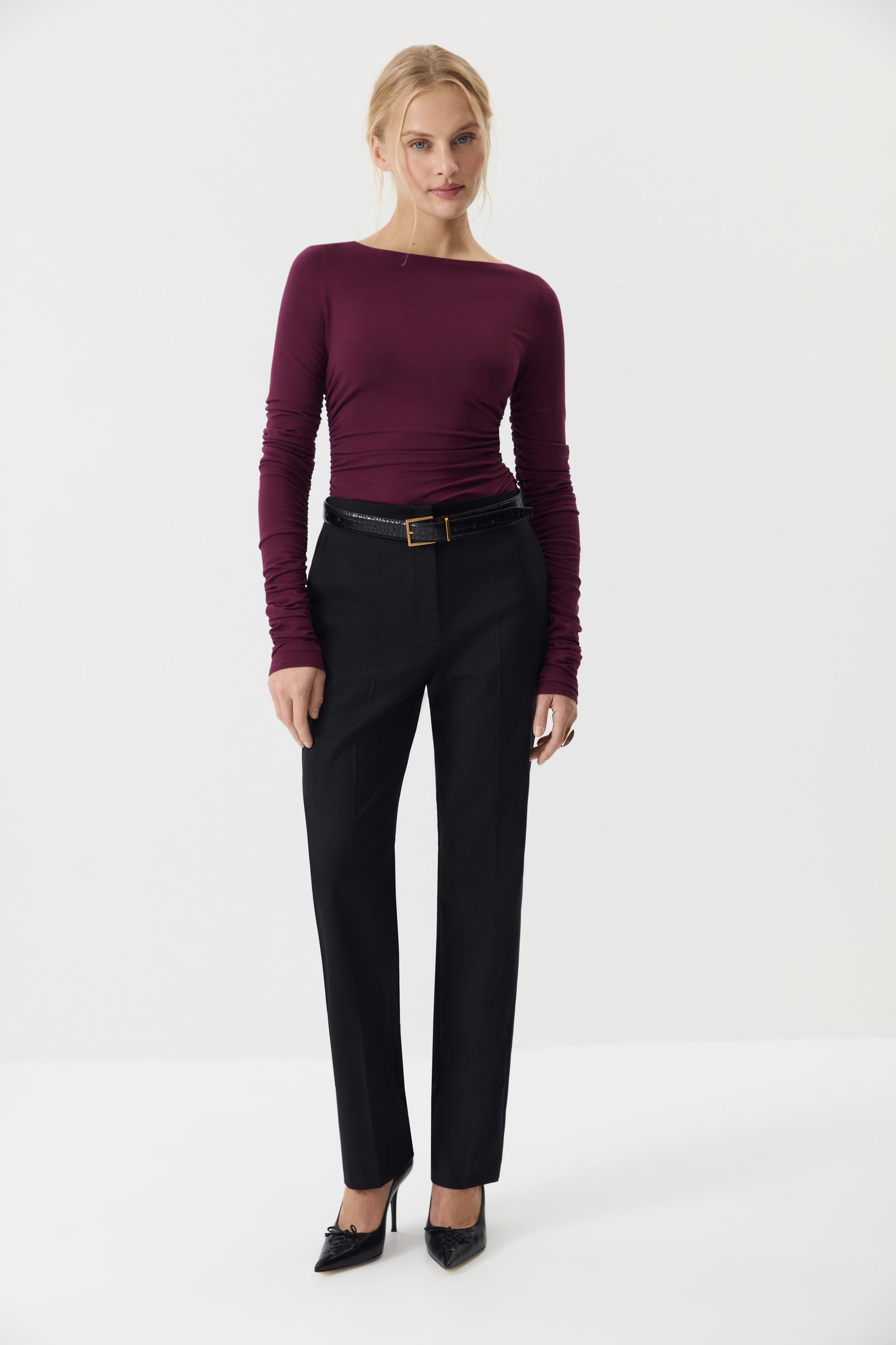 Носите боди с брюками-палаццо для вечерних выходов, для более акцентного образа добавьте пиджак с чёткой плечевой линий. Впишите боди в базовый гардероб выбрав в комплект брюки нейтральных оттенков.