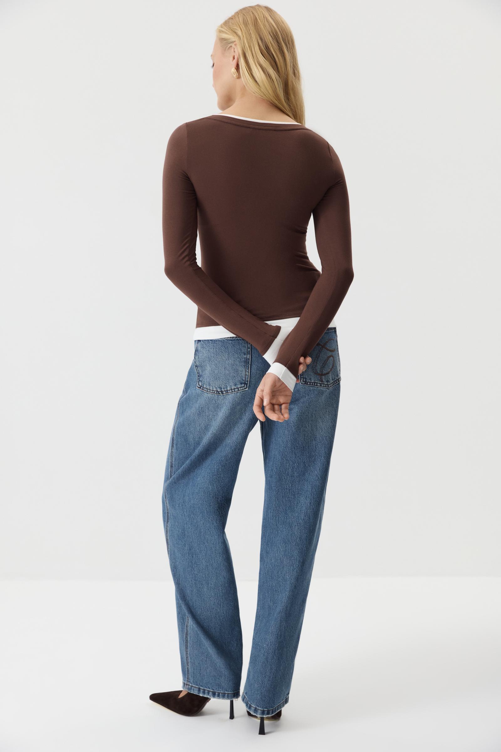 Носите как отдельный предмет гардероба с брюками в офис и джинсами в повседневных выходах. Выбирайте лонгслив первым слоем под жакеты и кардиган.
