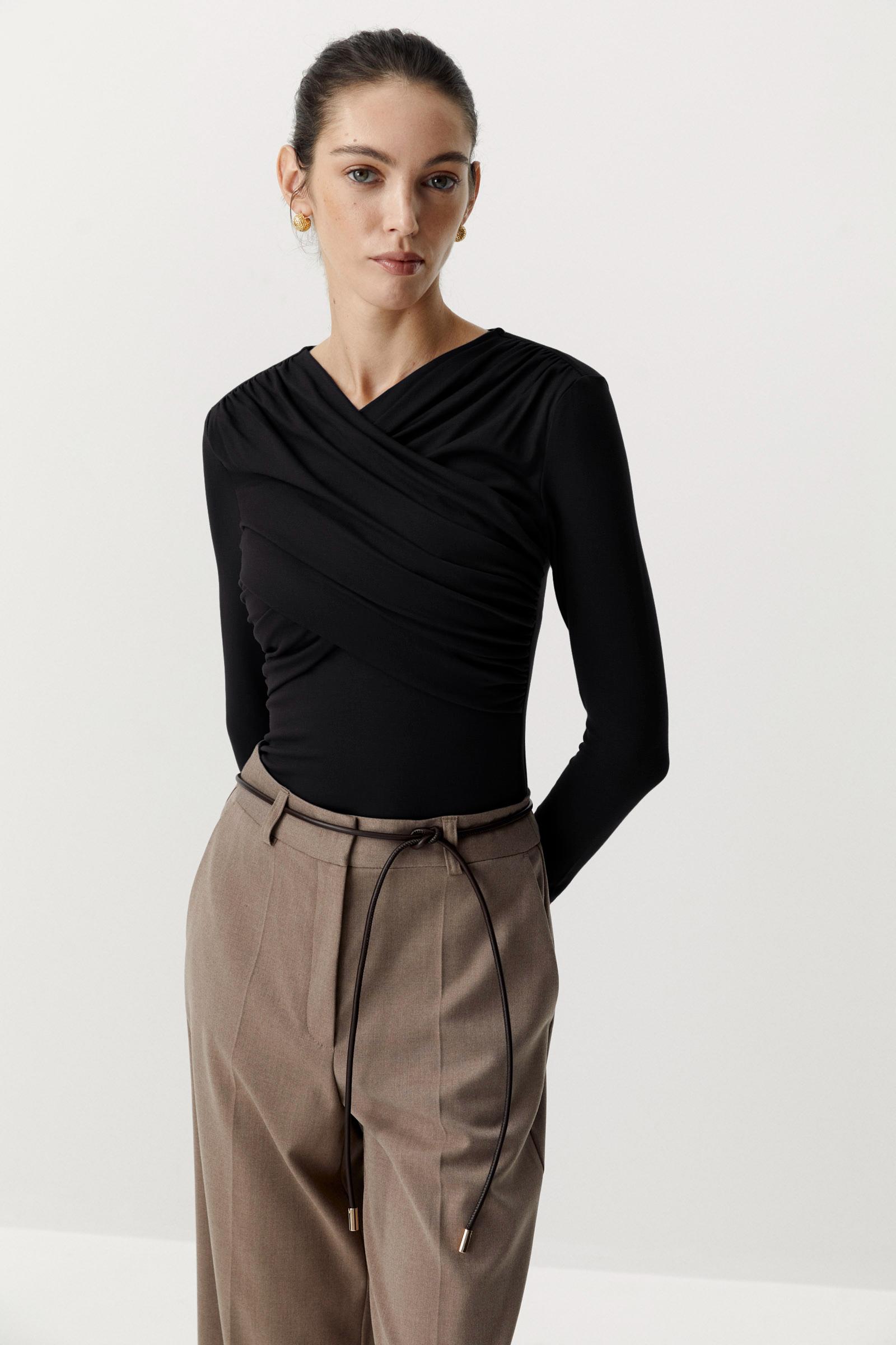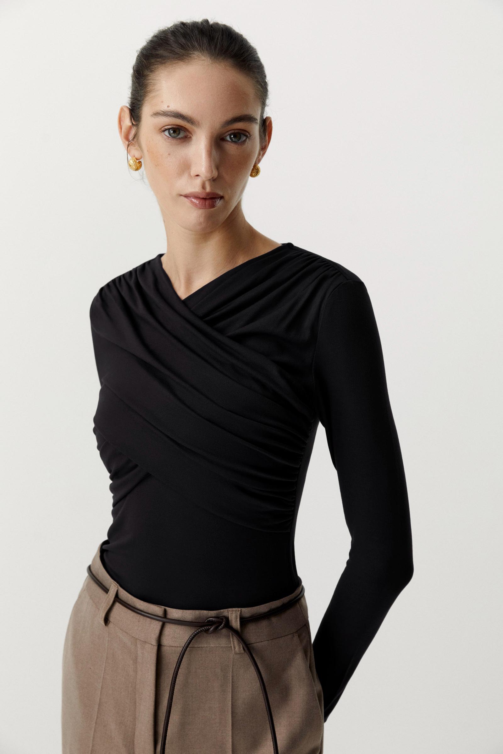 Лонгслив с драпированной деталью на груди