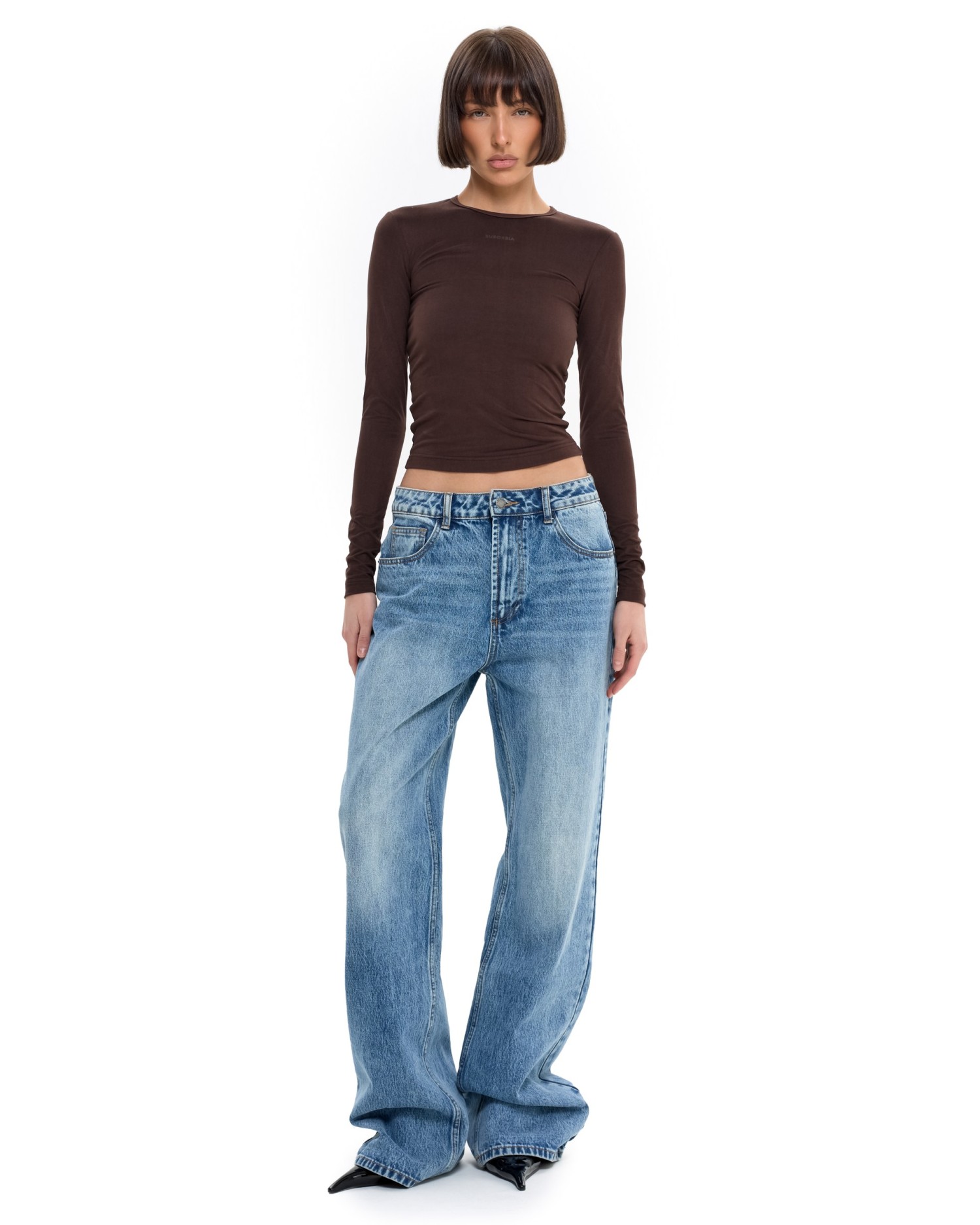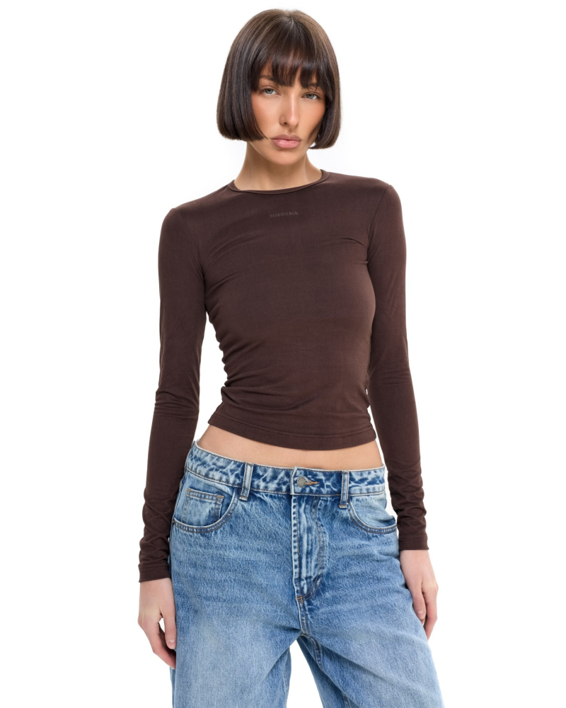 Базовый лонгслив из вискозы с длинным рукавом. Приталенный силуэт идеально садиться по фигуре, подчеркивая линию талии и груди.