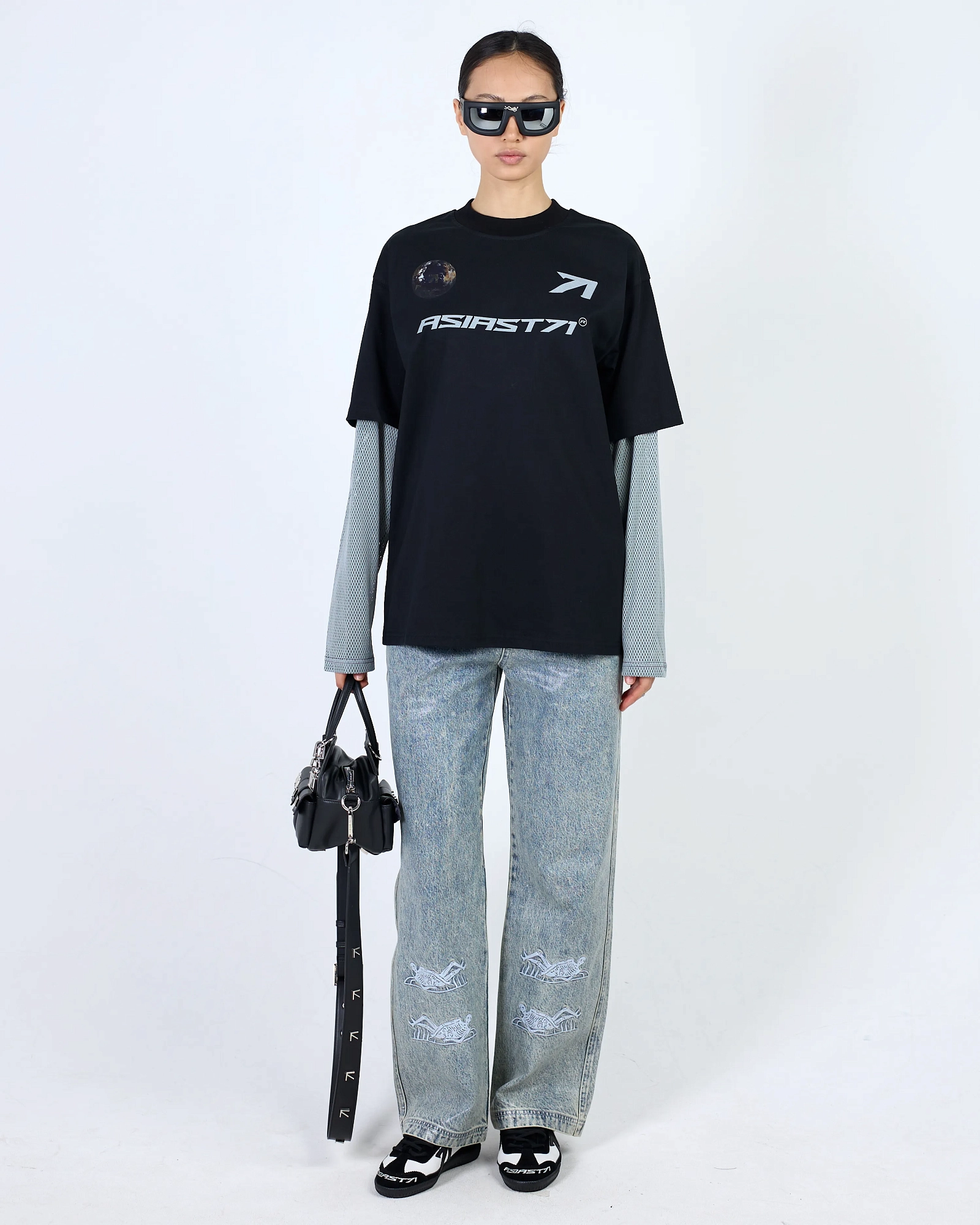 Лонгслив JERSEY MESH SLEEVES BLACK