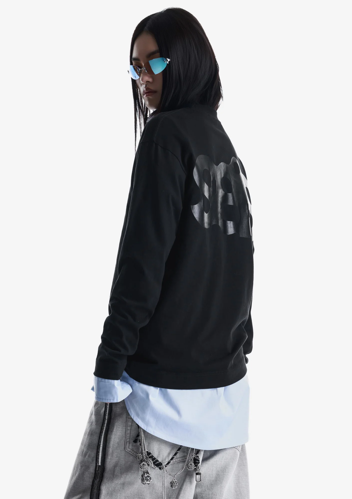 Лонгслив с тональным лого из мягкого хлопкового джерси с начёсом и ровной поверхностью, обеспечивающей комфорт в носке. Рибовая горловина поддерживает стабильную посадку, а тональная печать создаёт визуальный акцент.