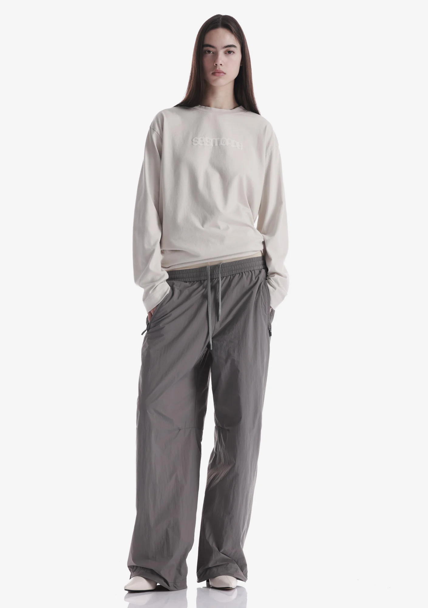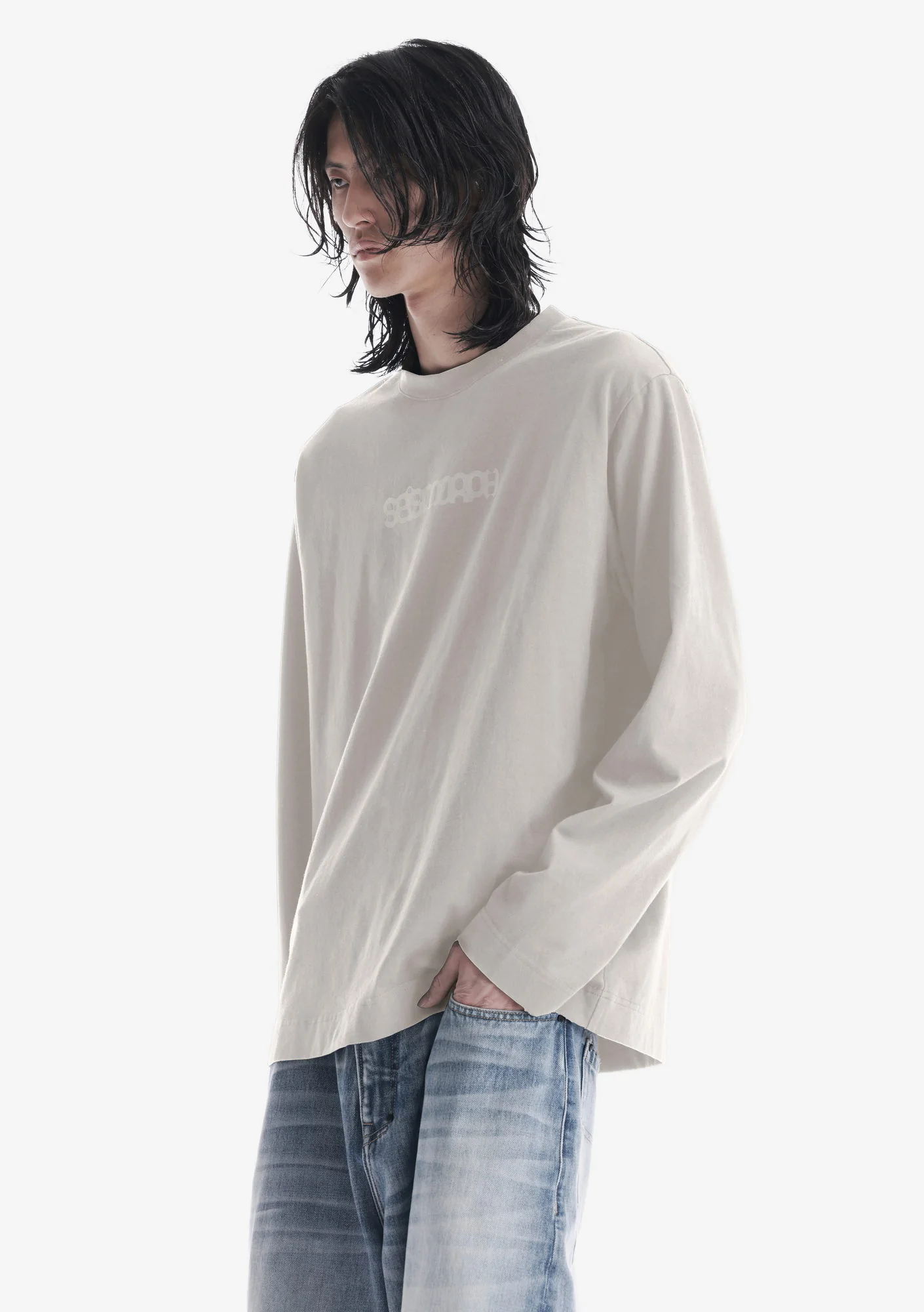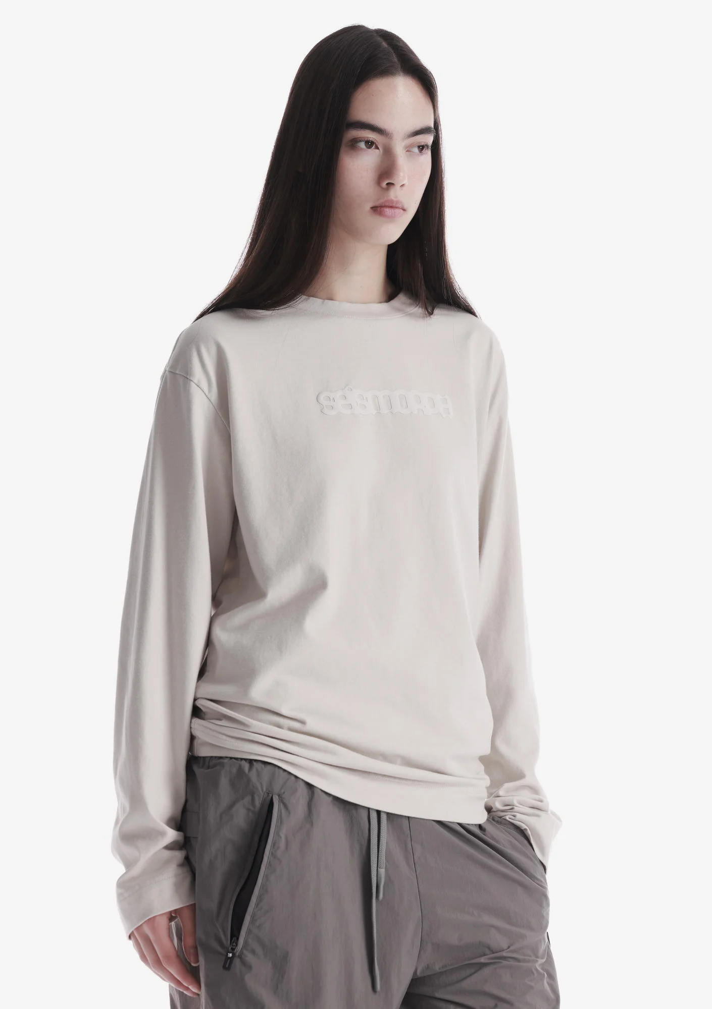 Лонгслив с тональным лого из мягкого хлопкового джерси с начёсом и ровной поверхностью, обеспечивающей комфорт в носке. Рибовая горловина поддерживает стабильную посадку, а тональная печать создаёт визуальный акцент.