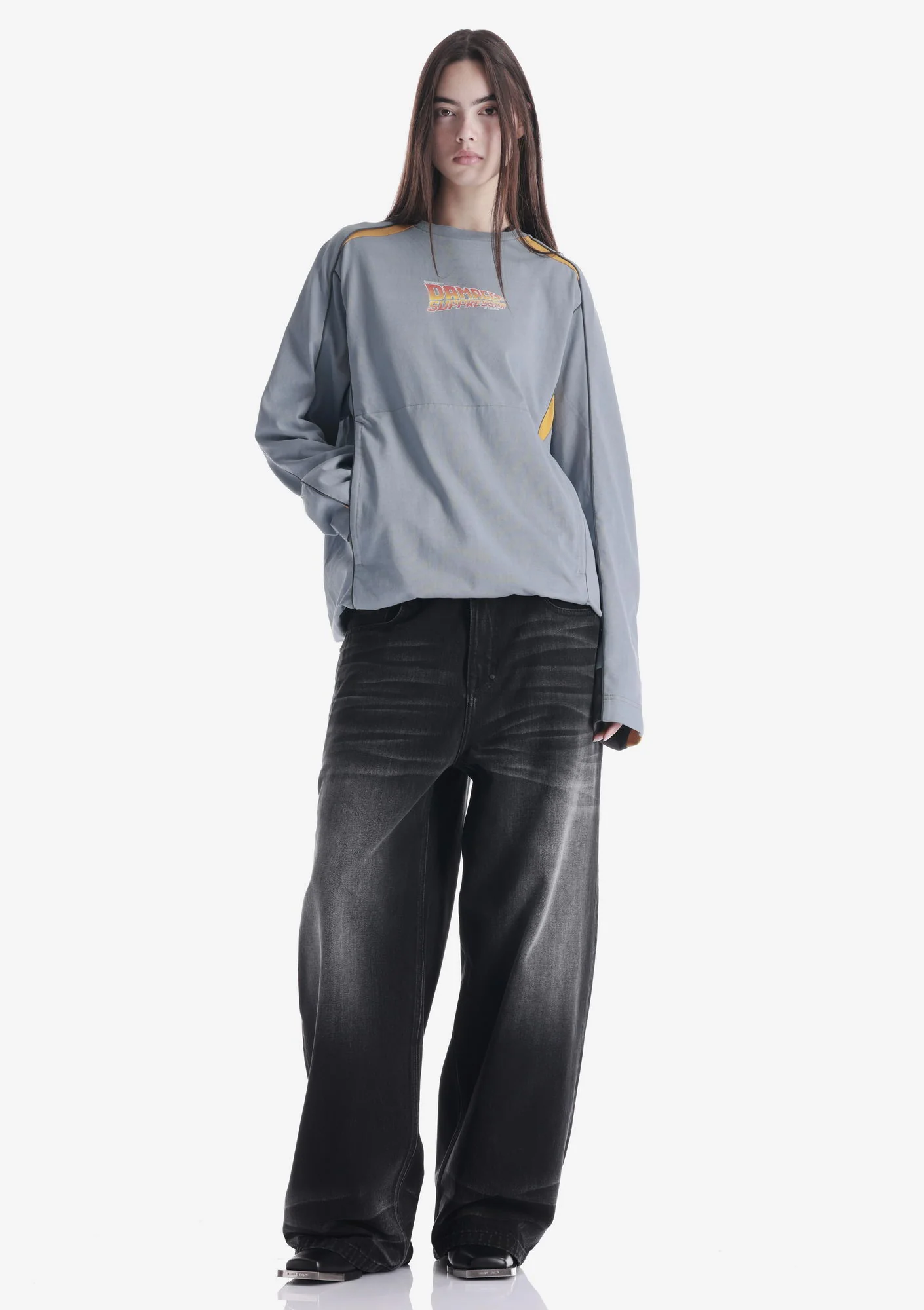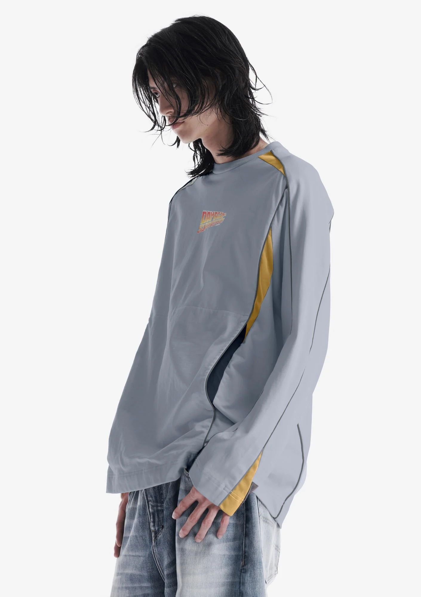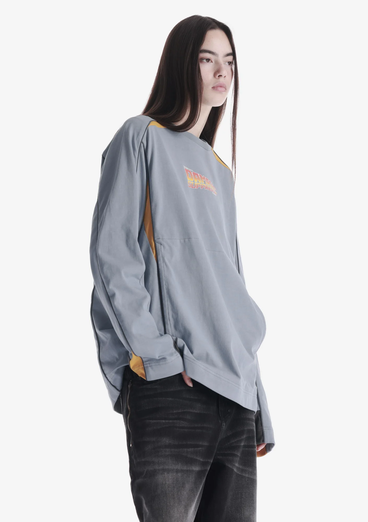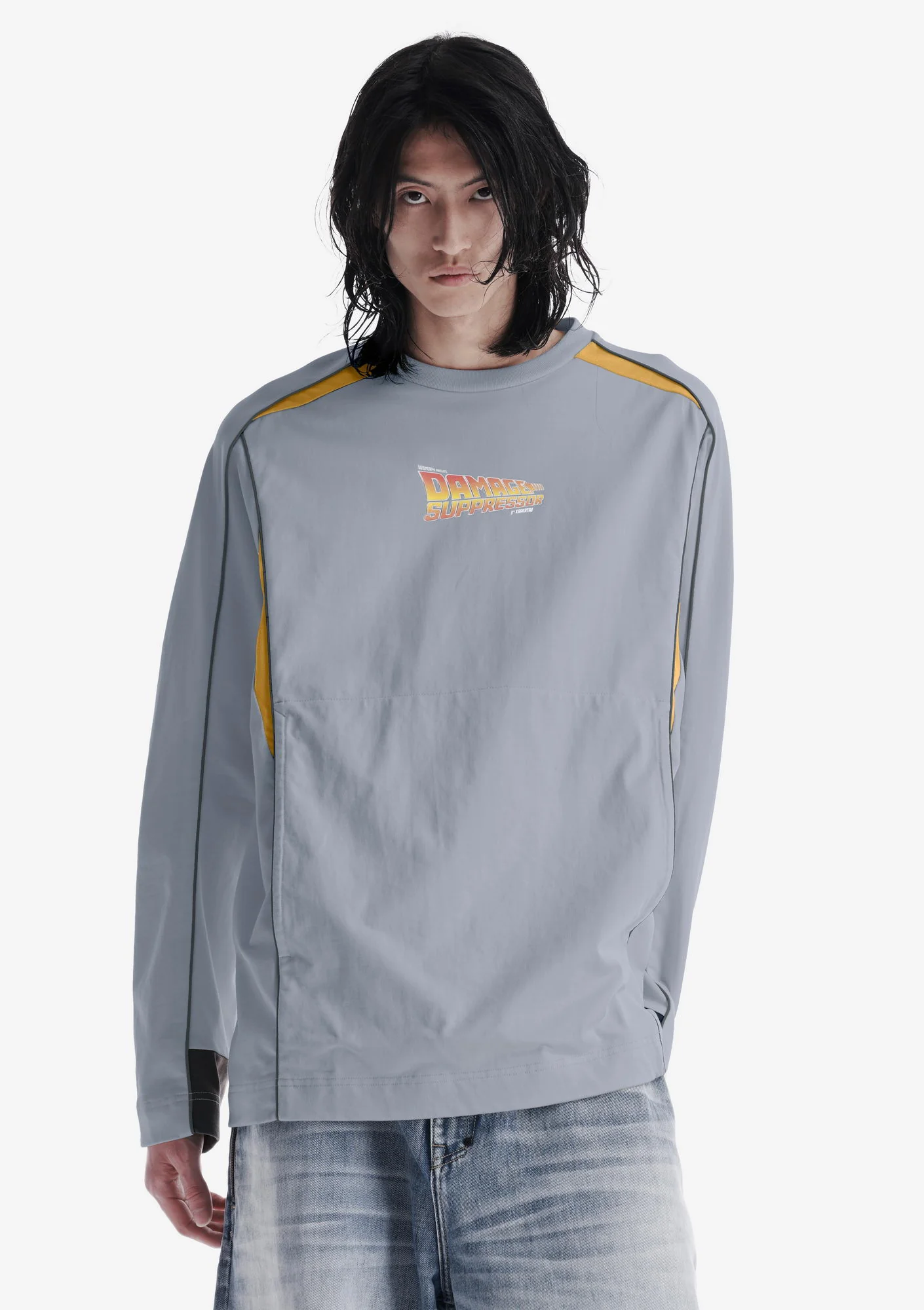 Лонгслив выполнен из плотного хлопкового джерси с ровной структурой, который хорошо держит форму и обеспечивает комфорт. Рибовая горловина поддерживает стабильную посадку, контрастный кант и графика формируют выразительный акцент, а карманы для рук и регулируемый низ добавляют функциональность.