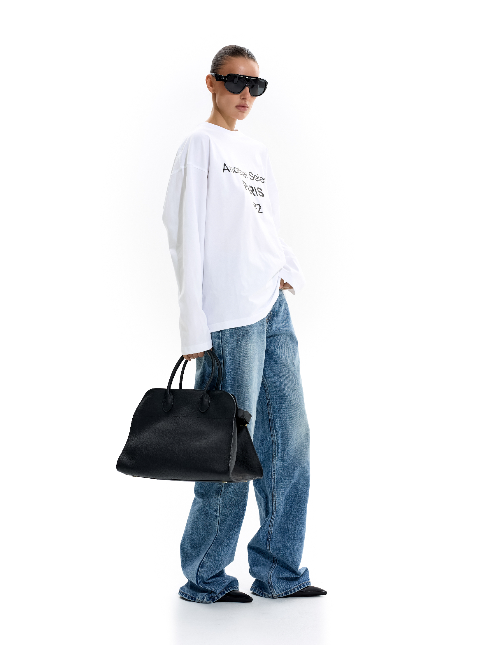 Классический лонгслив из натурального хлопка. Благодаря спущенной линии плеча и свободному крою, модель обеспечивает комфортную посадку и расслабленный силуэт.