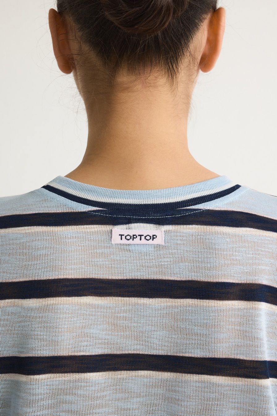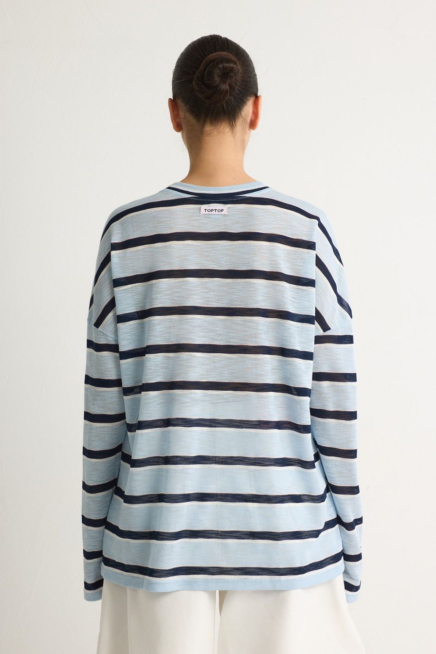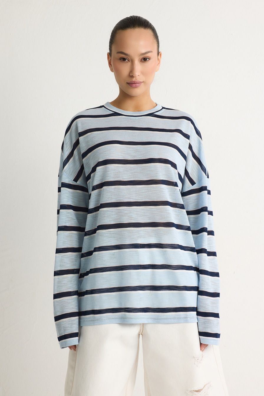 Лонгслив из смесовой вискозы – модель свободного кроя со спущенной линией плеч. Лонгслив декорирован принтом «полоска».
