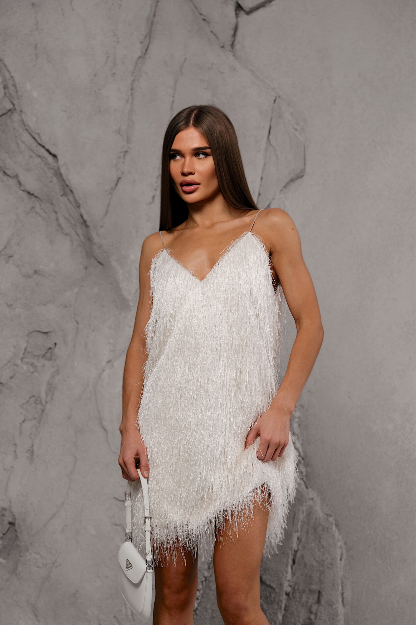 Платье длины мини с объемной текстурой - идеальный вариант для эффектного вечернего выхода.