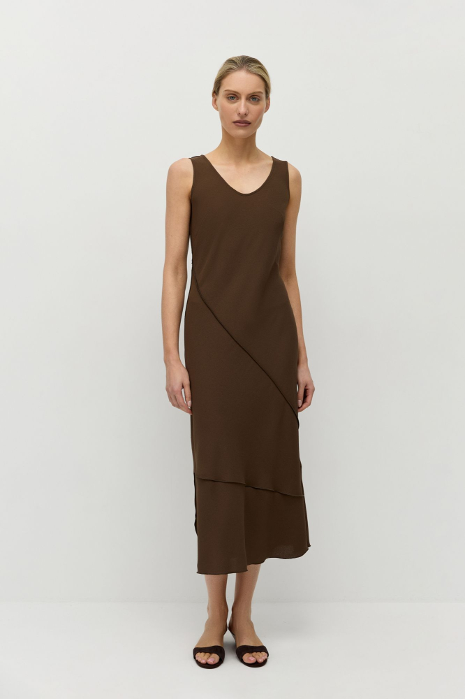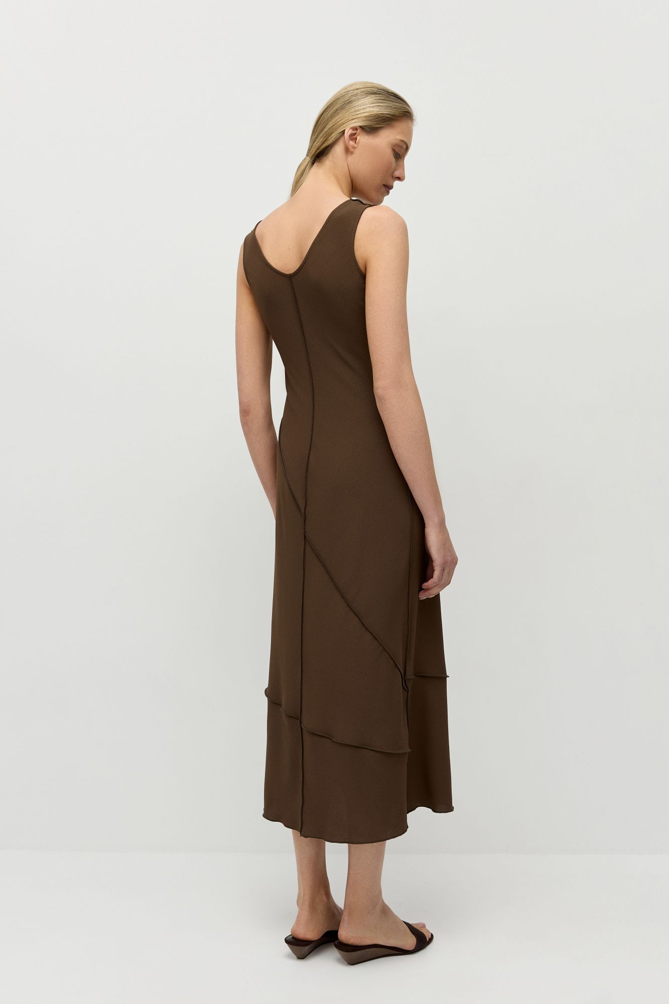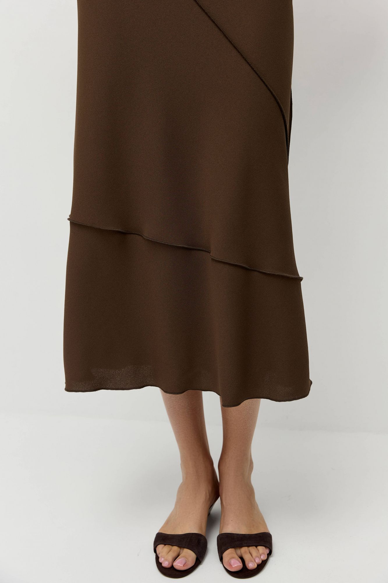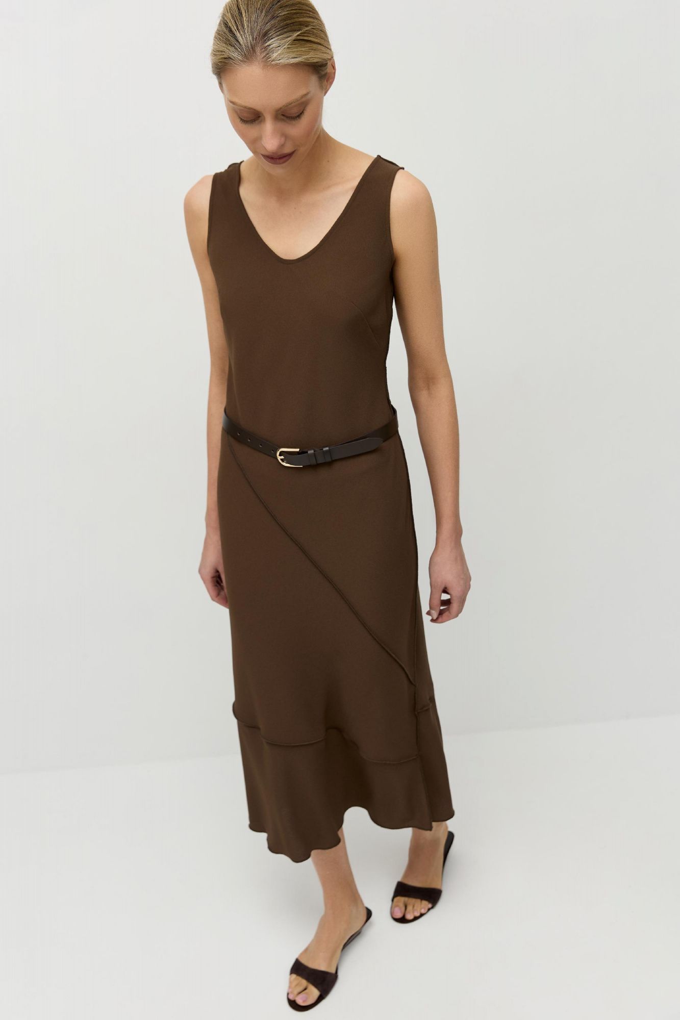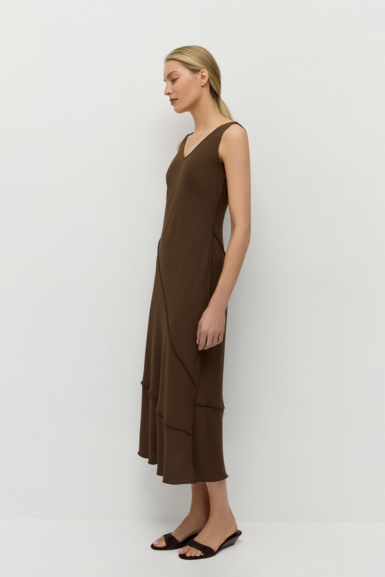 Платье-комбинация длины миди сшито из итальянского плательного крепа — из остатков силуэтных юбок.