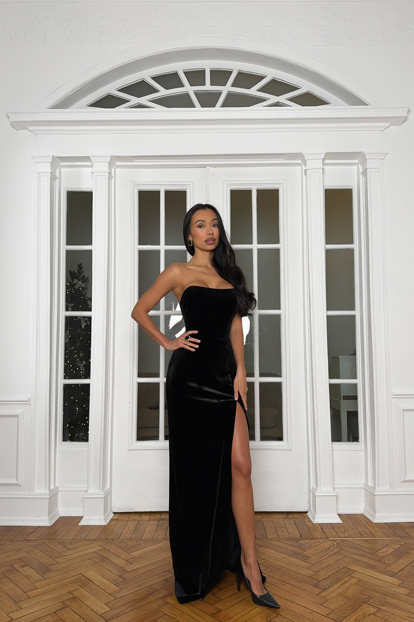 Платье длины макси с вырезом по бедру - идеальный вариант для светского выхода.